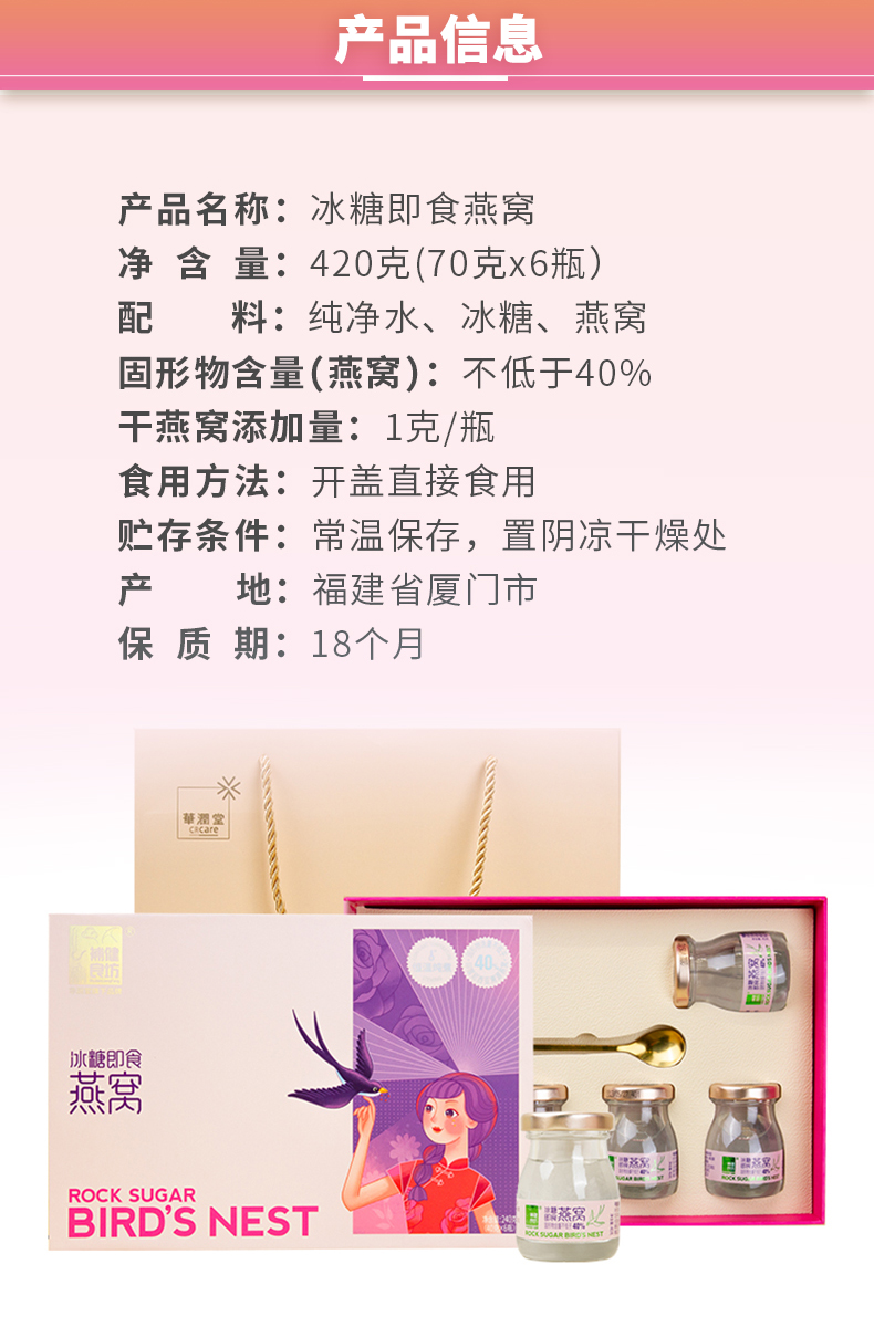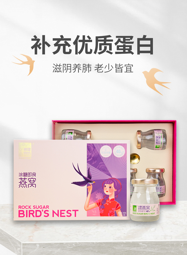 华润堂 补健良坊 冰糖即食燕窝 240克(40克x6瓶)