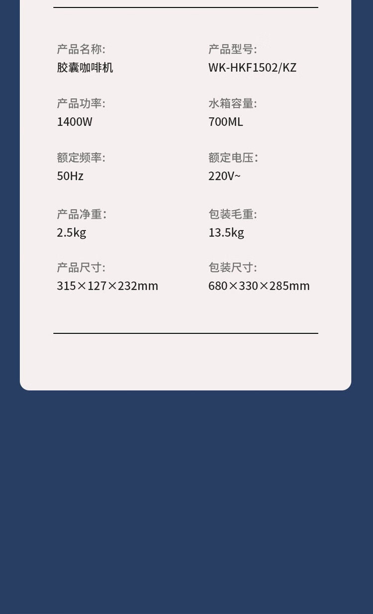 World Kitchen 700ml蓝色 胶囊咖啡机 WK-HKF1502/KZ