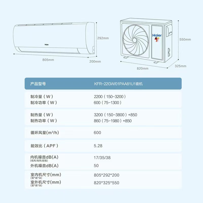 海尔/空调/KFR-22GW/01PAA81U1套机