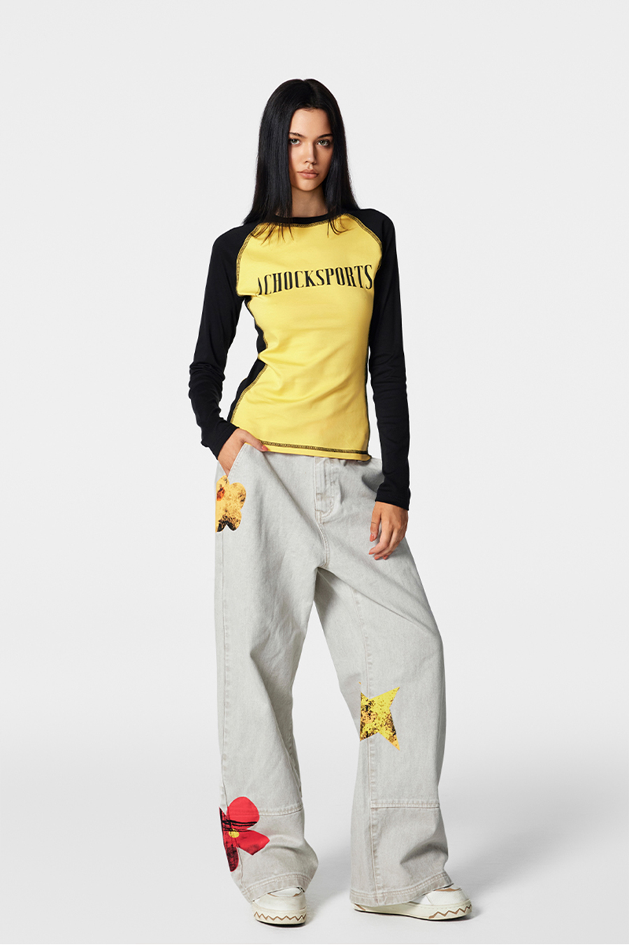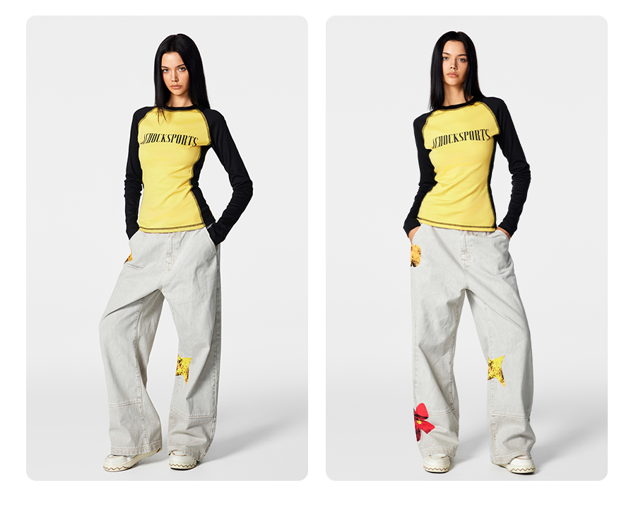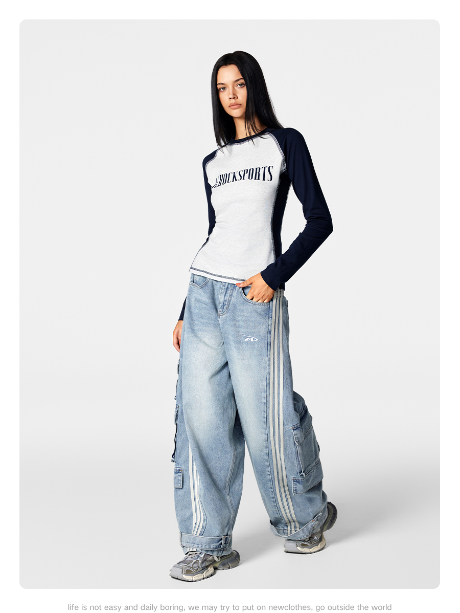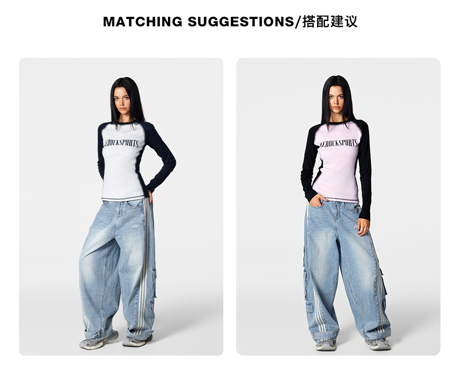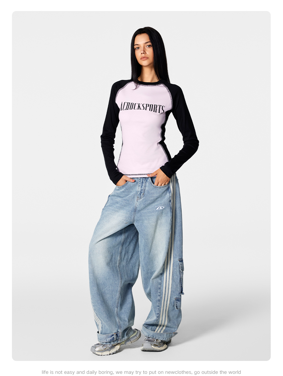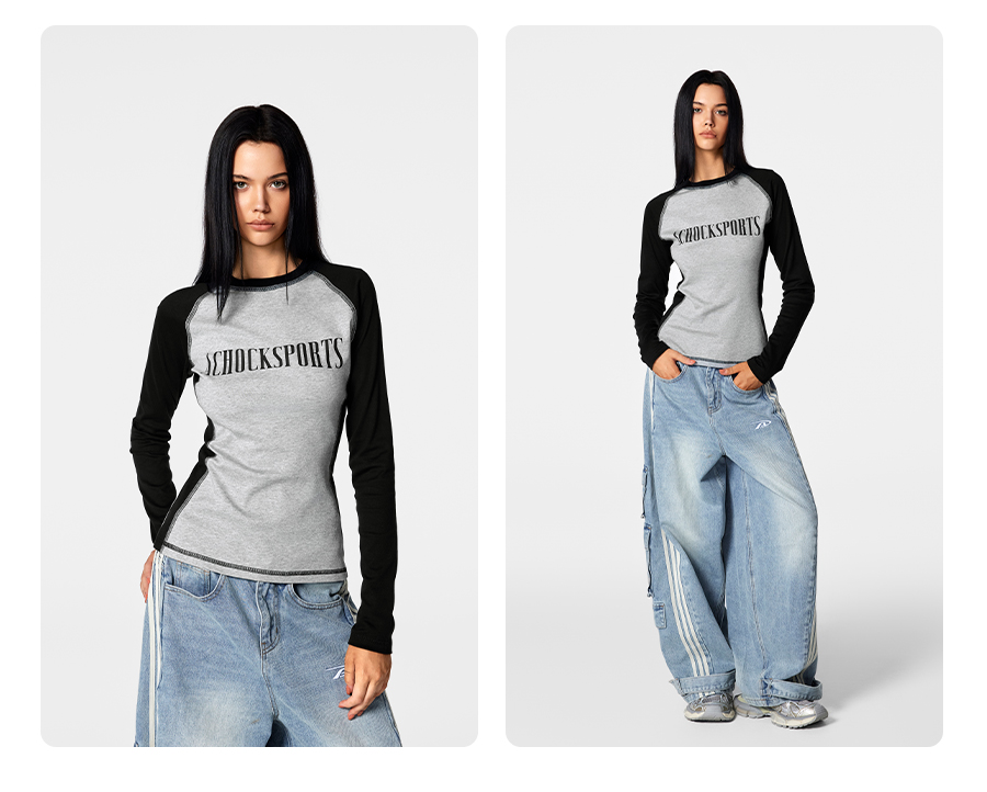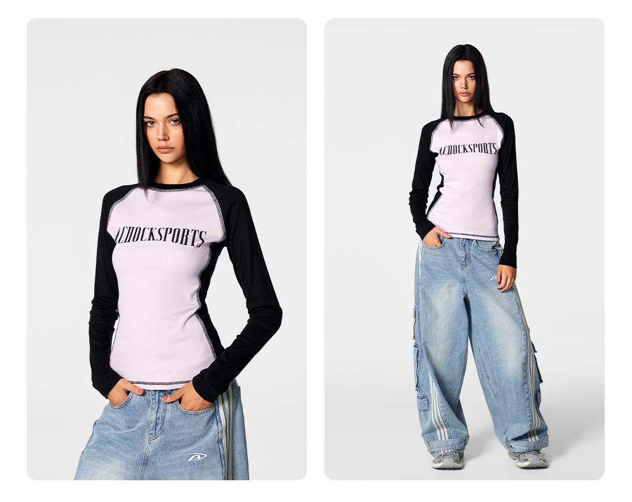 【Achock官方店】美式紧身长袖上衣女拼色正肩长袖T恤衫辣妹显瘦