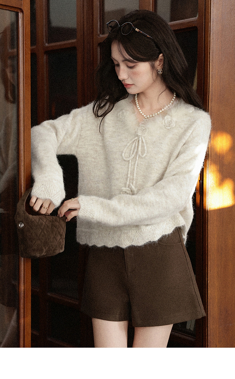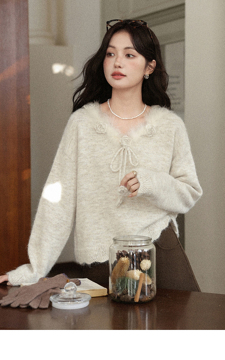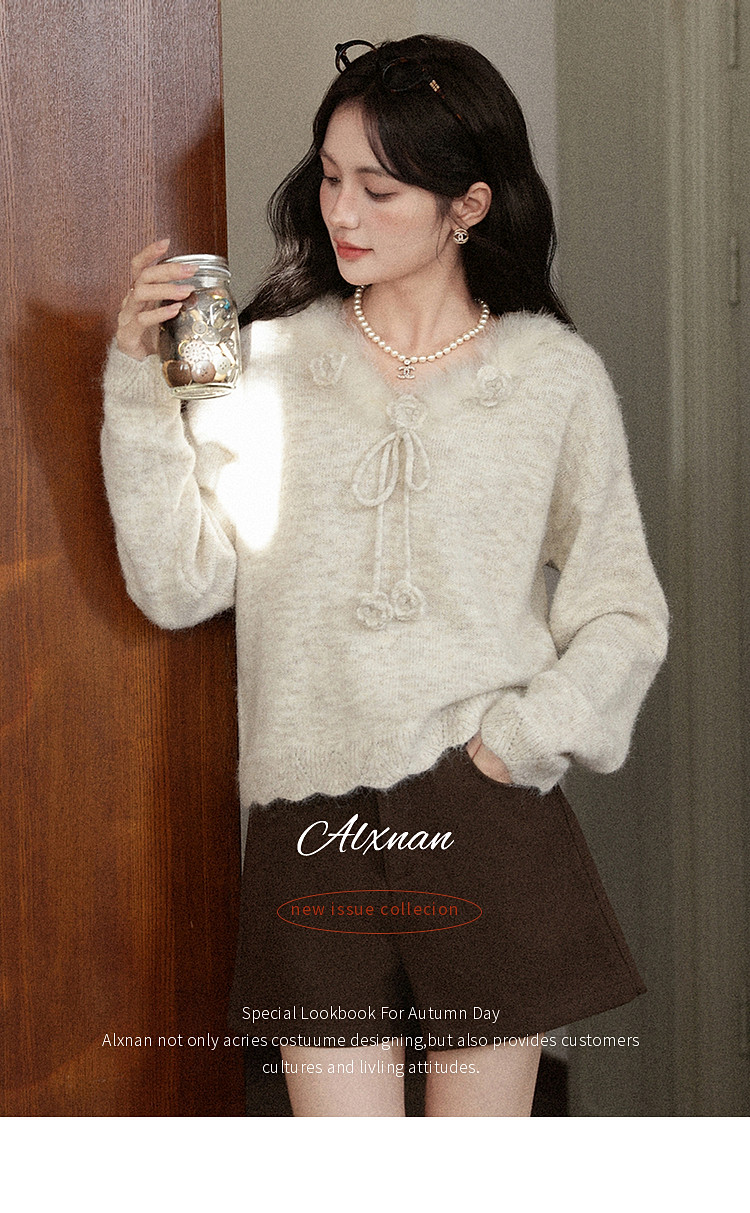 鹿向南「月光手书」高级慵懒羊毛毛衣女冬季高级燕麦色针织衫上衣
