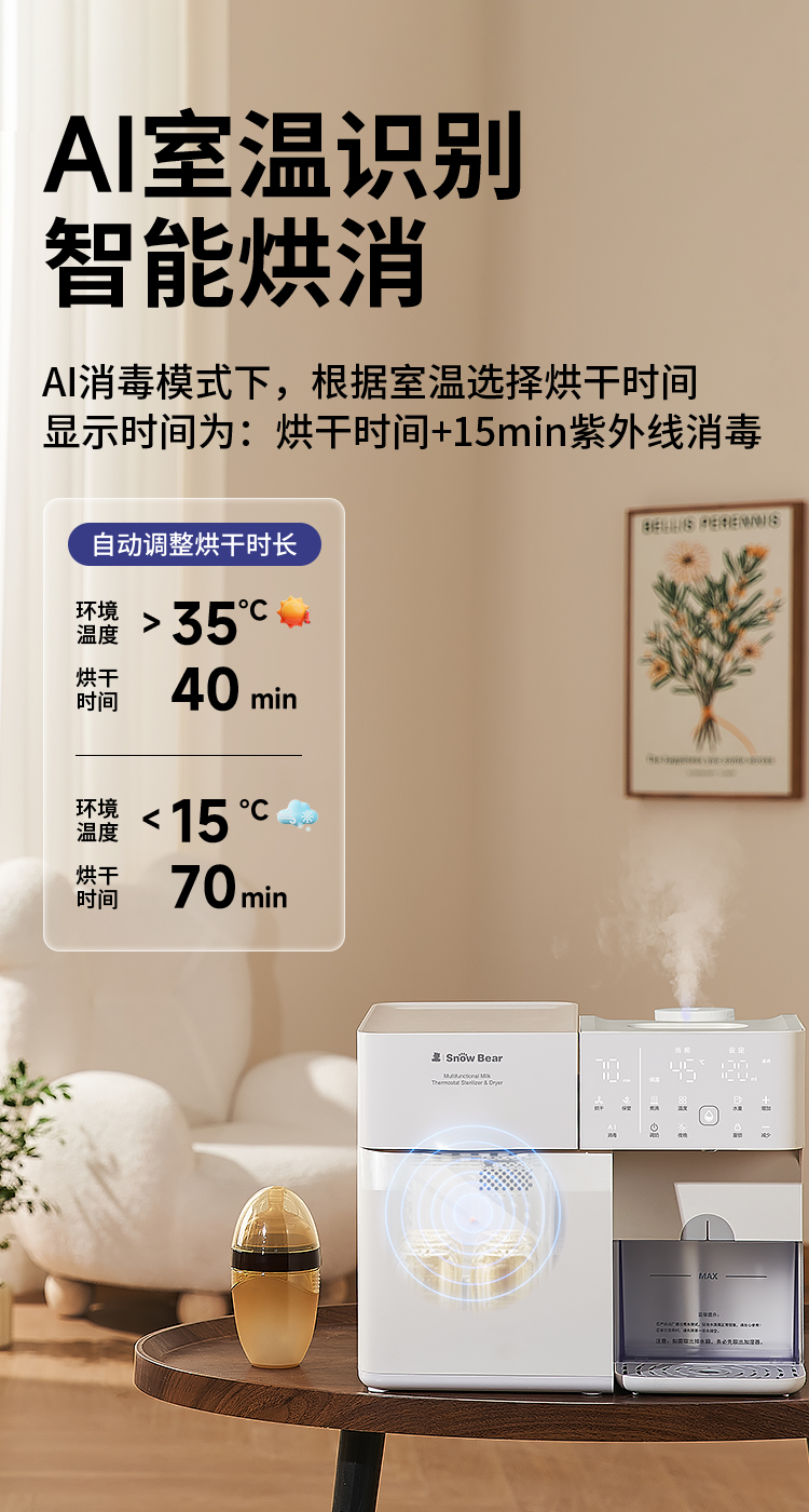 小白熊紫外线奶瓶消毒柜婴儿泡奶温奶器烘干二合一体