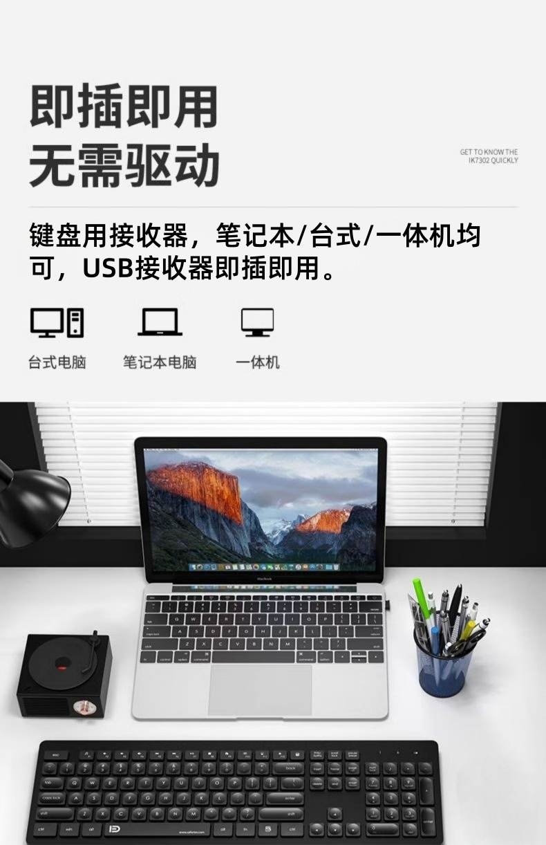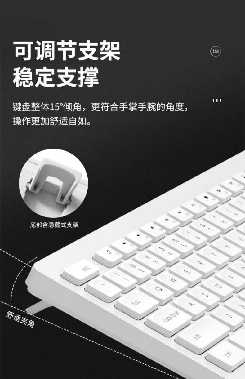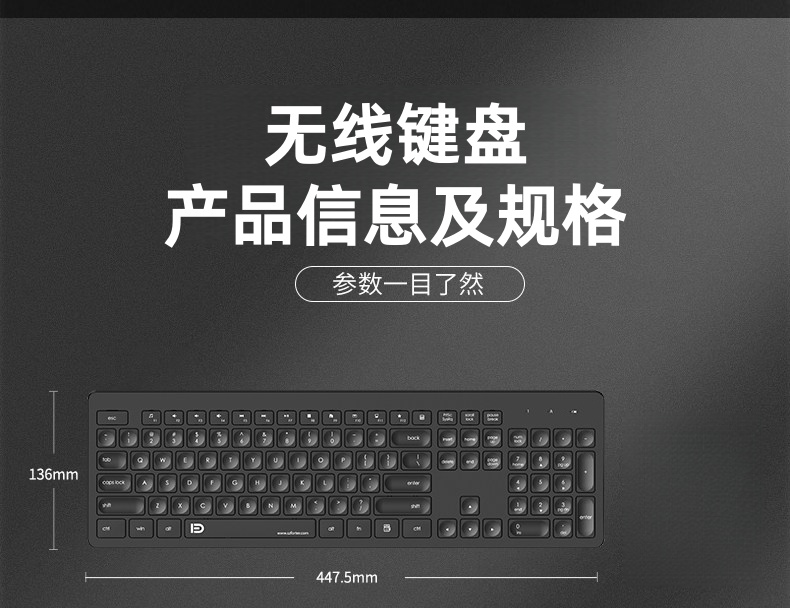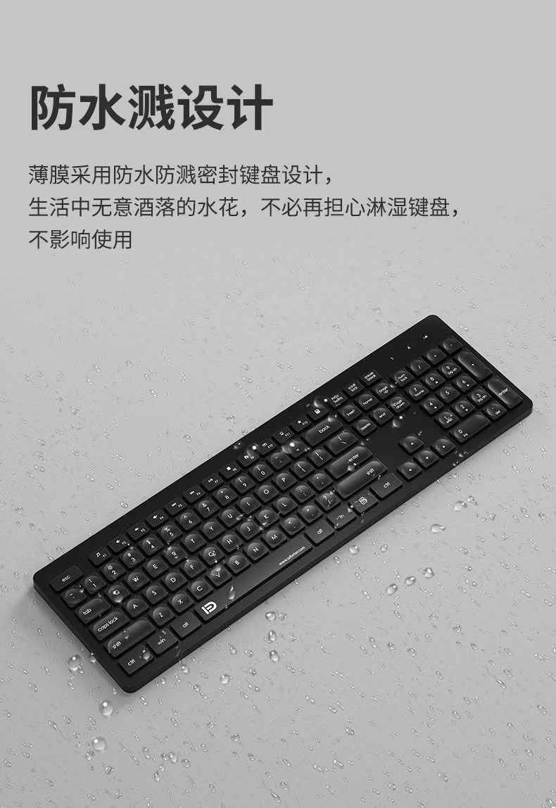 富德K7302 白绿色2.4G无线办公低音降噪通用薄款便携多媒体键盘