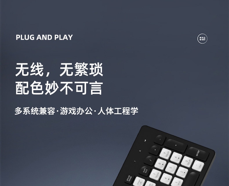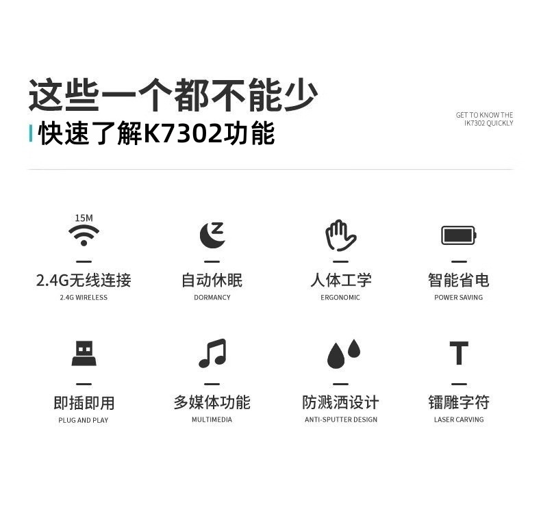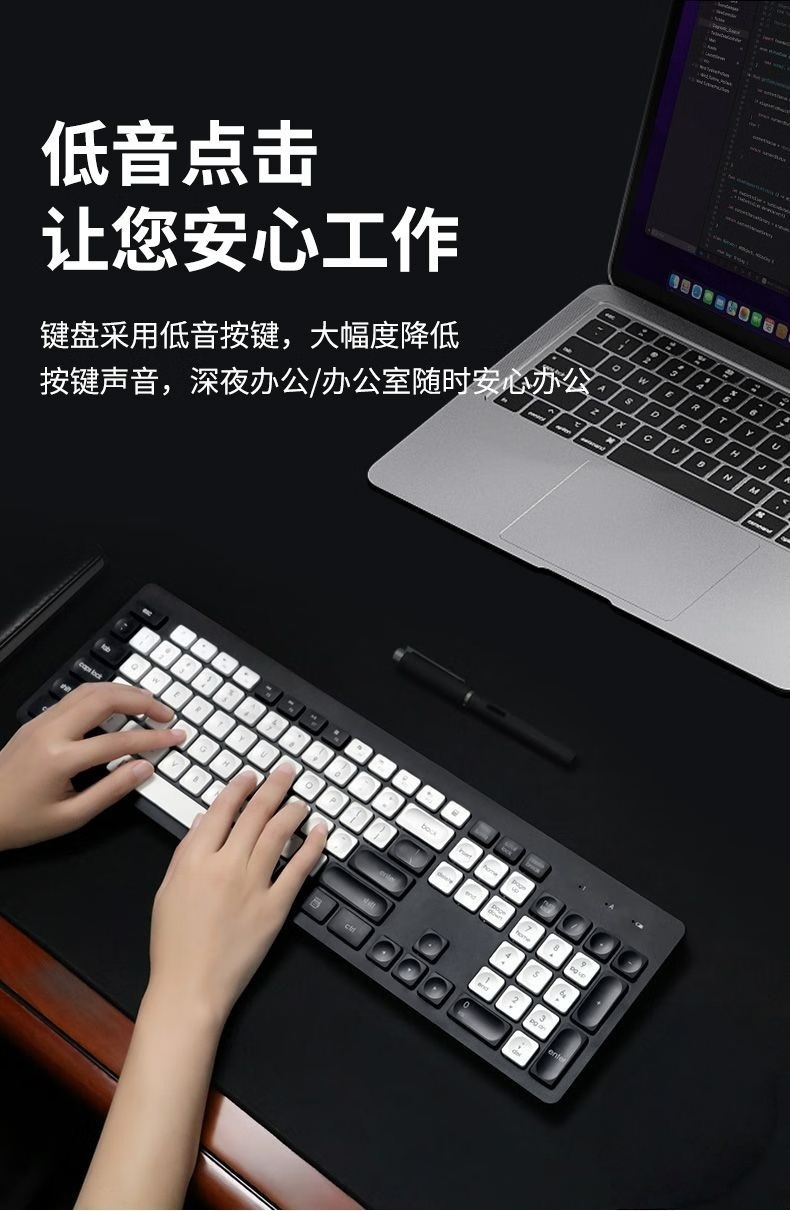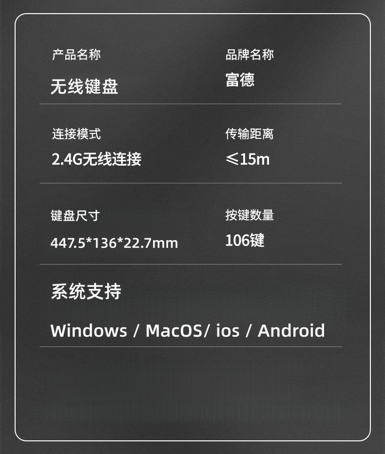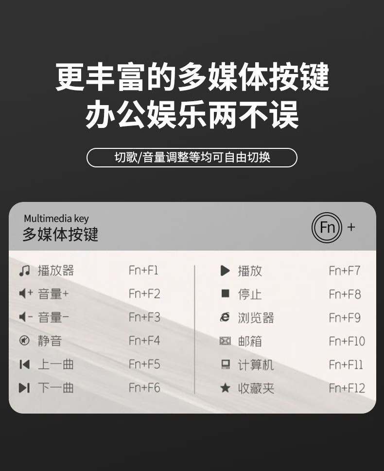 富德K7302 白绿色2.4G无线办公低音降噪通用薄款便携多媒体键盘