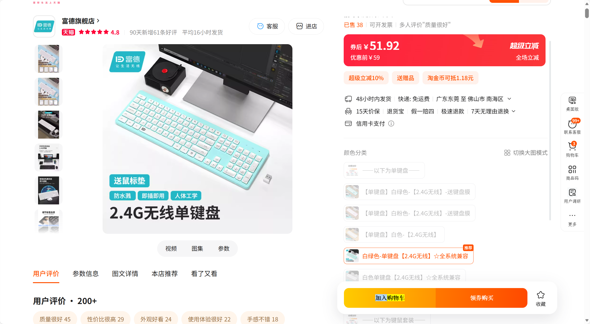 【淘宝单键盘51.92元】