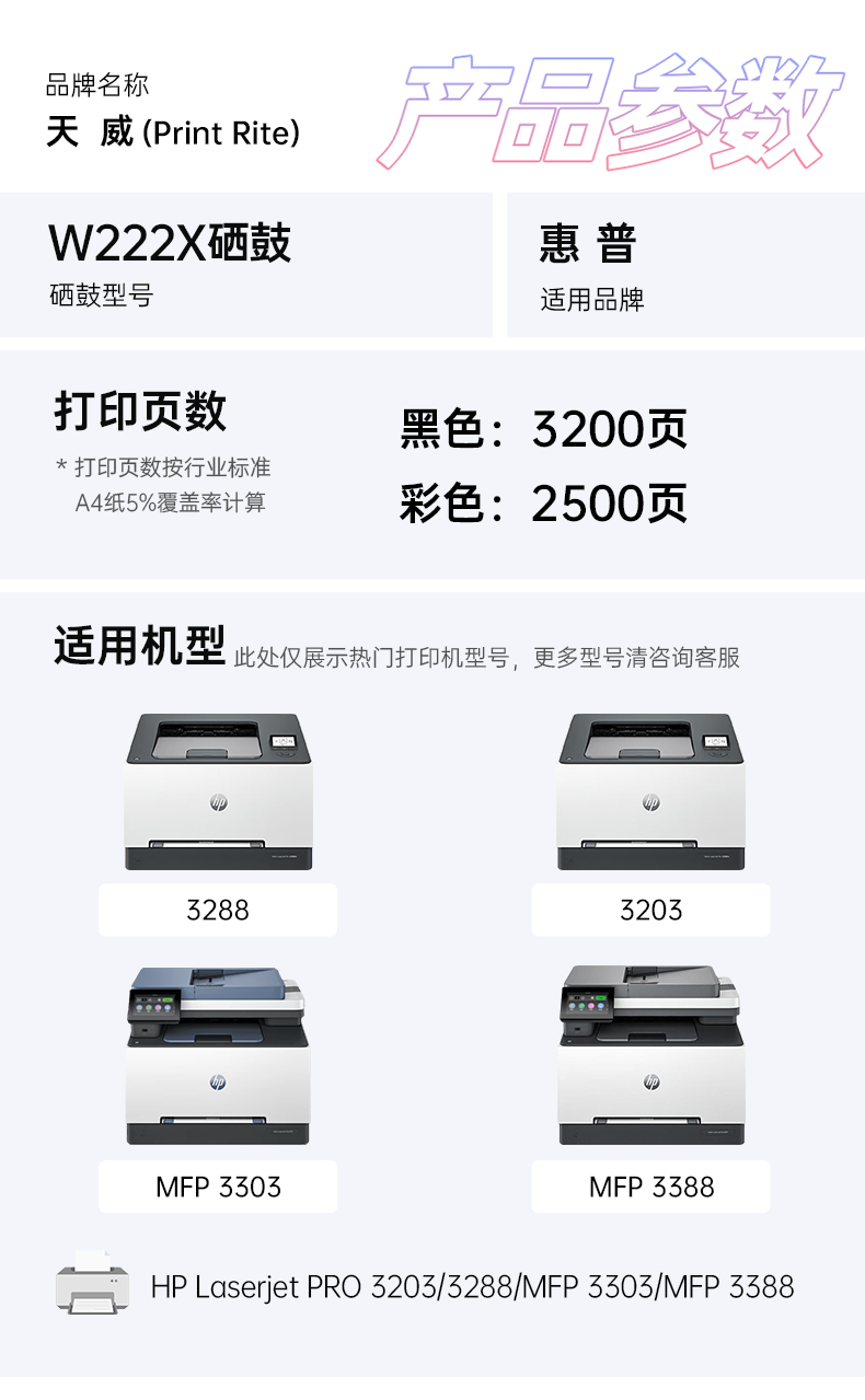 天威 W2220A 硒鼓 适用 惠普3388sdw HP 3288dw 3288dn 3388fdw 3388sdw 3203 粉盒 硒鼓