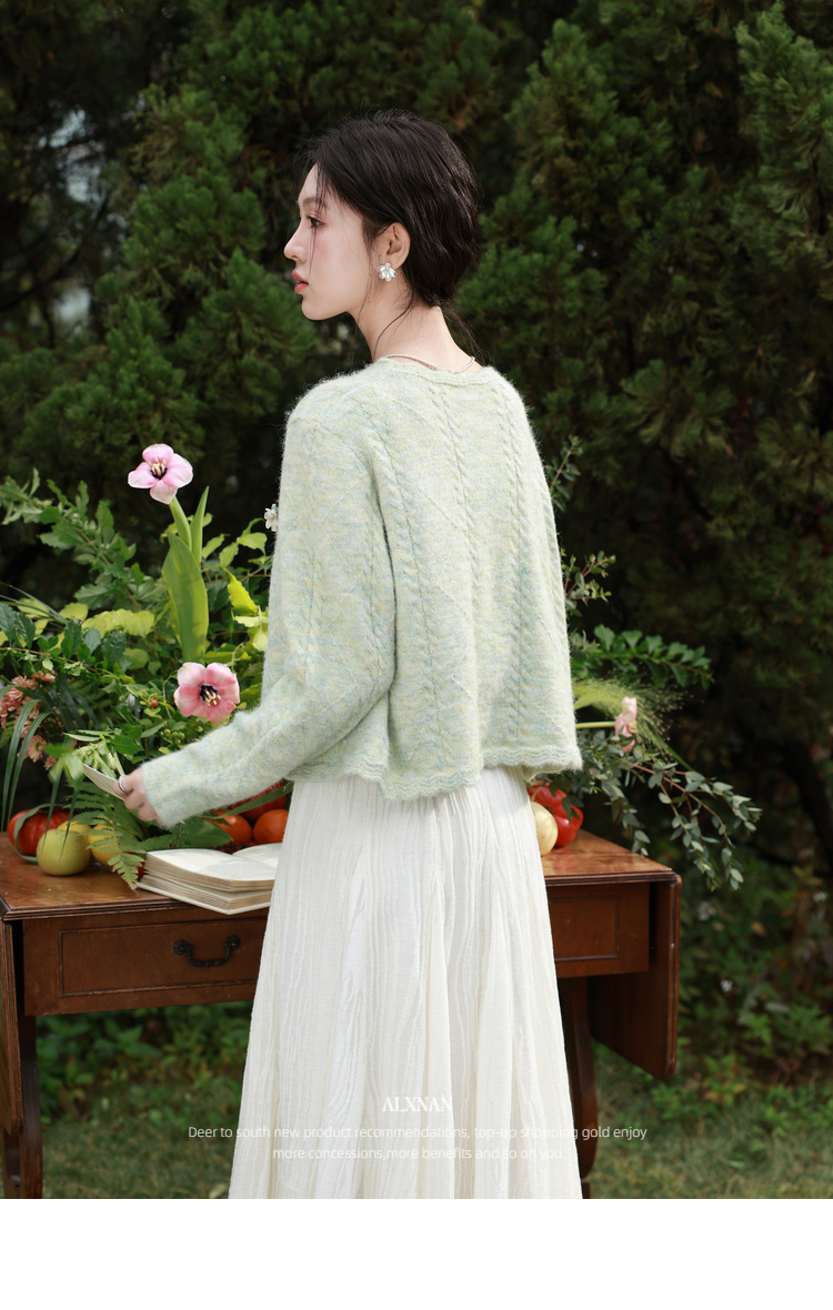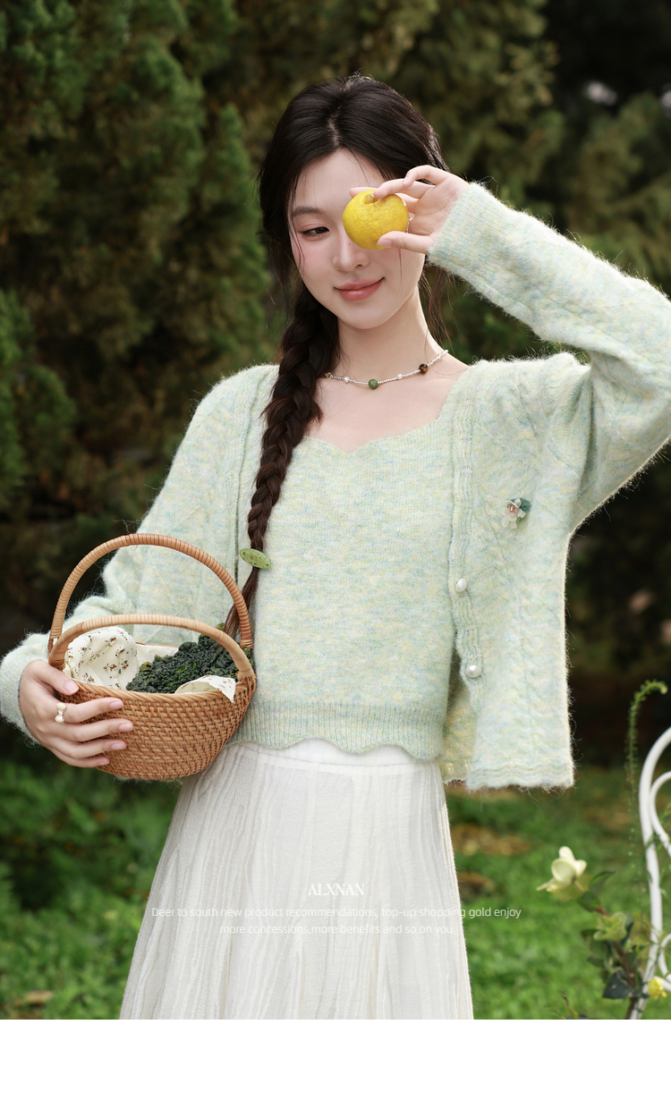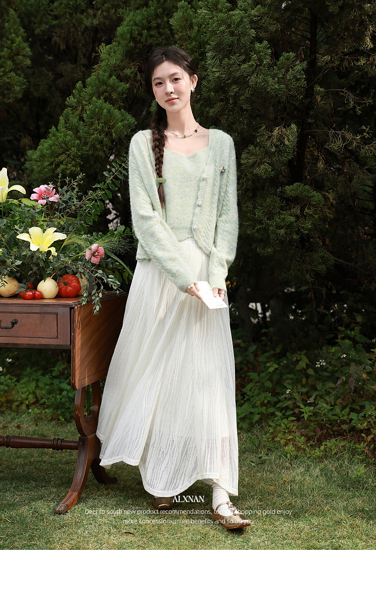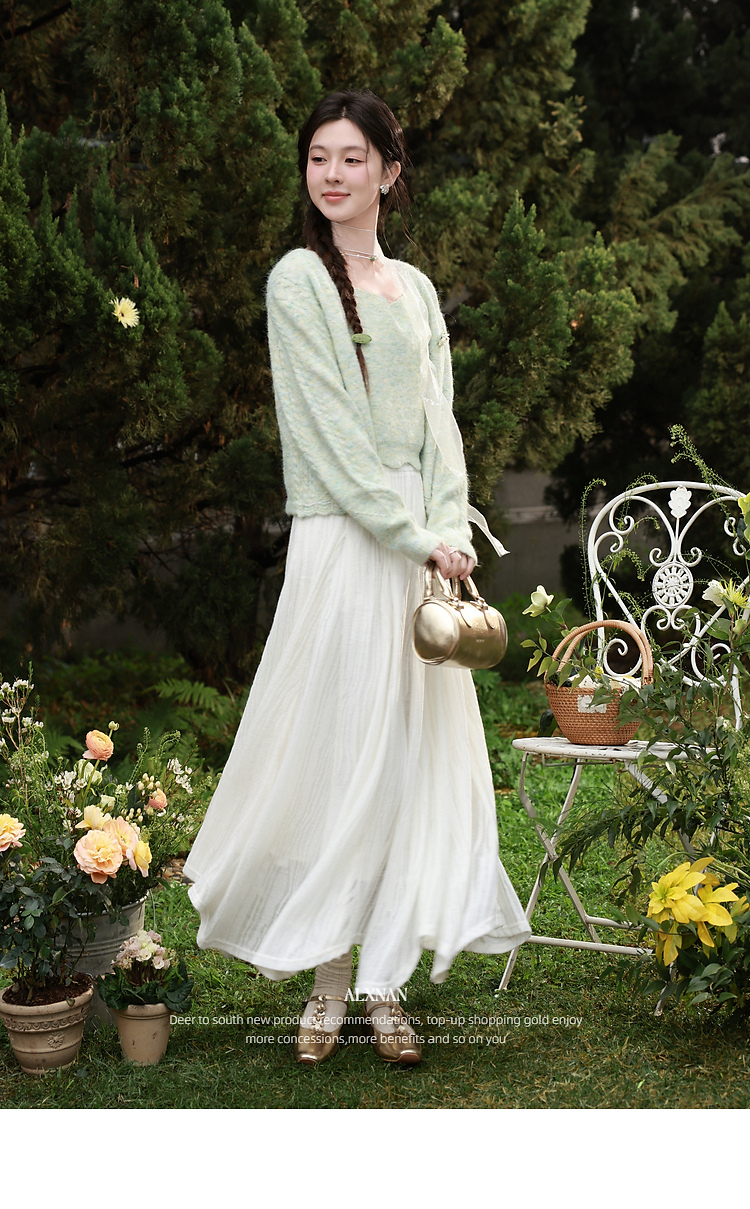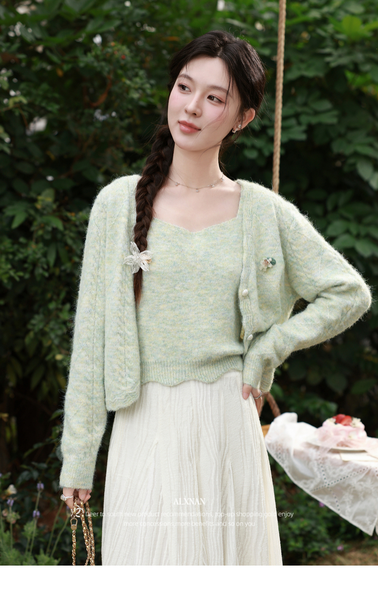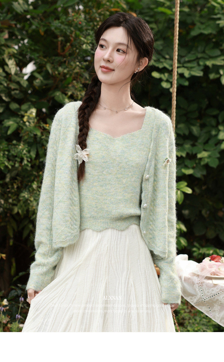 鹿向南「绿森花间」豆绿色针织吊带背心女春新款别致叠穿打底上衣