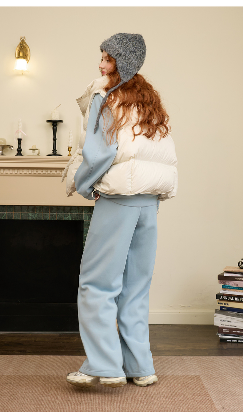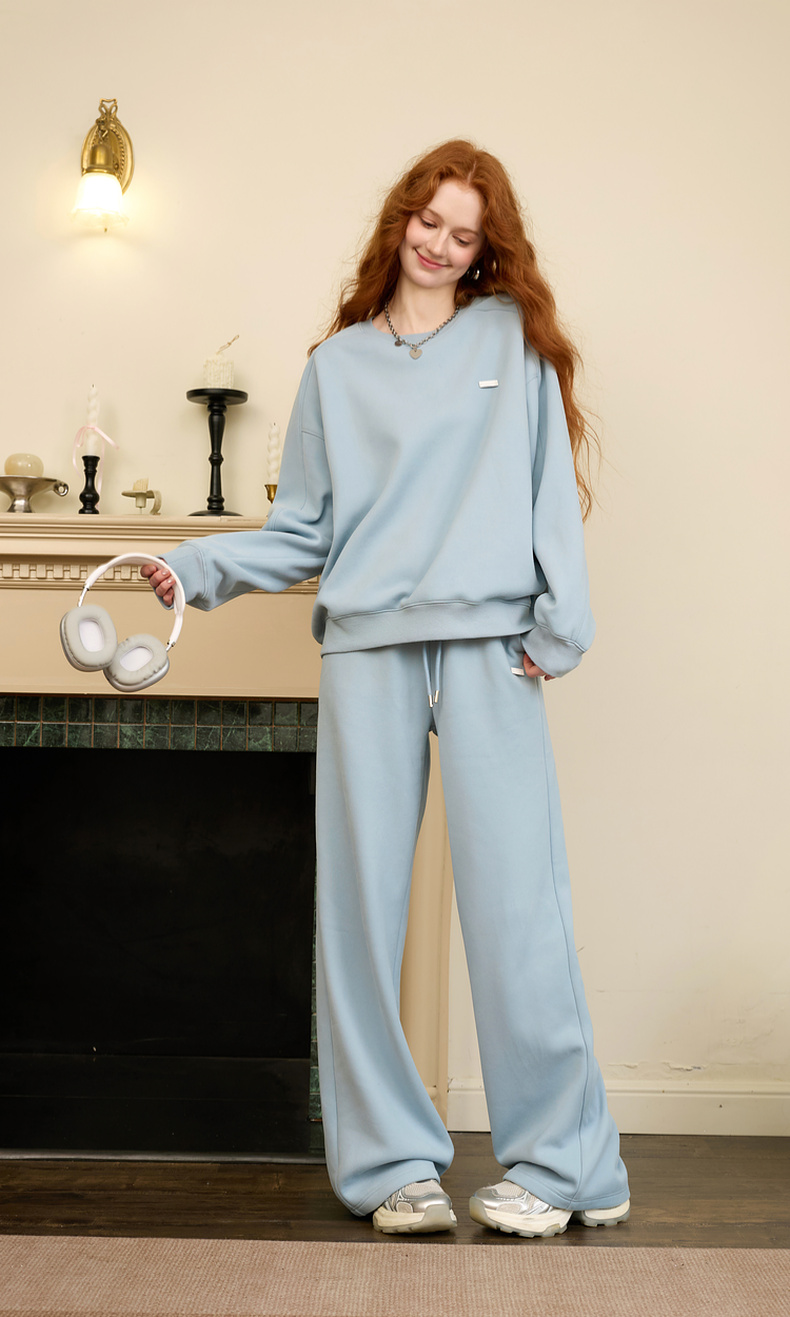 三彩2025冬季新款休闲两件套加绒保暖卫衣长裤直筒裤套装宽松M