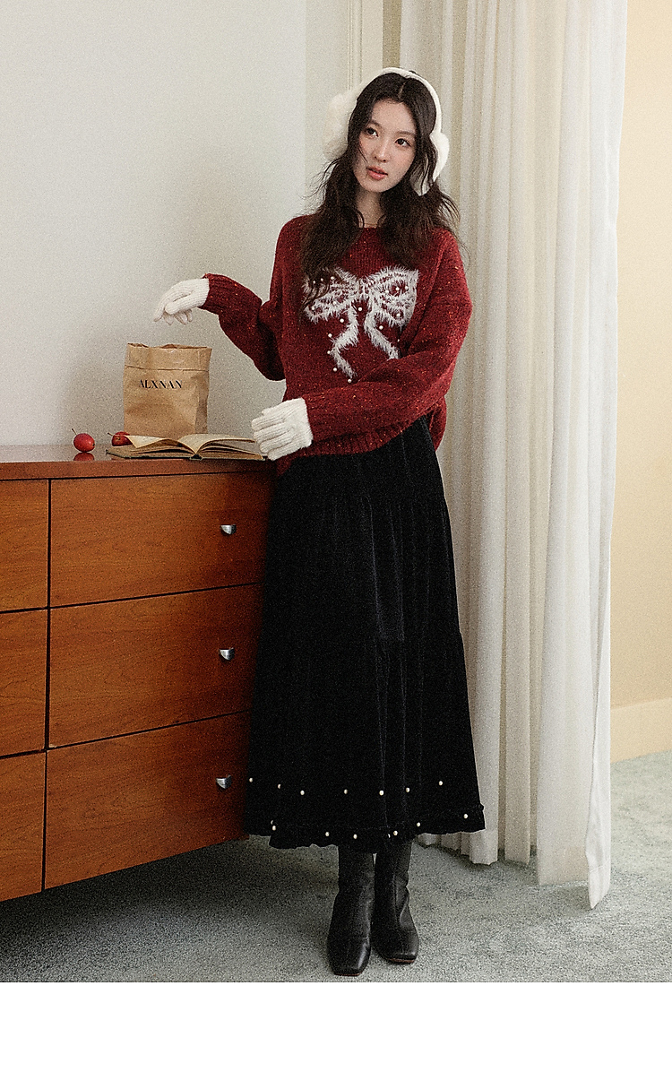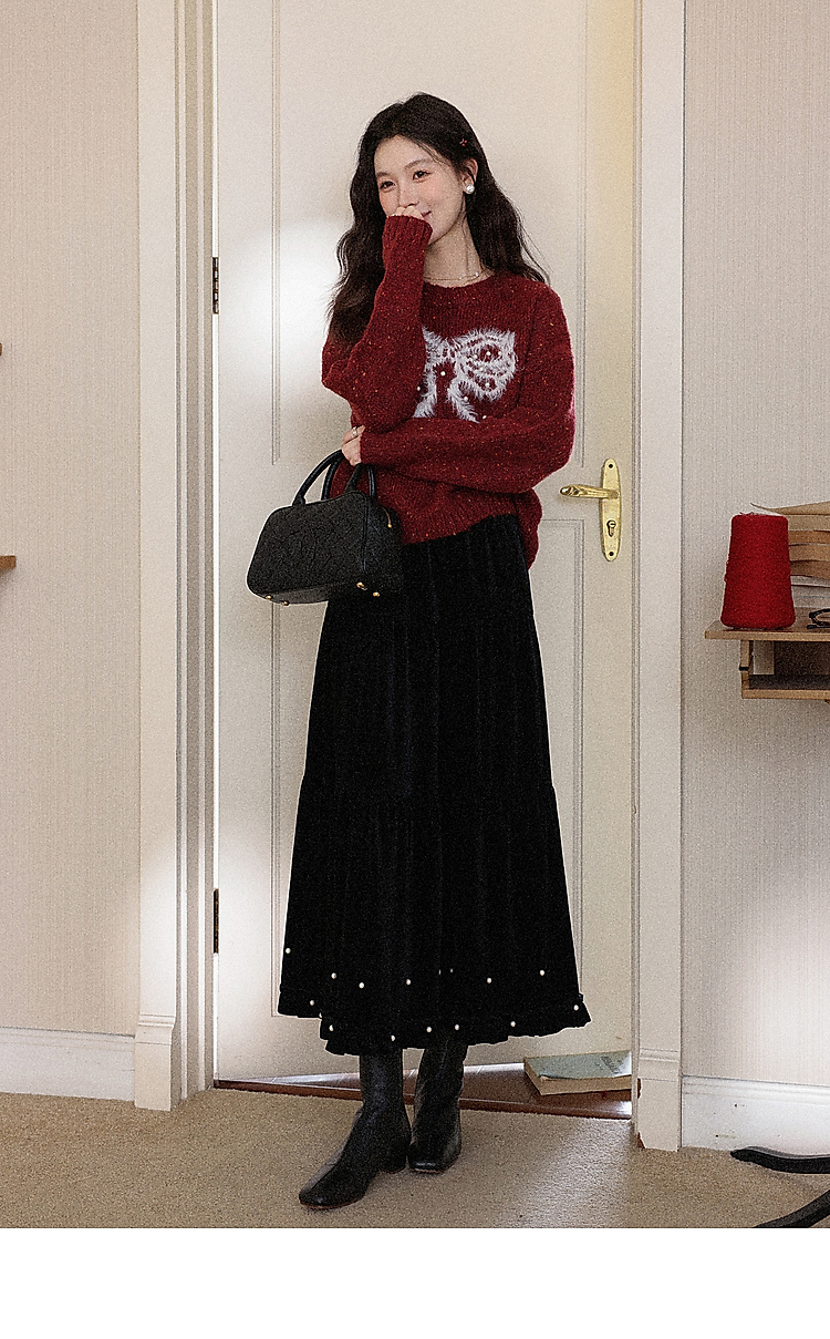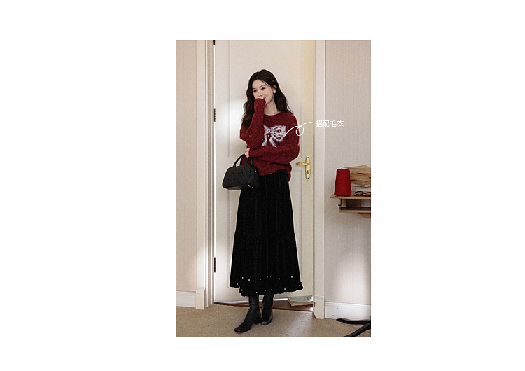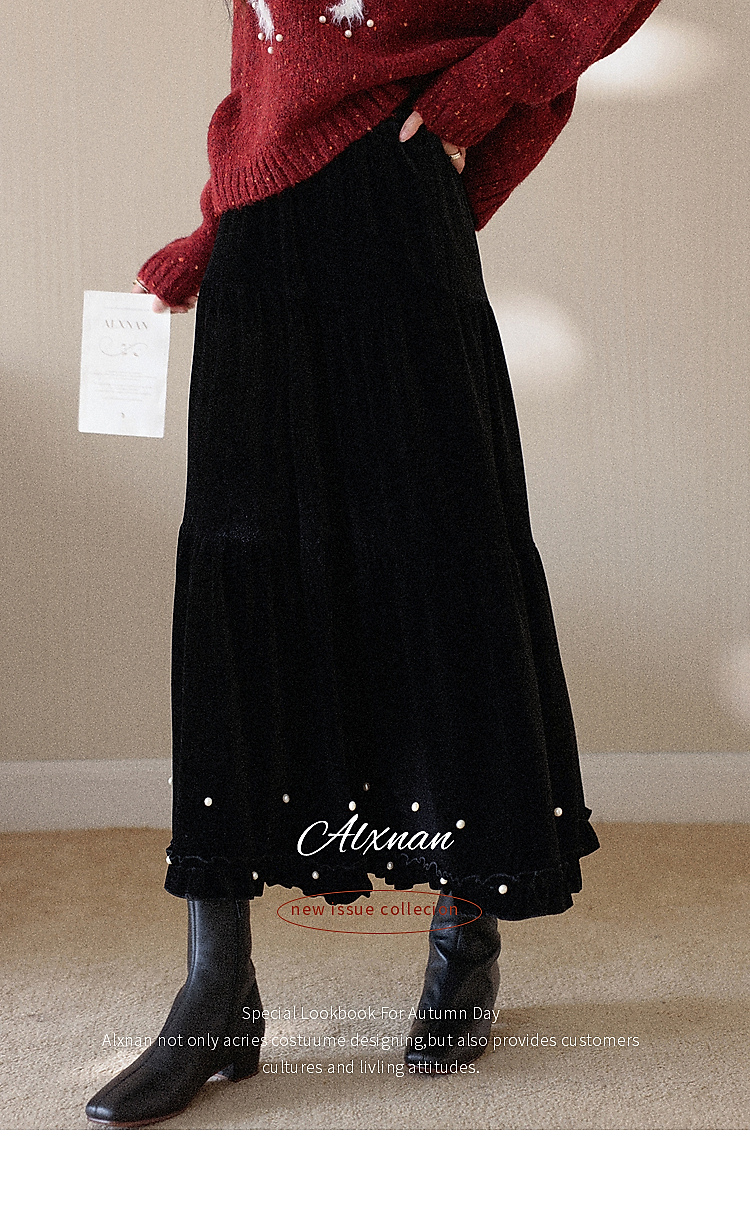 鹿向南「夜幕星光」加厚黑色半身裙女秋冬设计感高级显瘦长款裙子