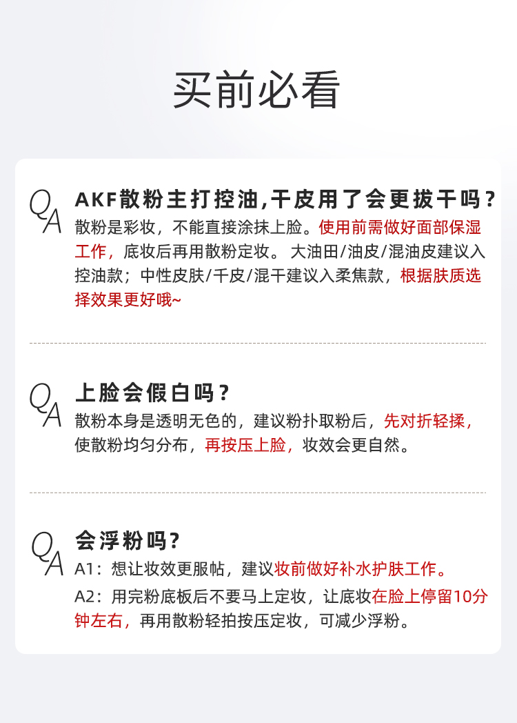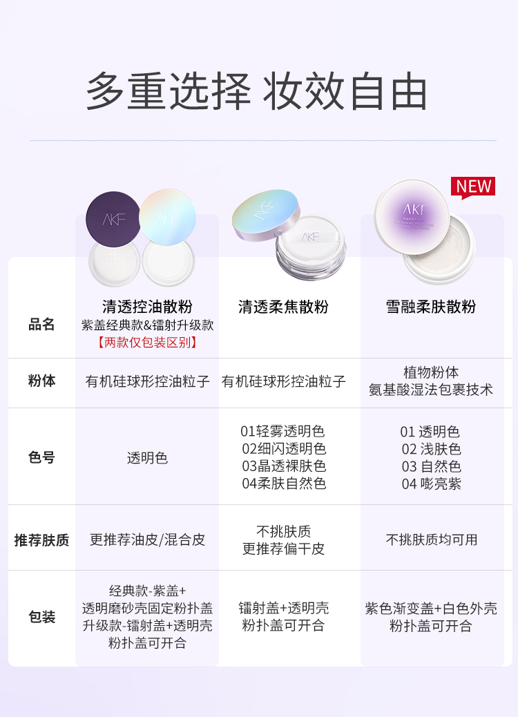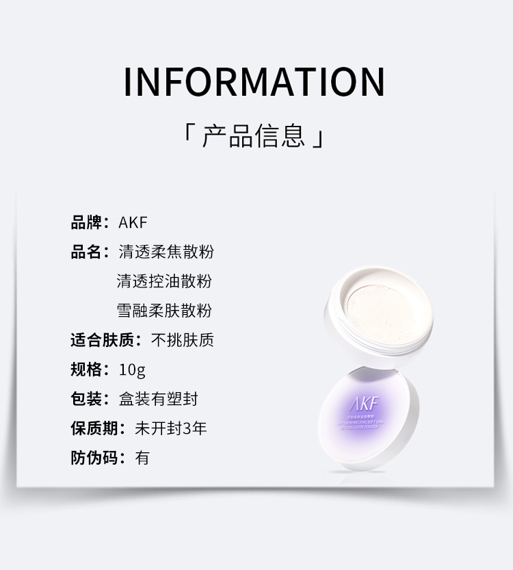 AKF 雪融柔肤定妆散粉/清透柔焦散粉/清透控油散粉 10g