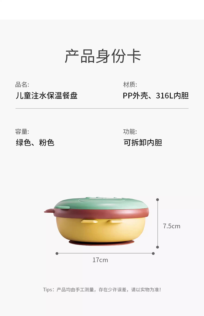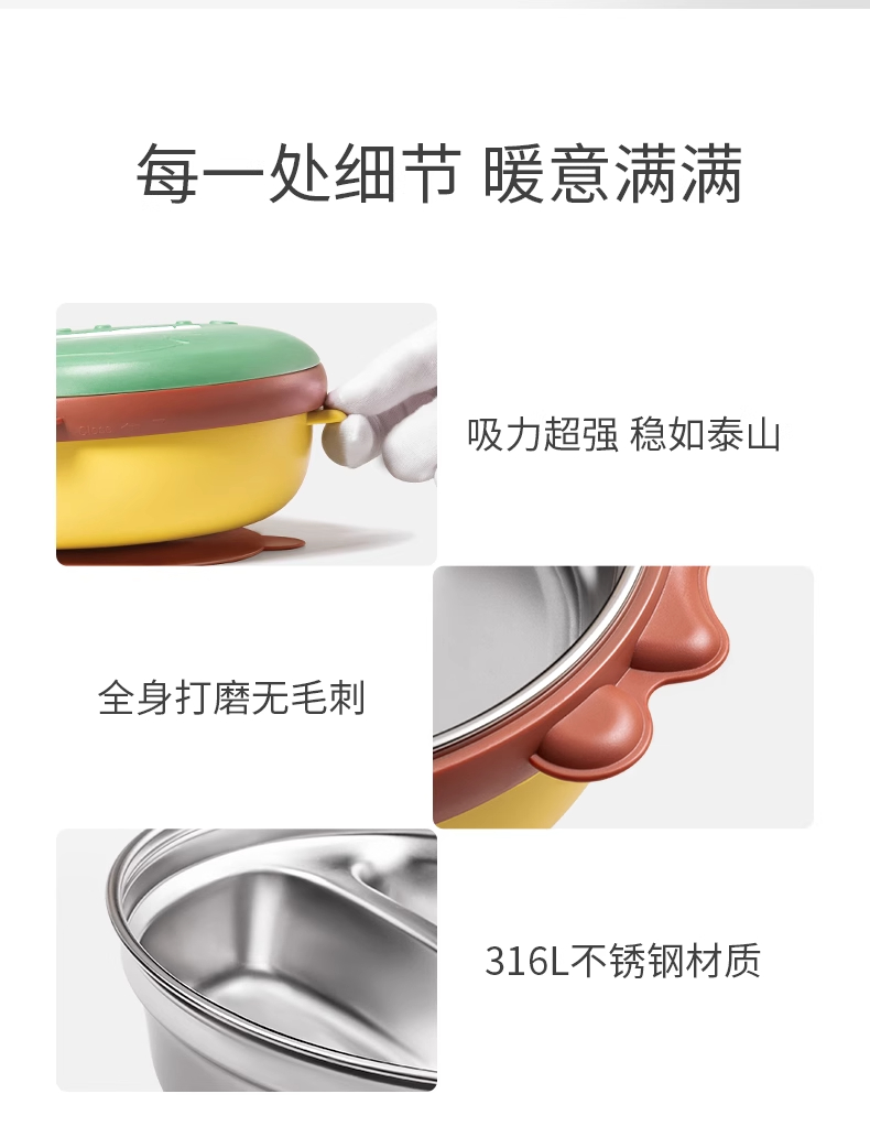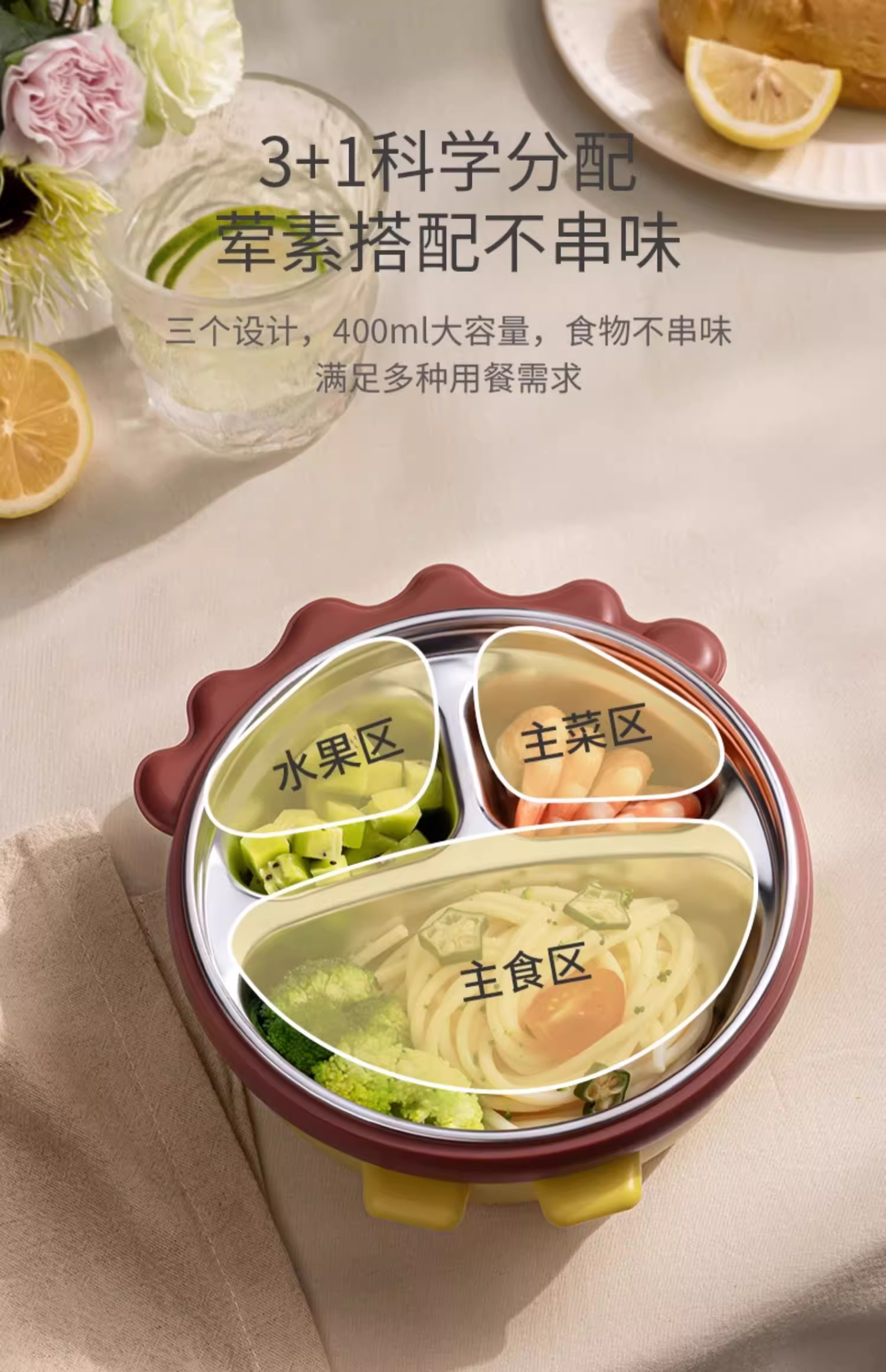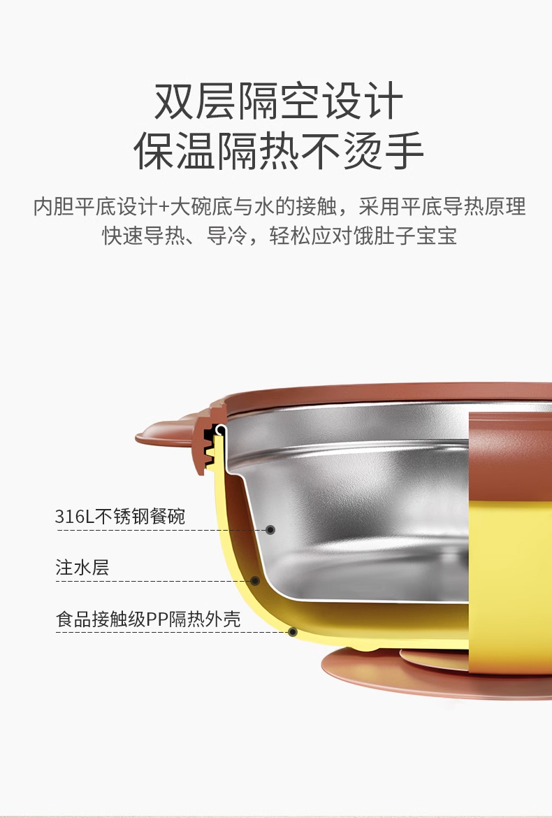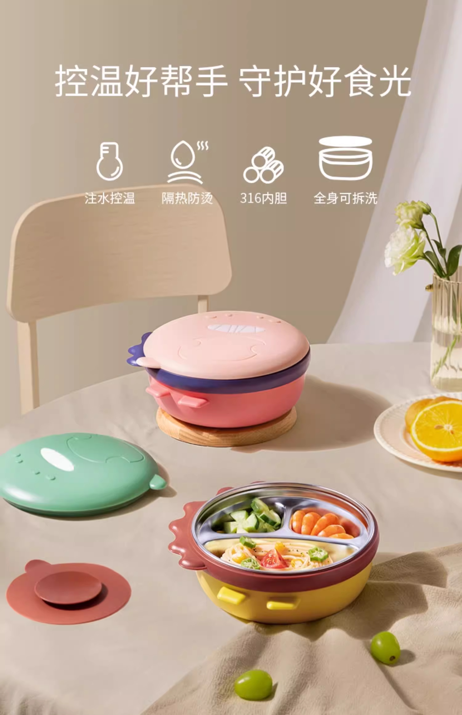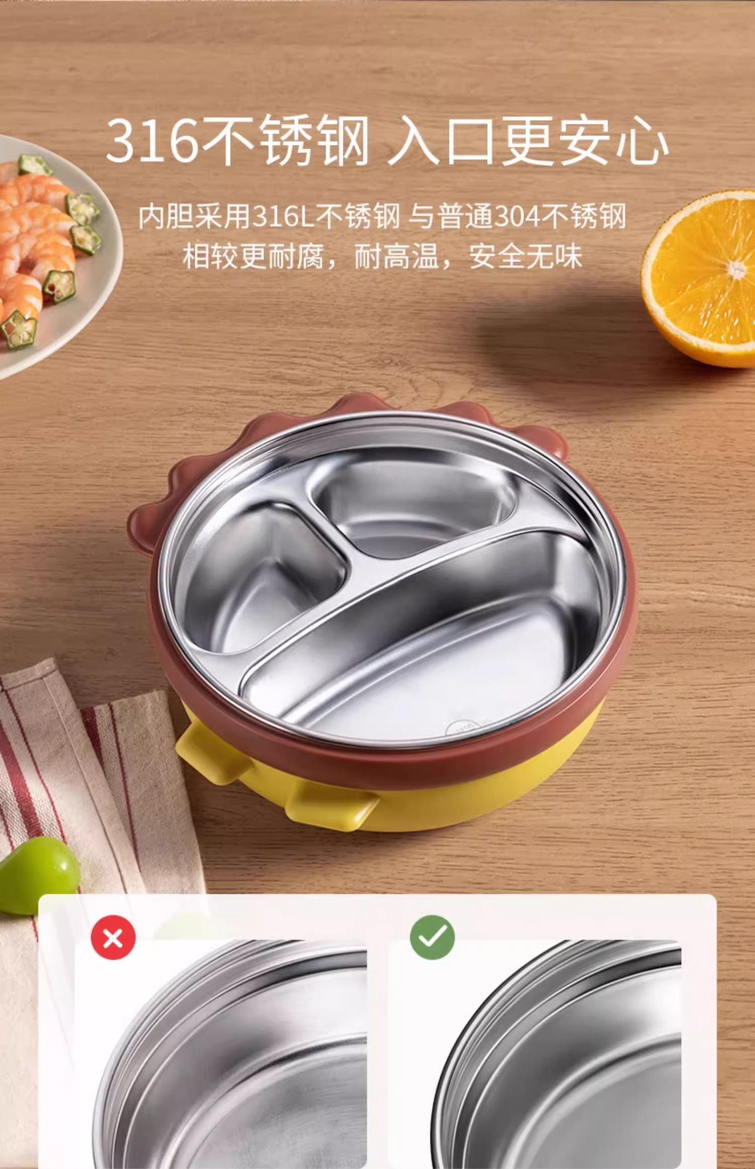 不锈钢儿童注水保温餐盘 分格辅食碗 316L内胆