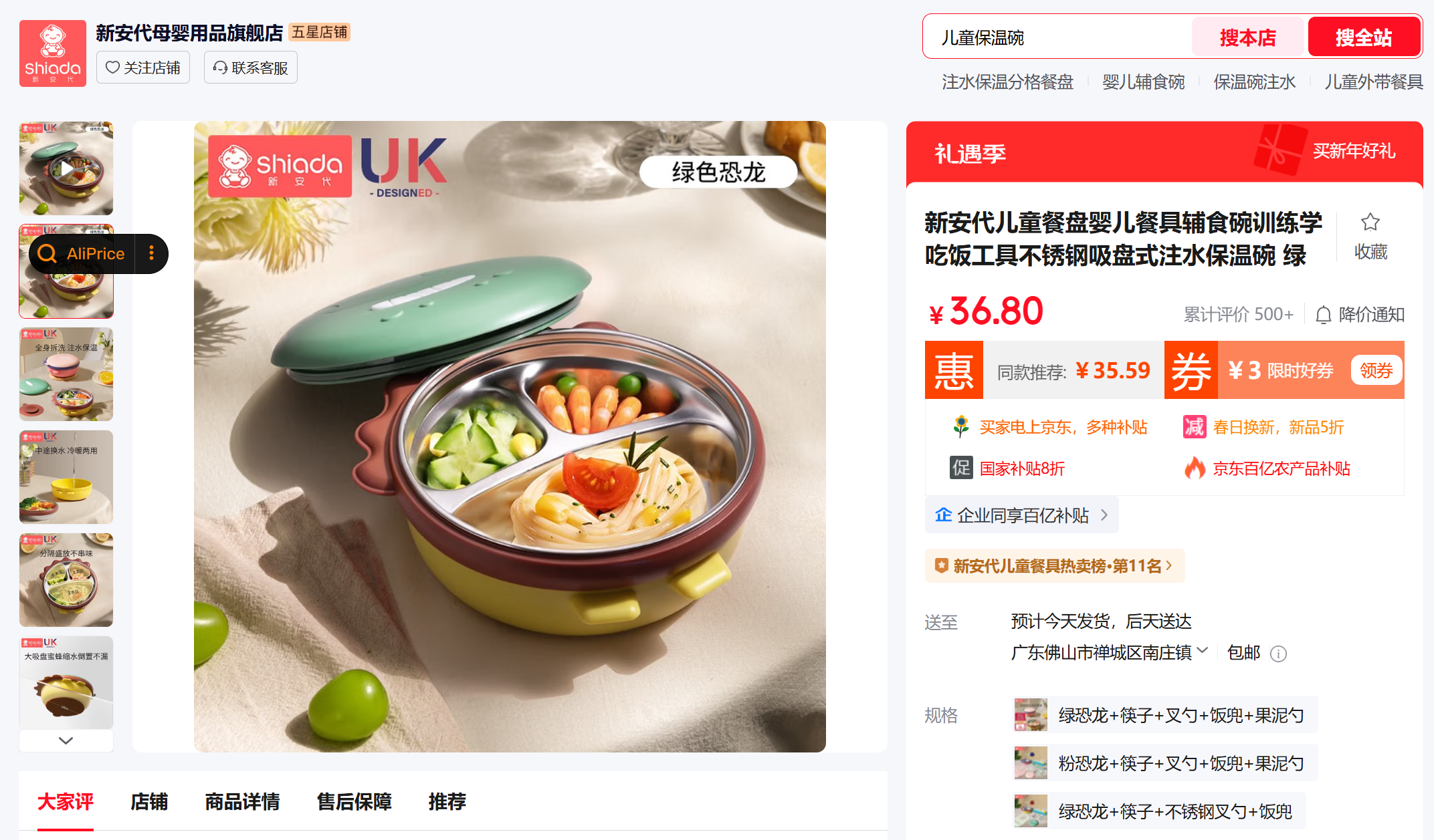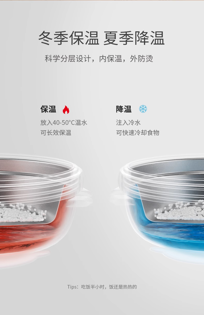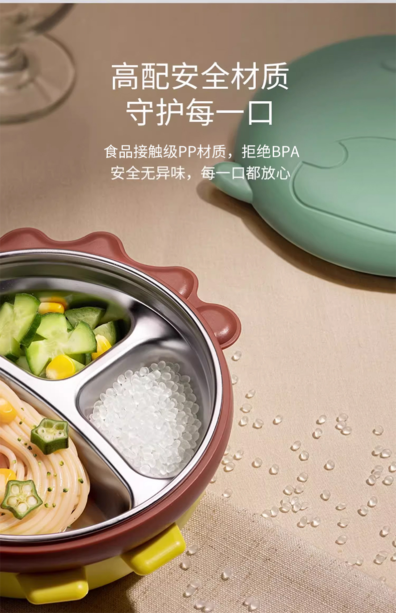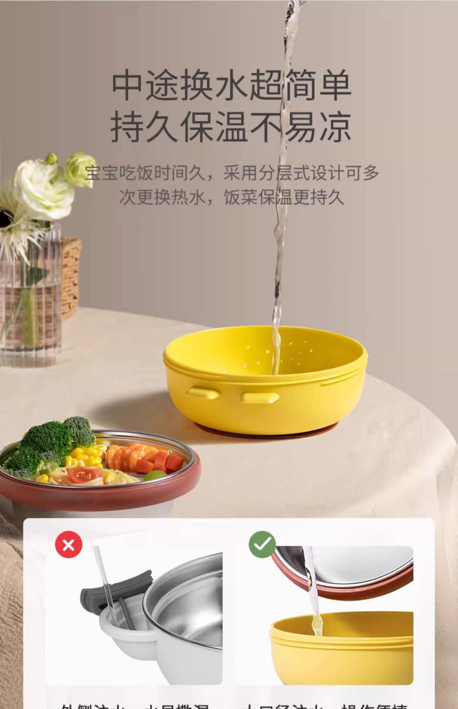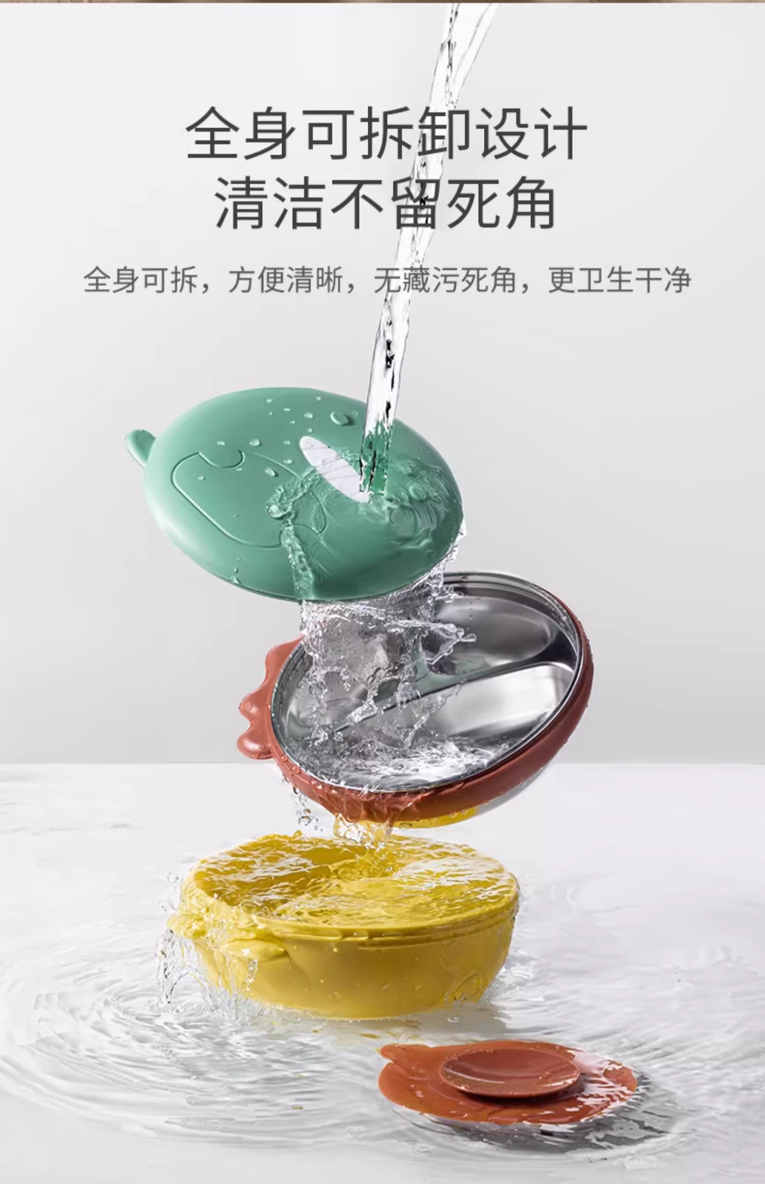 不锈钢儿童注水保温餐盘 分格辅食碗 316L内胆