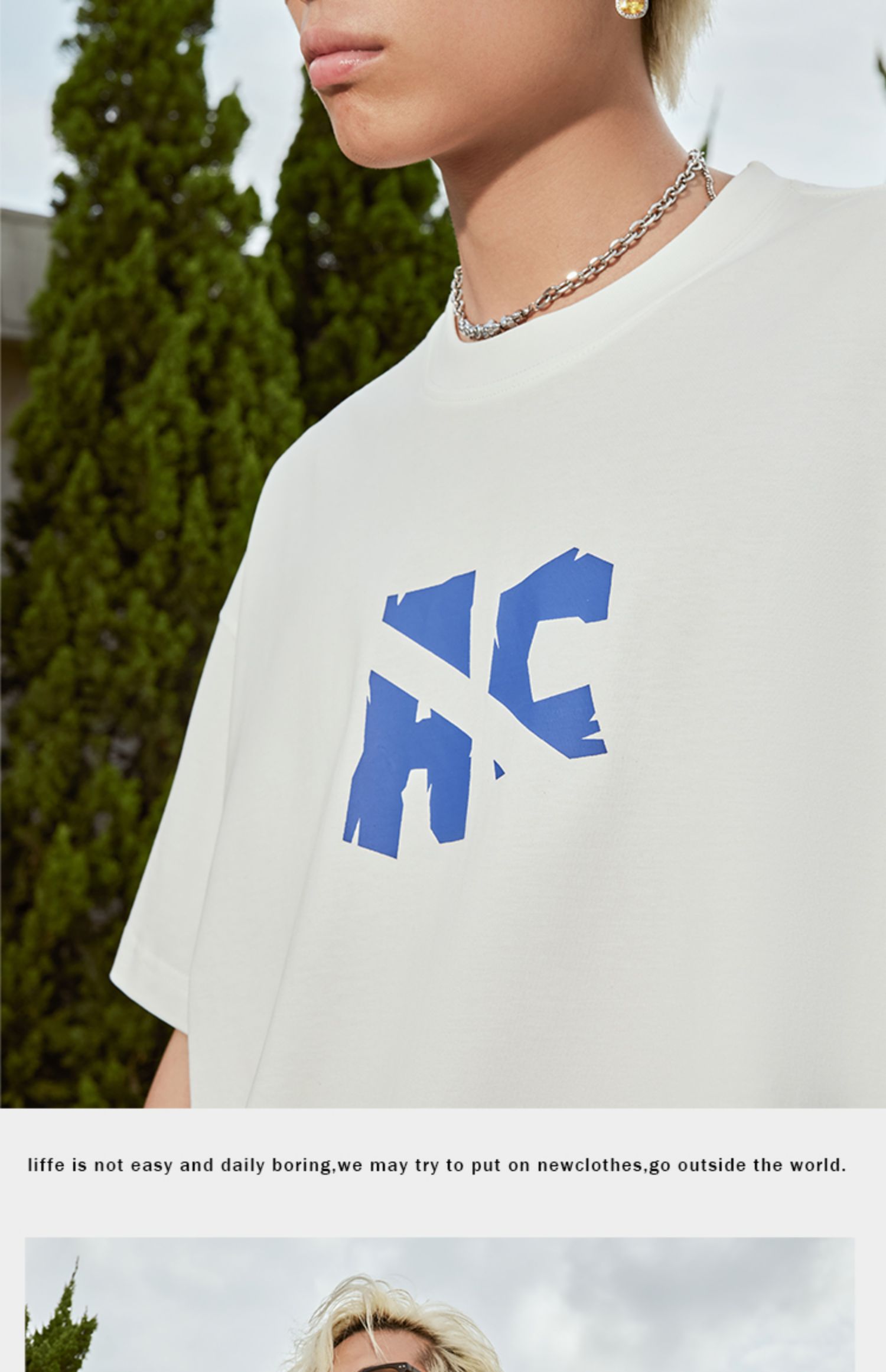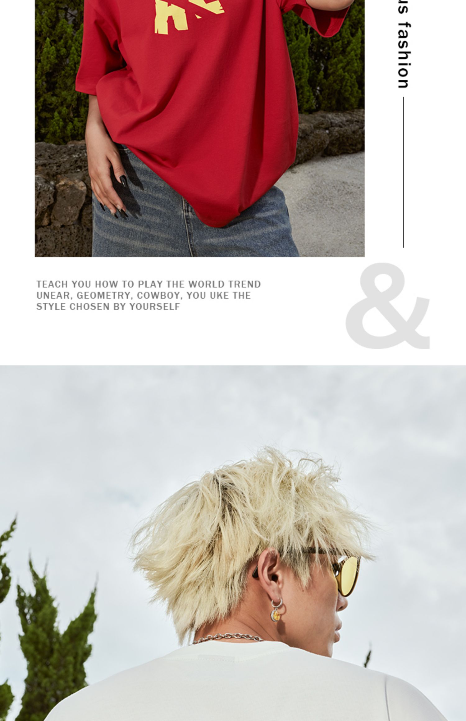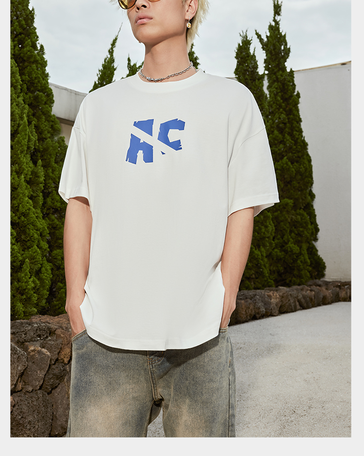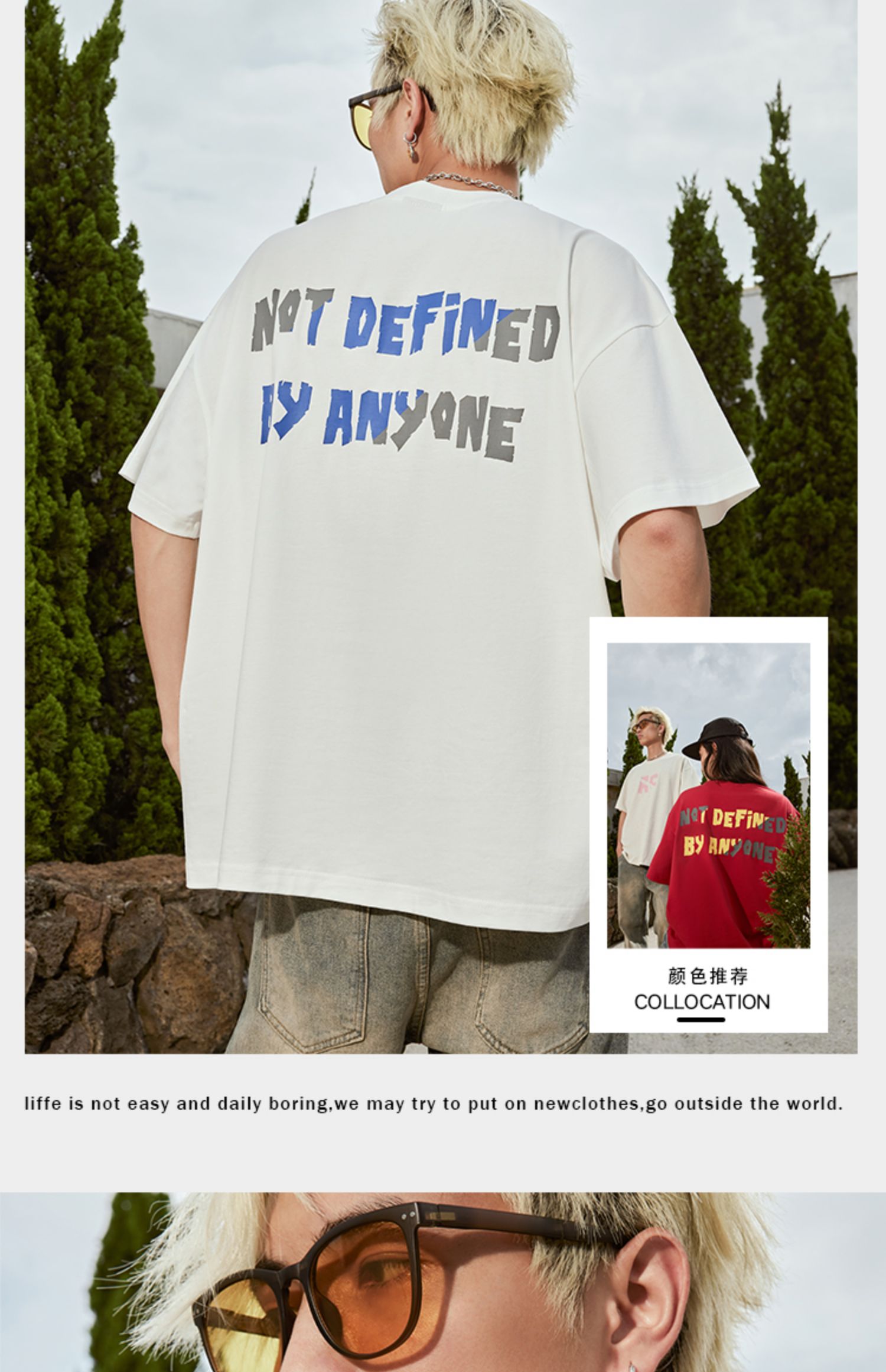 【Achock官方店】潮高街手写标语印花圆领五分袖美式嘻哈短袖T恤