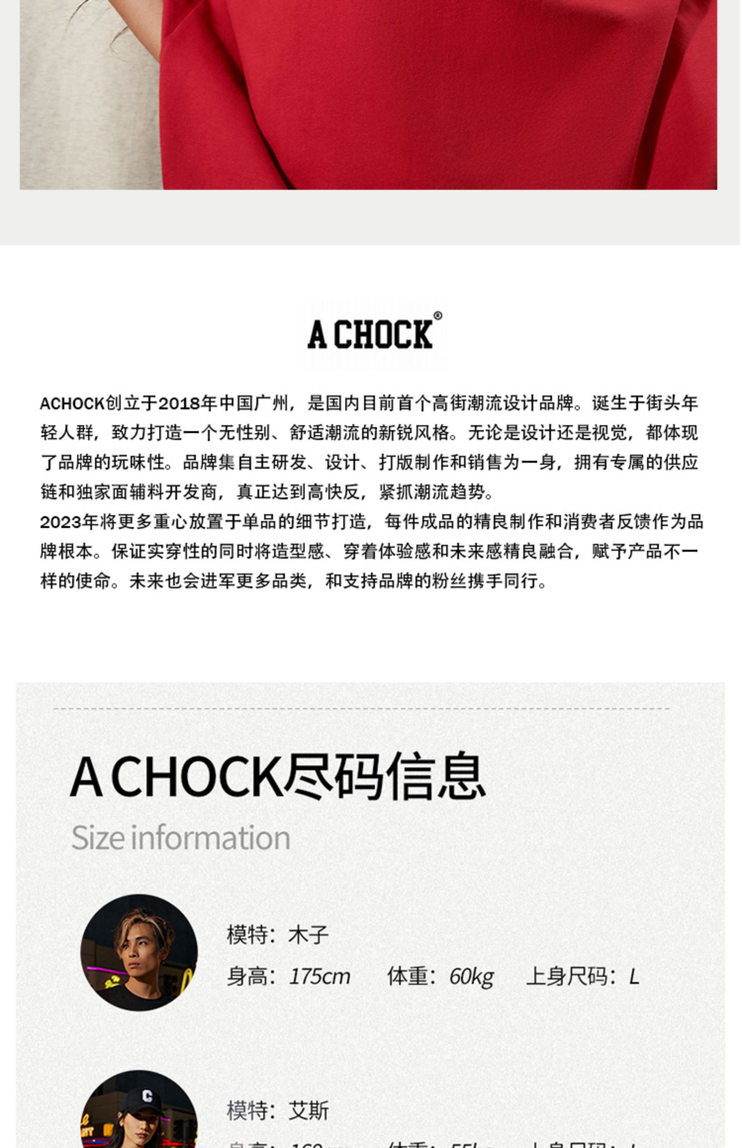 - ACHOCK创立于2018年的中国广州 以高街文化为核心 致力于打造一个无性别 舒适潮流的新锐风格
