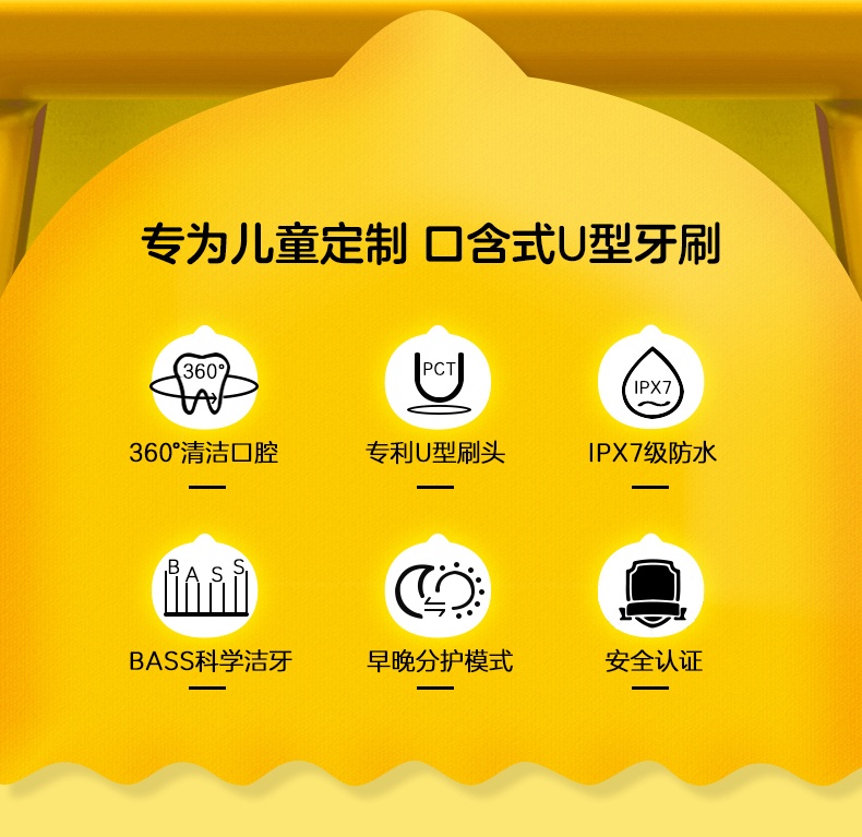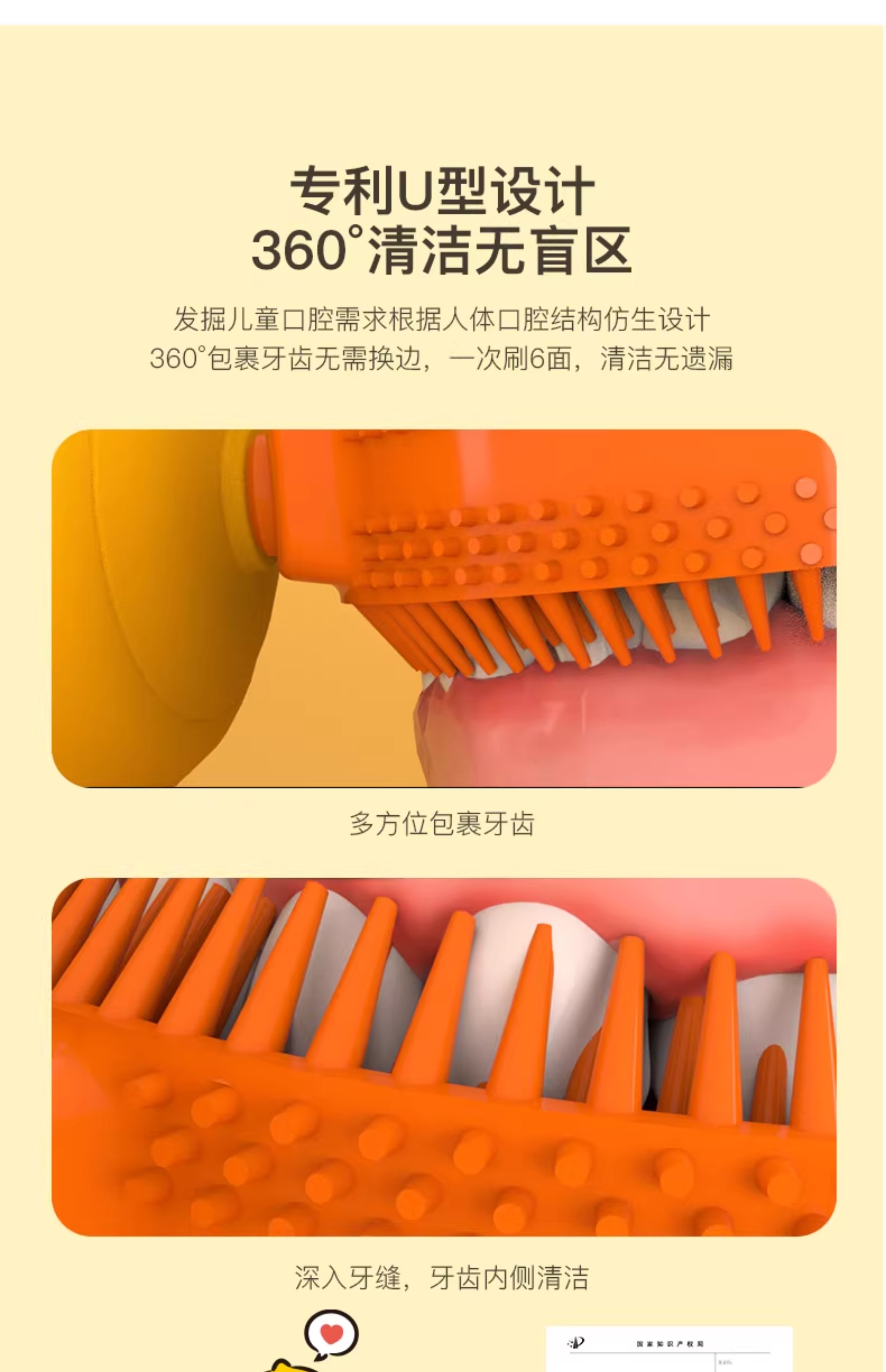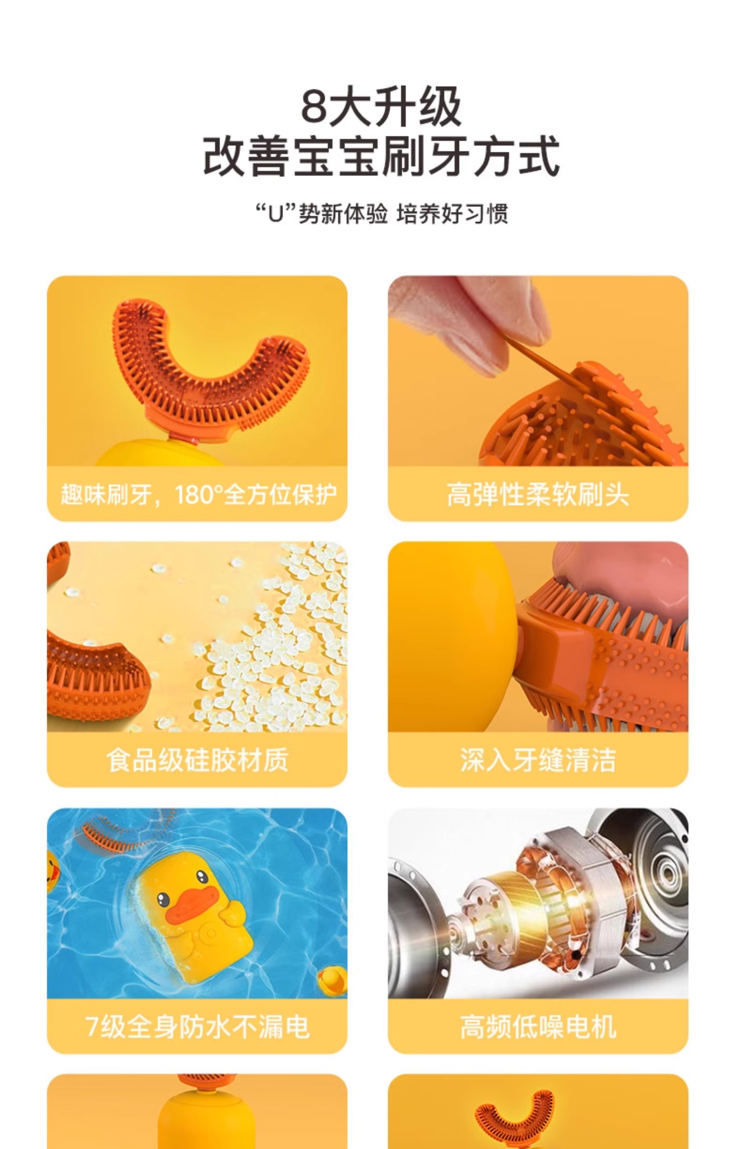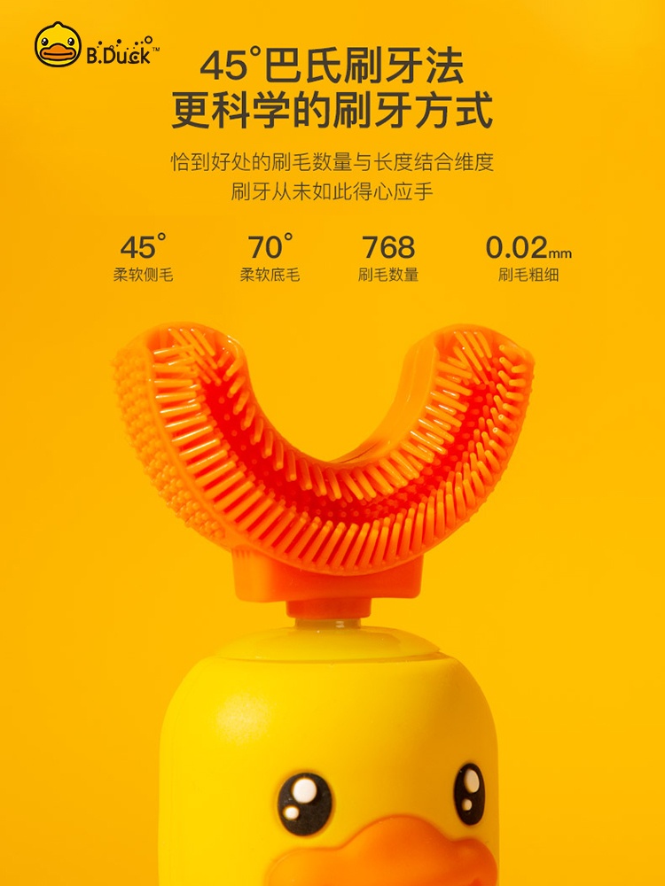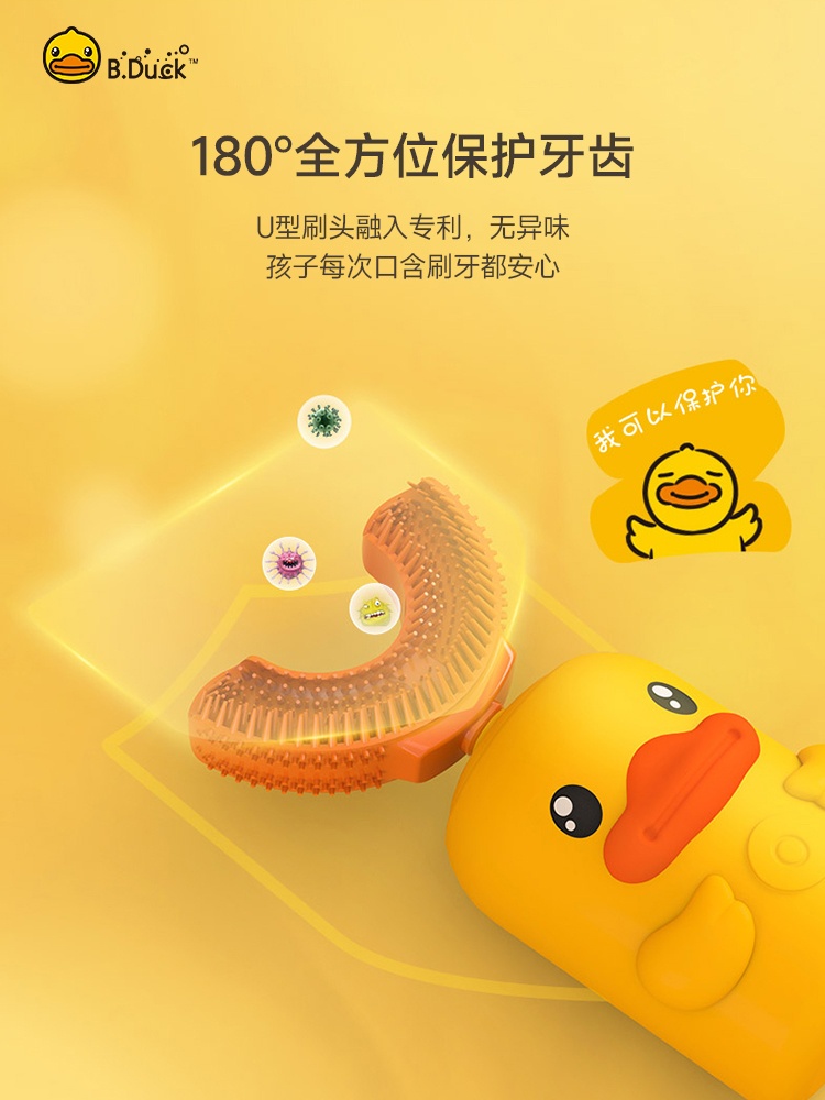 B.duck小黄鸭 儿童电动牙刷 专利U型刷头 IPX7级防水