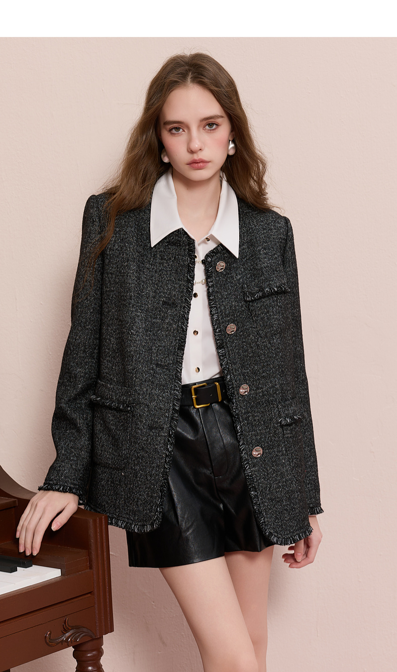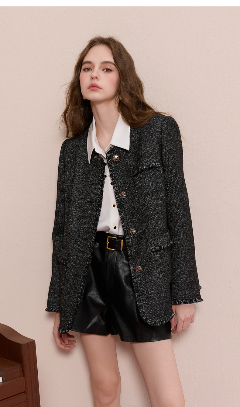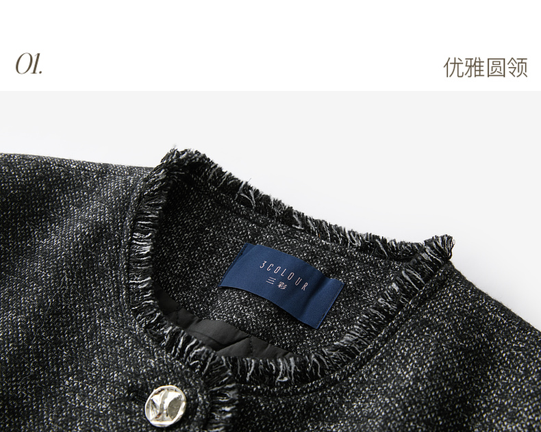 三彩2025冬季新款香风呢大衣绗棉中长单面呢外套优雅M