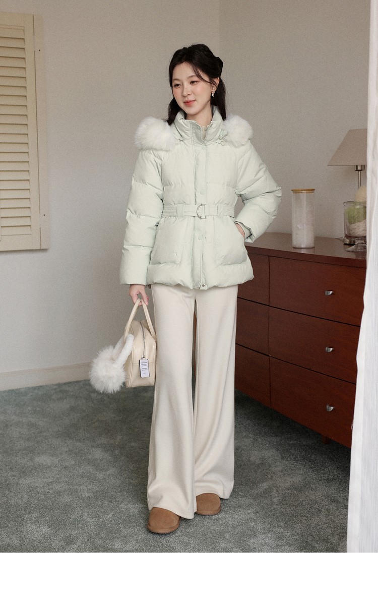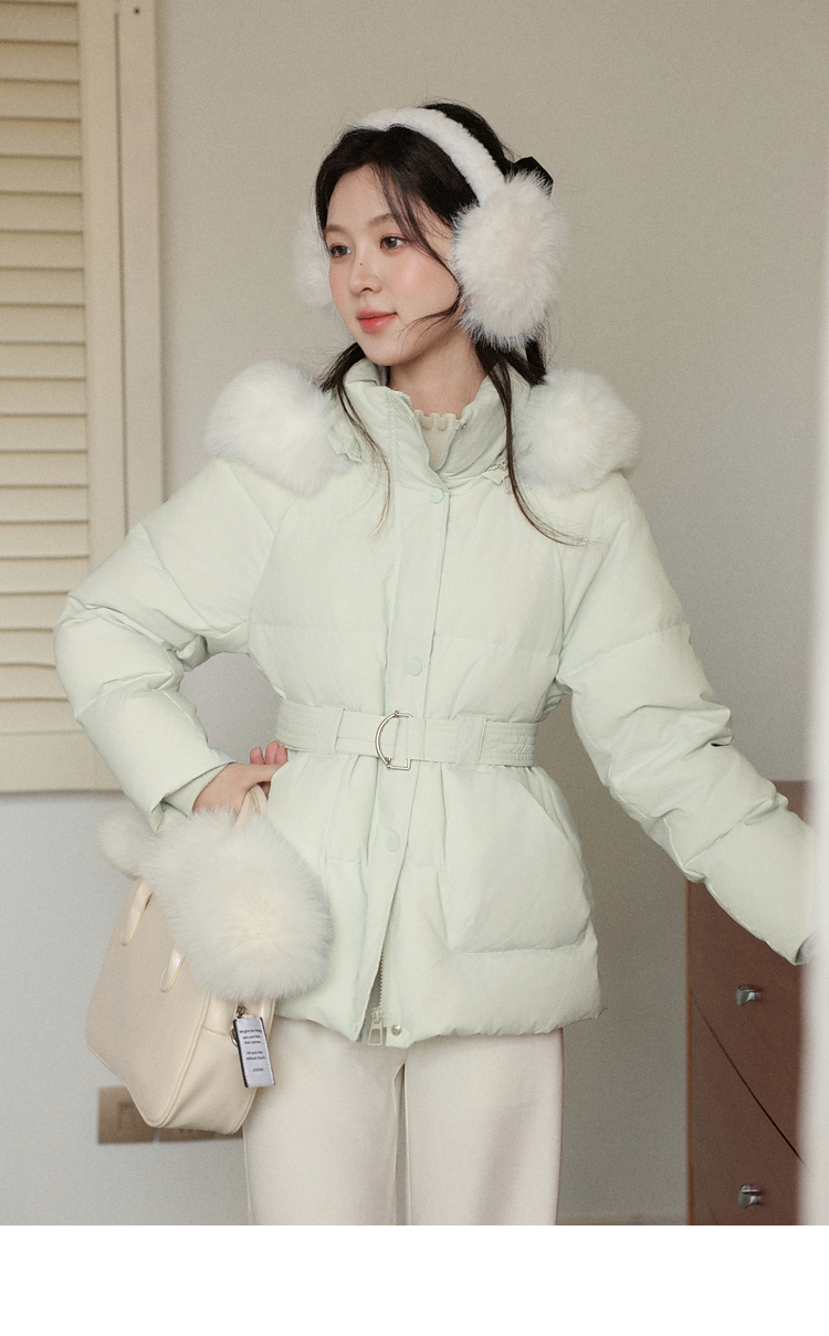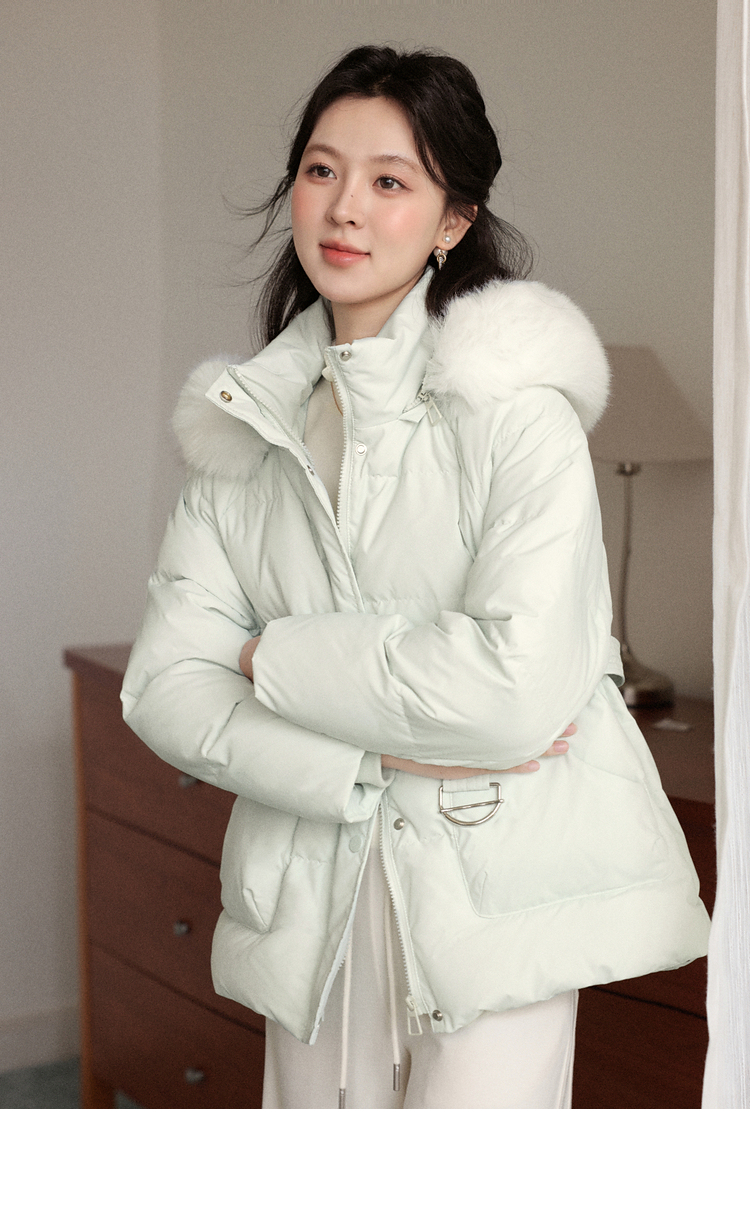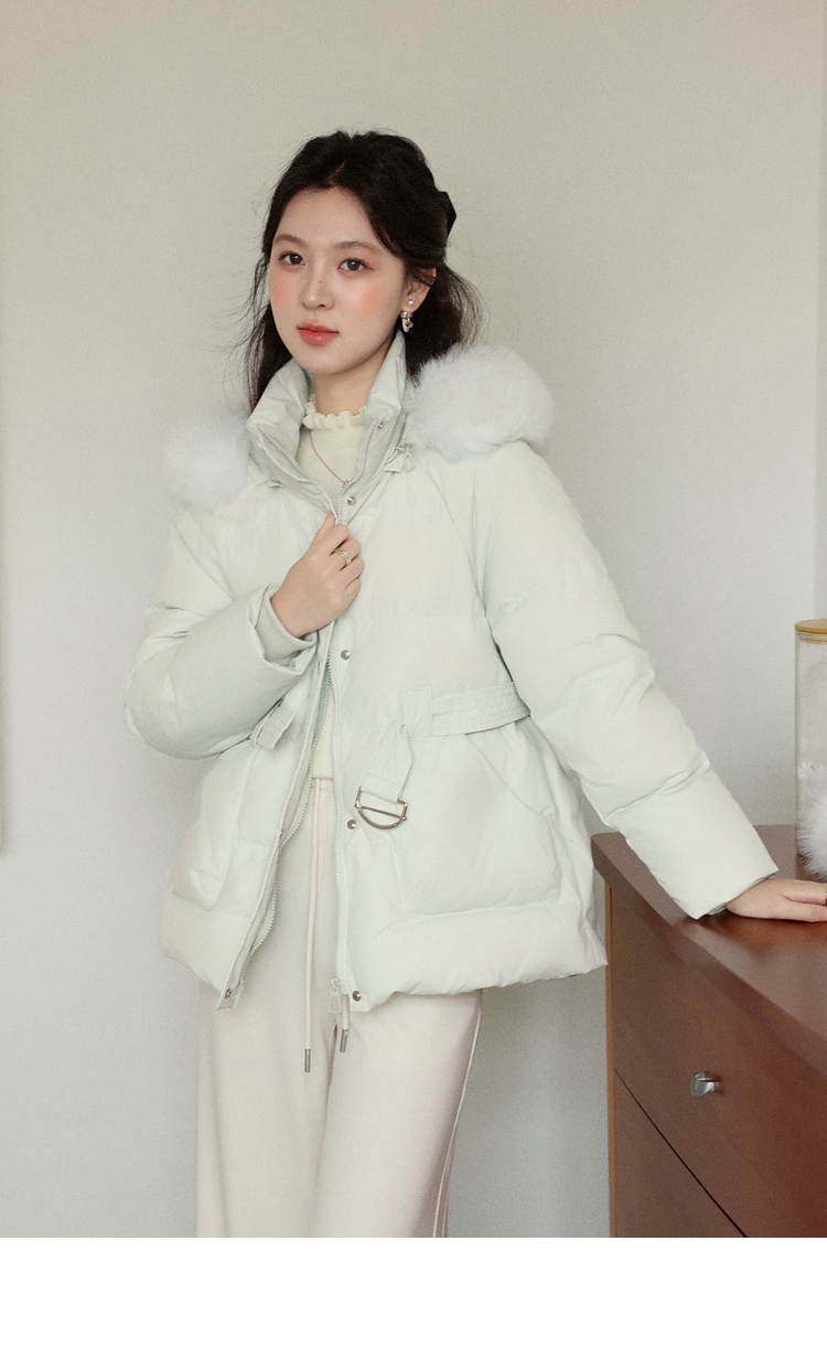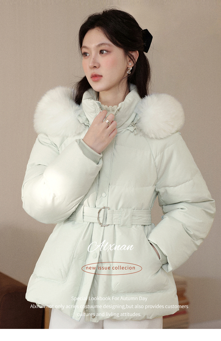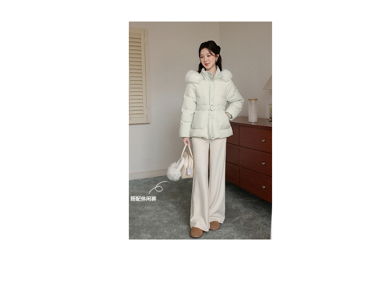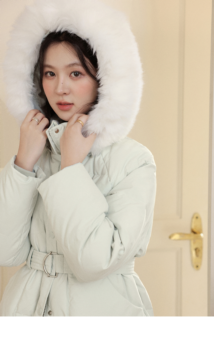 鹿向南「多伦多情书」绿色鸭绒中长款羽绒服冬季加厚小清新外套女