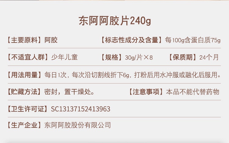东阿阿胶红标阿胶片240g