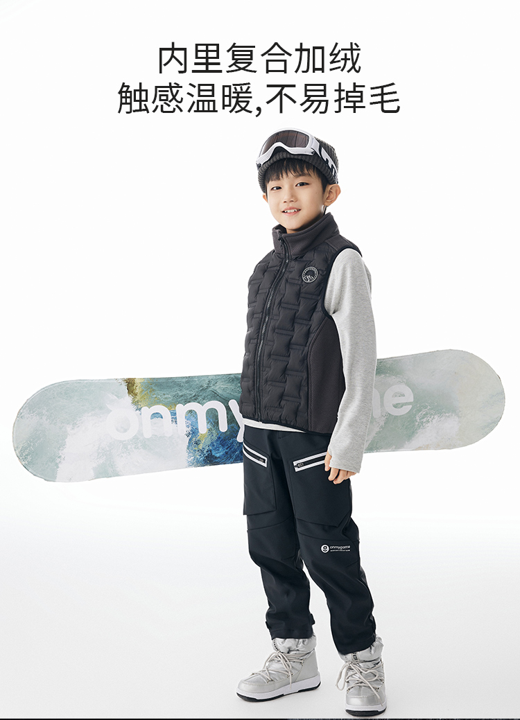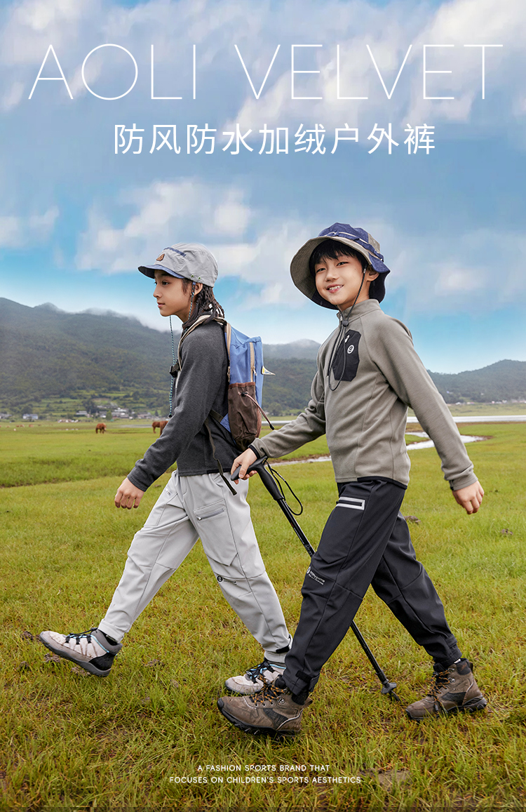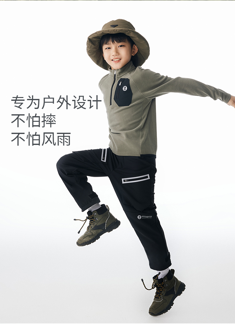 onmygame男童加绒运动裤秋冬装儿童户外三防耐磨长裤加厚保暖裤子