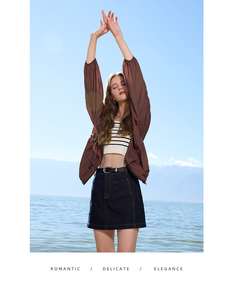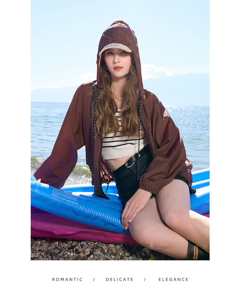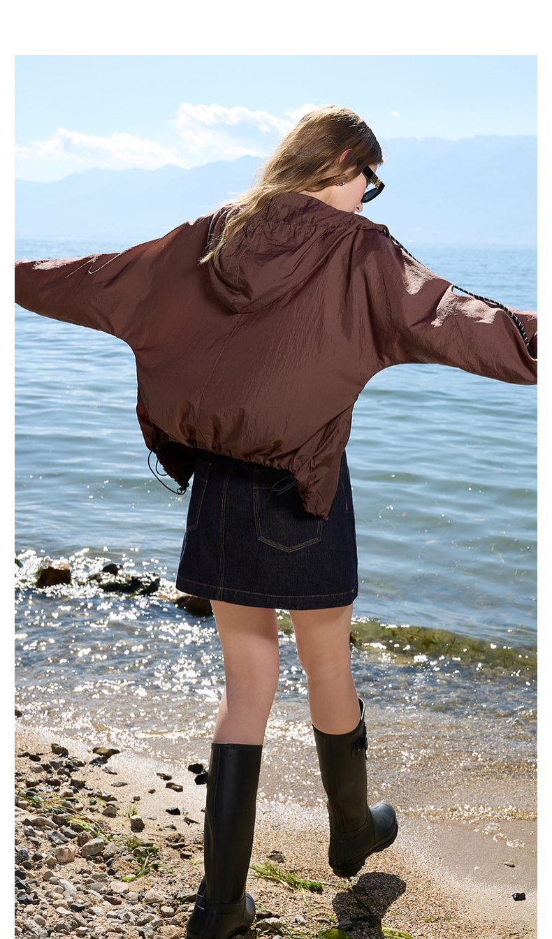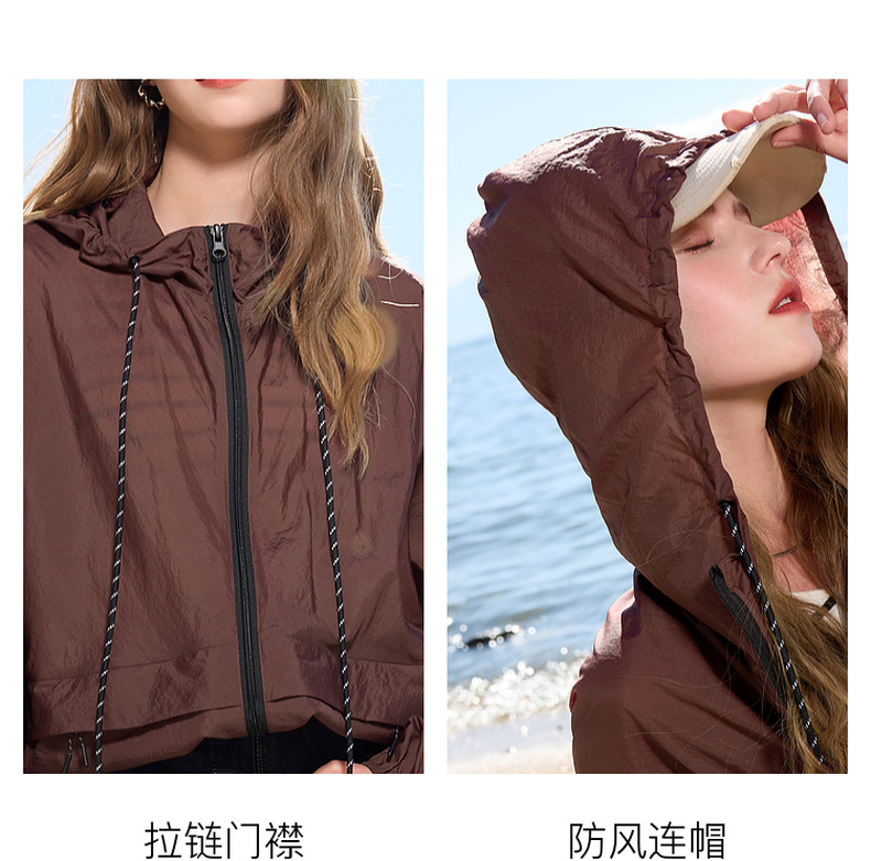 三彩2025春季新款宽松撞色抽绳连帽防晒衫休闲外套轻薄防紫外线M