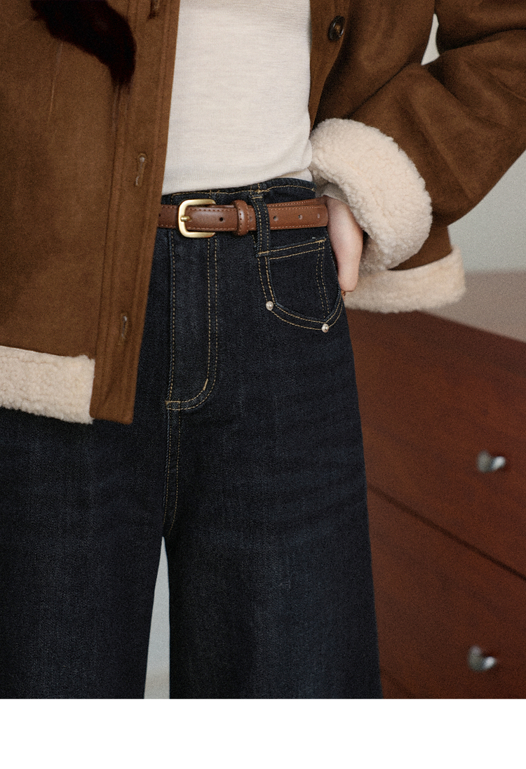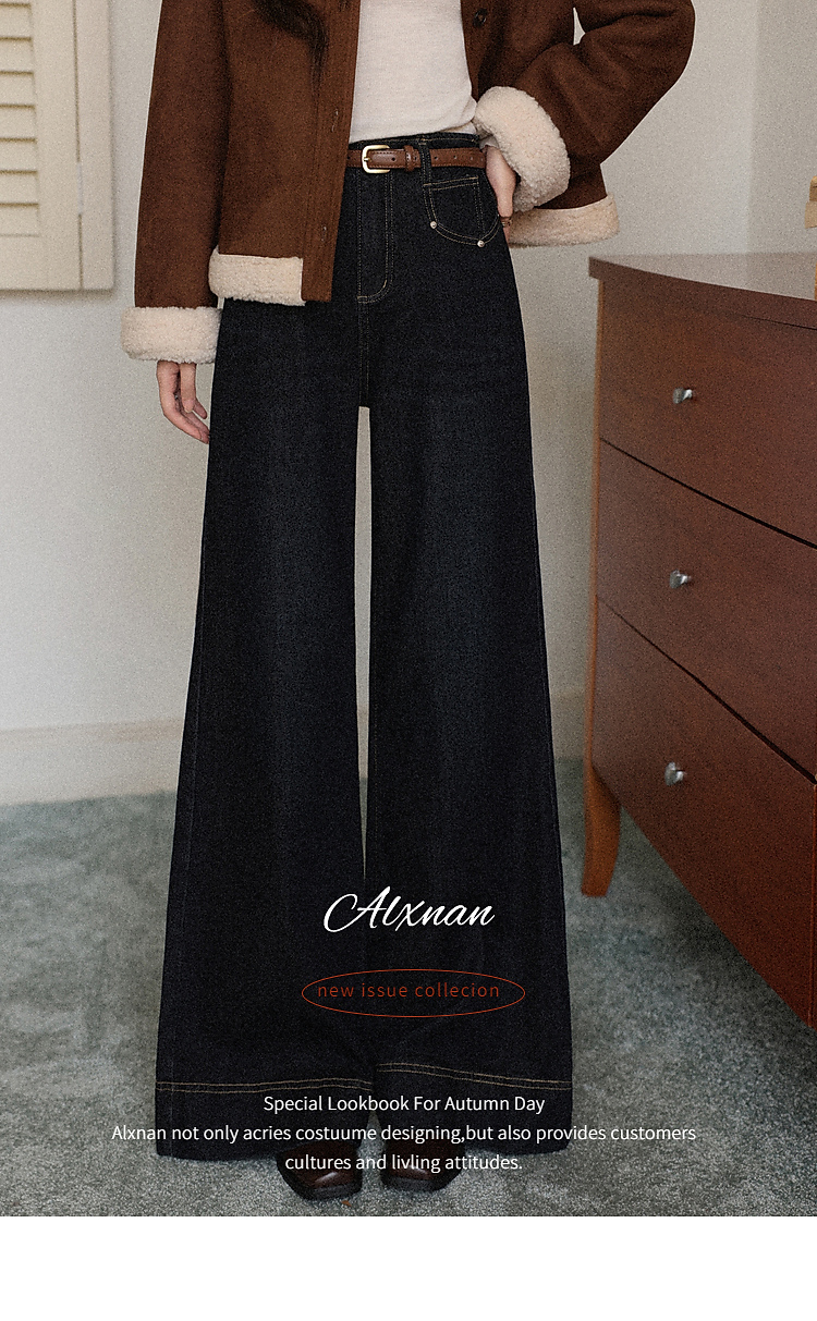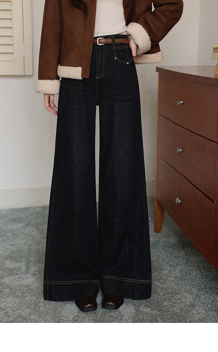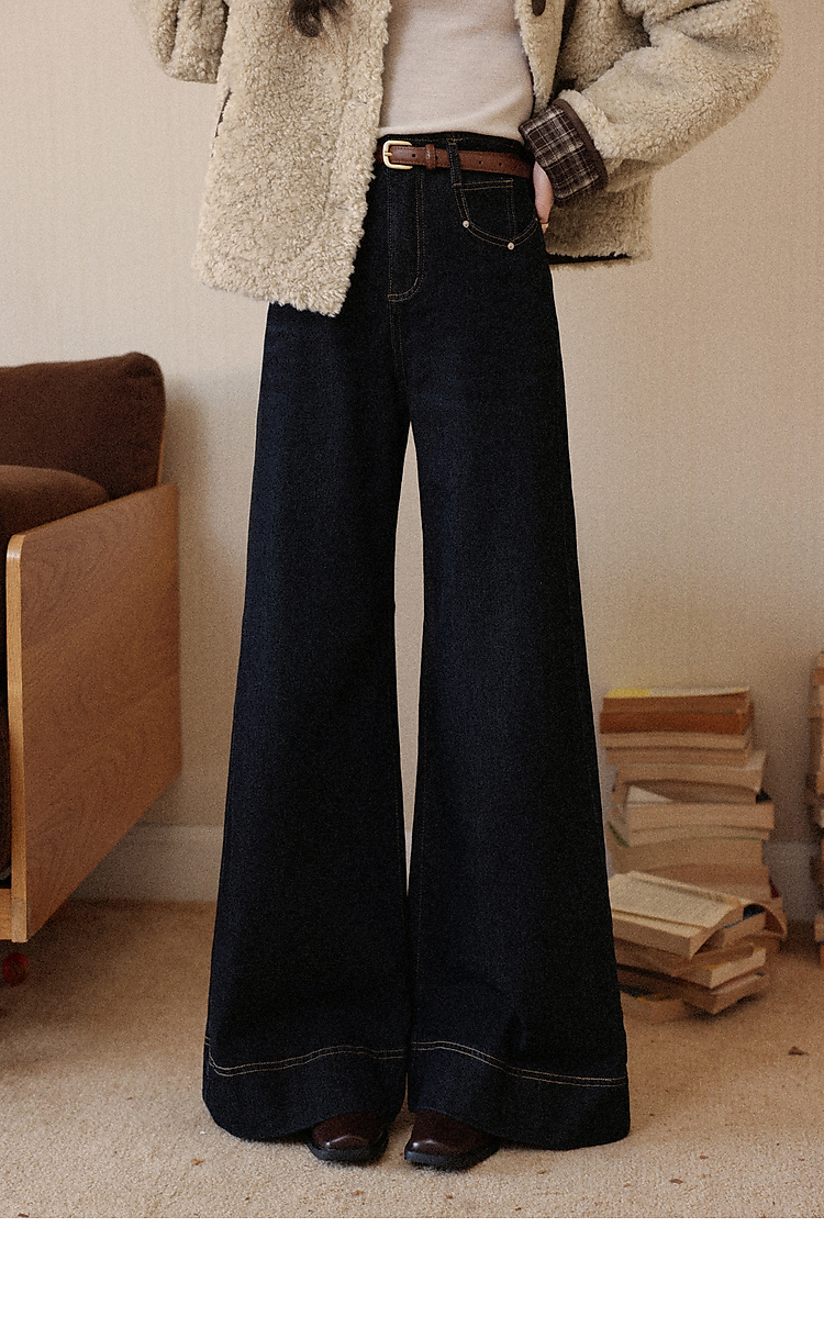鹿向南「长腿搭子」复古深蓝色宽松阔腿牛仔裤女秋冬新款显瘦长裤