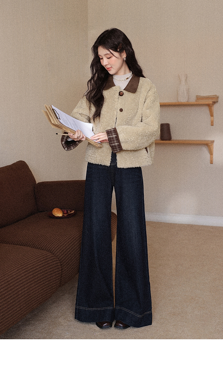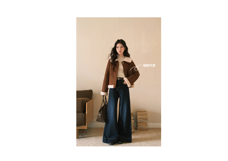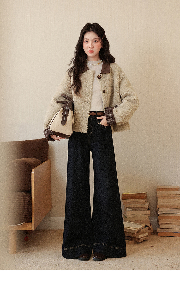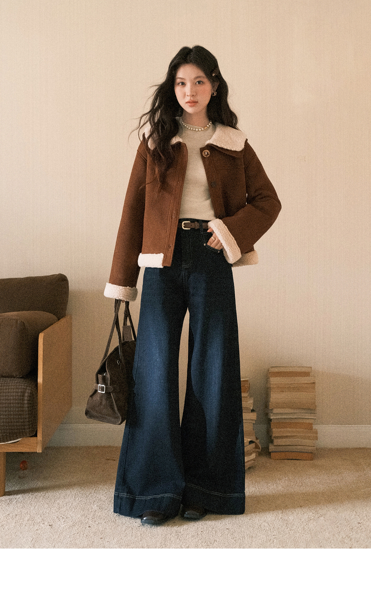 鹿向南「长腿搭子」复古深蓝色宽松阔腿牛仔裤女秋冬新款显瘦长裤