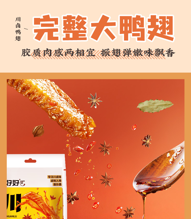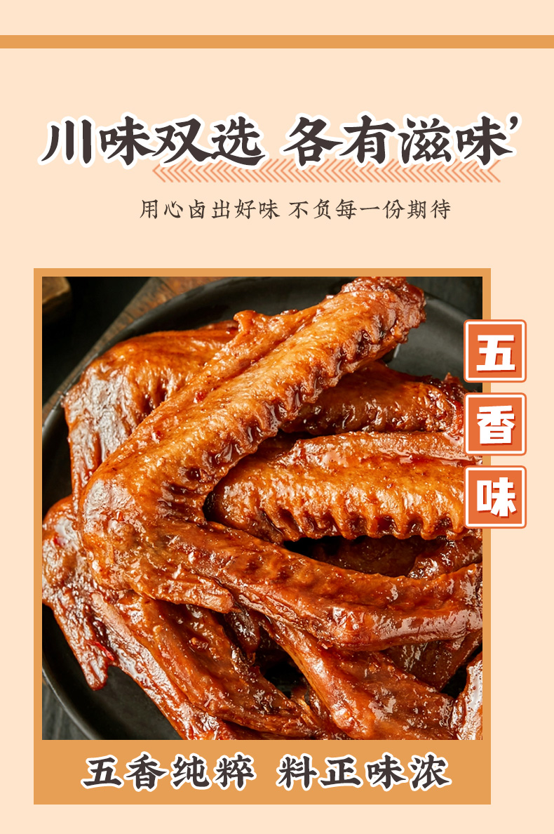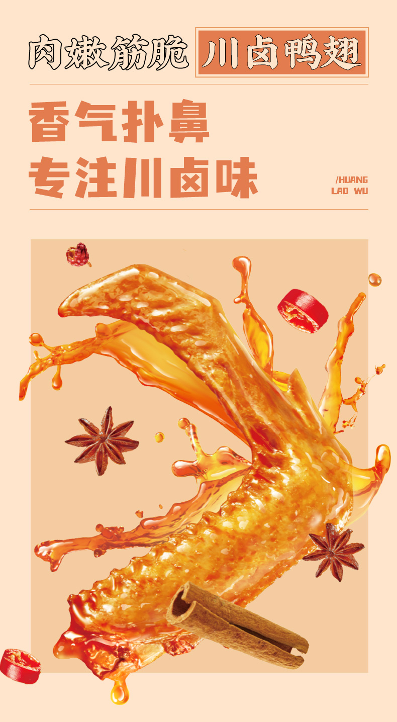 F黄老五鸭翅根105g袋装,网红卤味麻辣五香鸭肉零食追剧出游独立包装