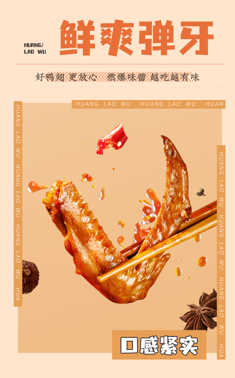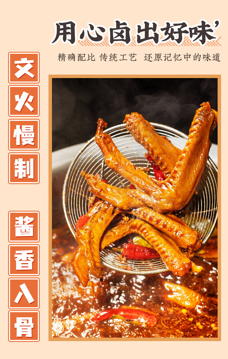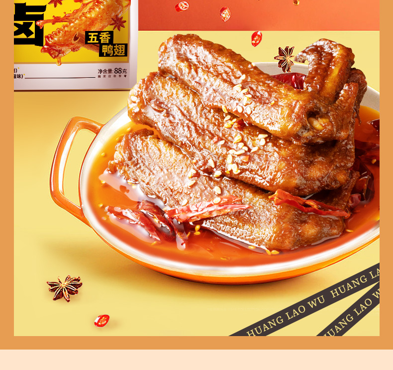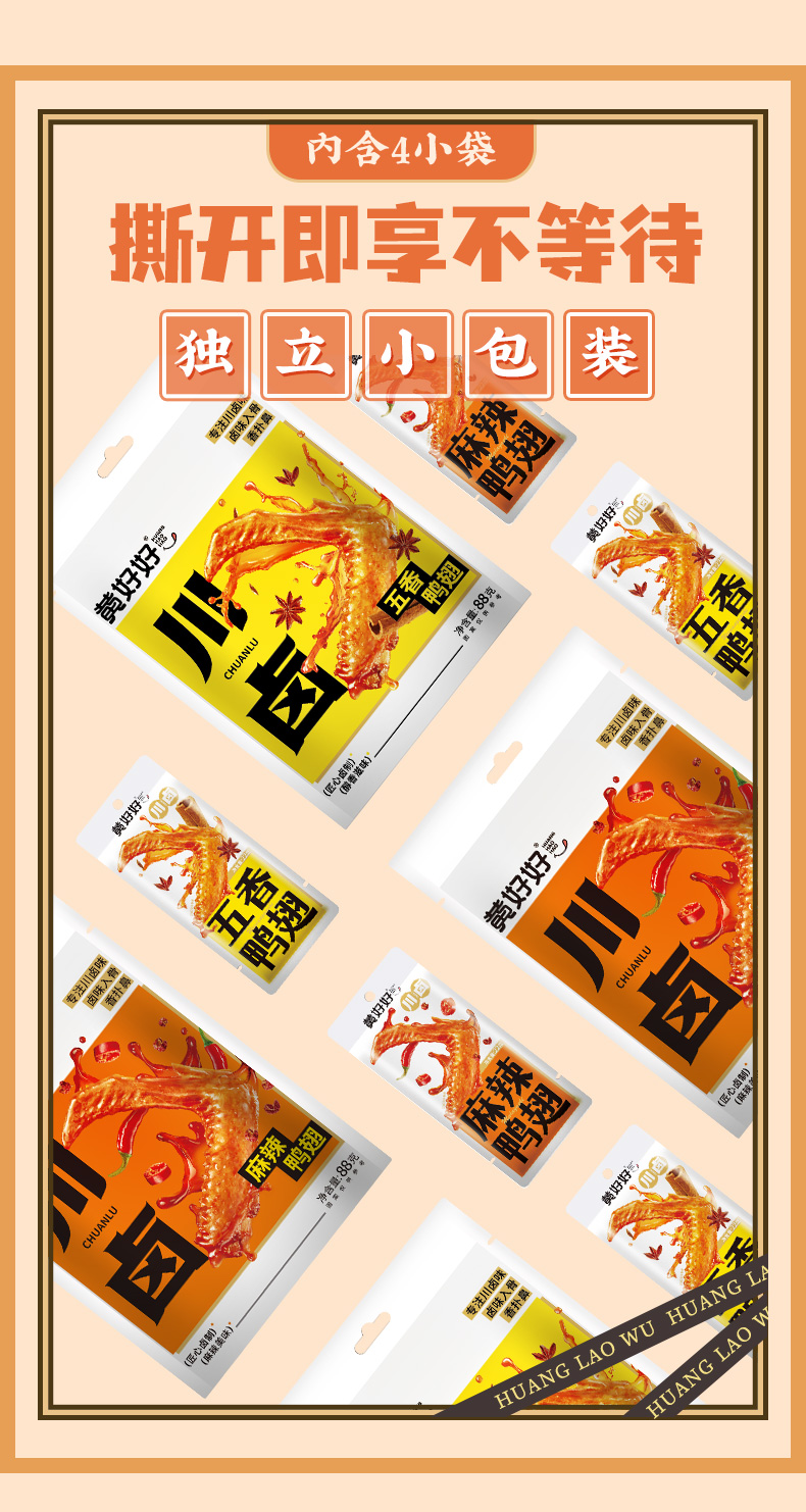 F黄老五鸭翅根105g袋装,网红卤味麻辣五香鸭肉零食追剧出游独立包装