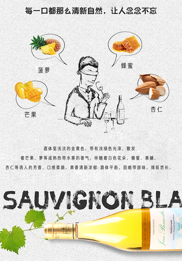 【6支装】海关罚没 2015 法国尚博龙 地中海白葡萄酒750ml