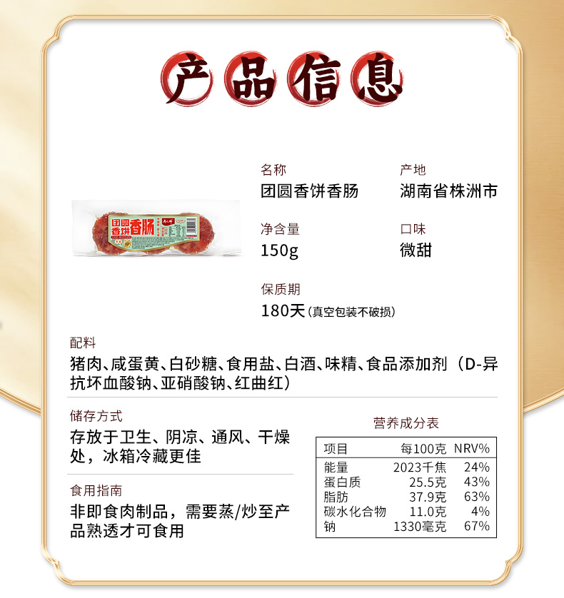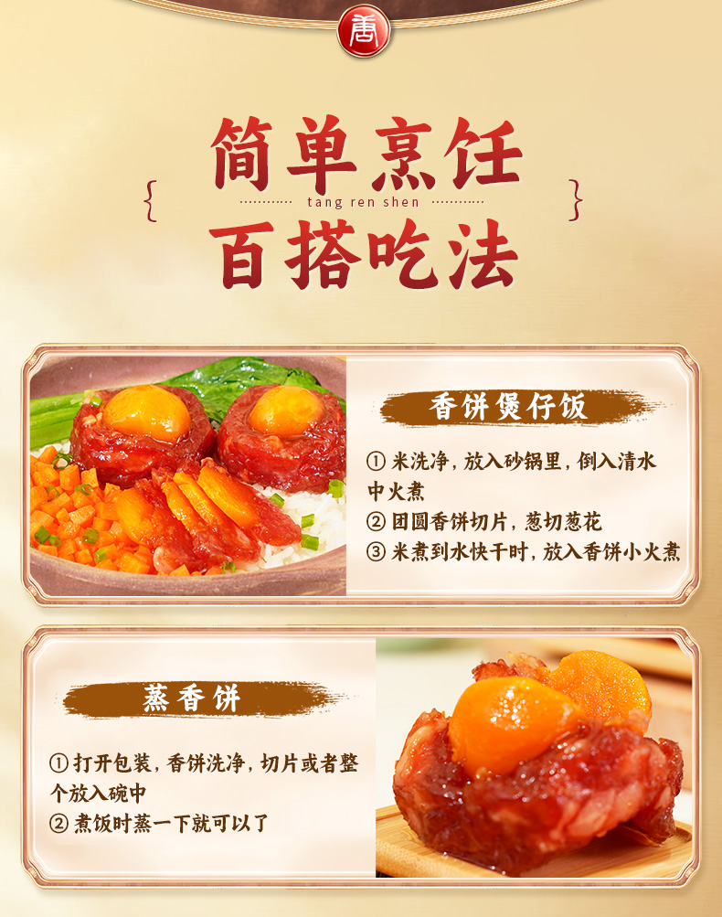 唐人神 团圆香饼150g*3广式微甜腊肠咸蛋黄凤凰盏