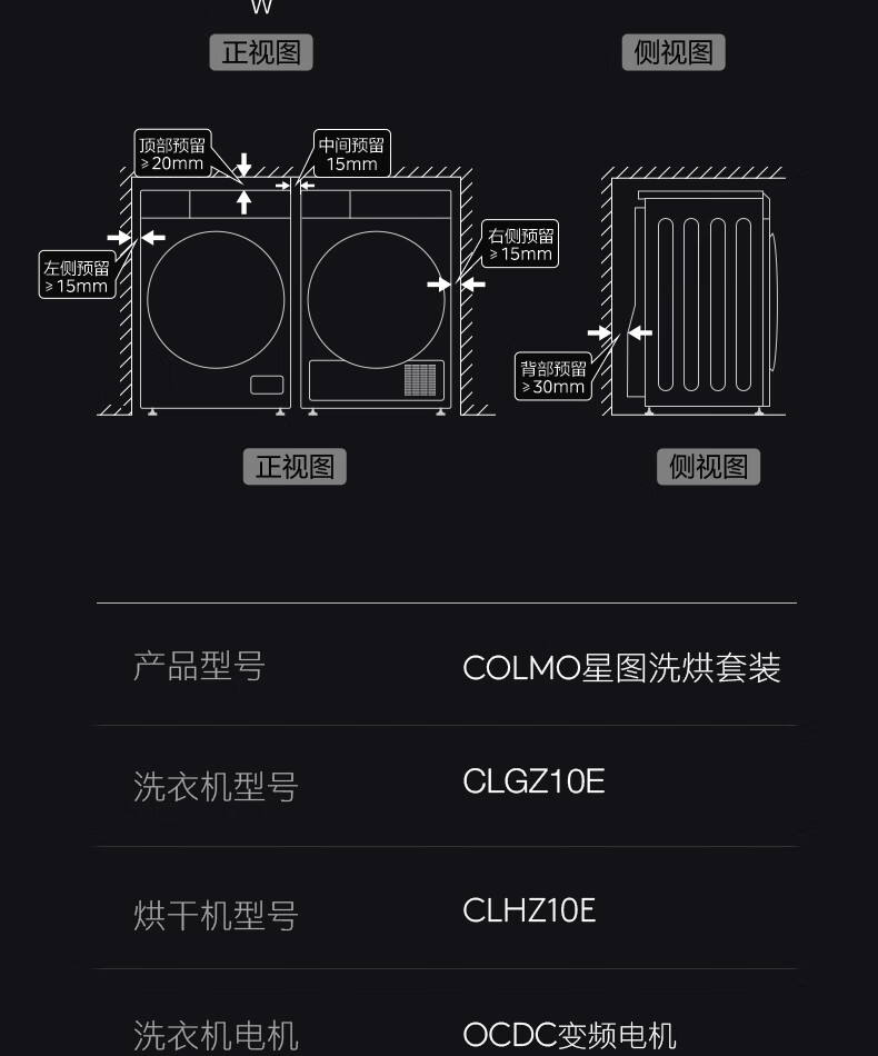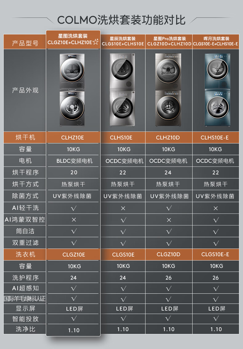 COLMO 【星图洗烘套装】家用滚筒洗衣机+热泵烘干机 10公斤大容量 AI轻干洗 洗烘双除菌 CLGZ10E-CLHZ10E