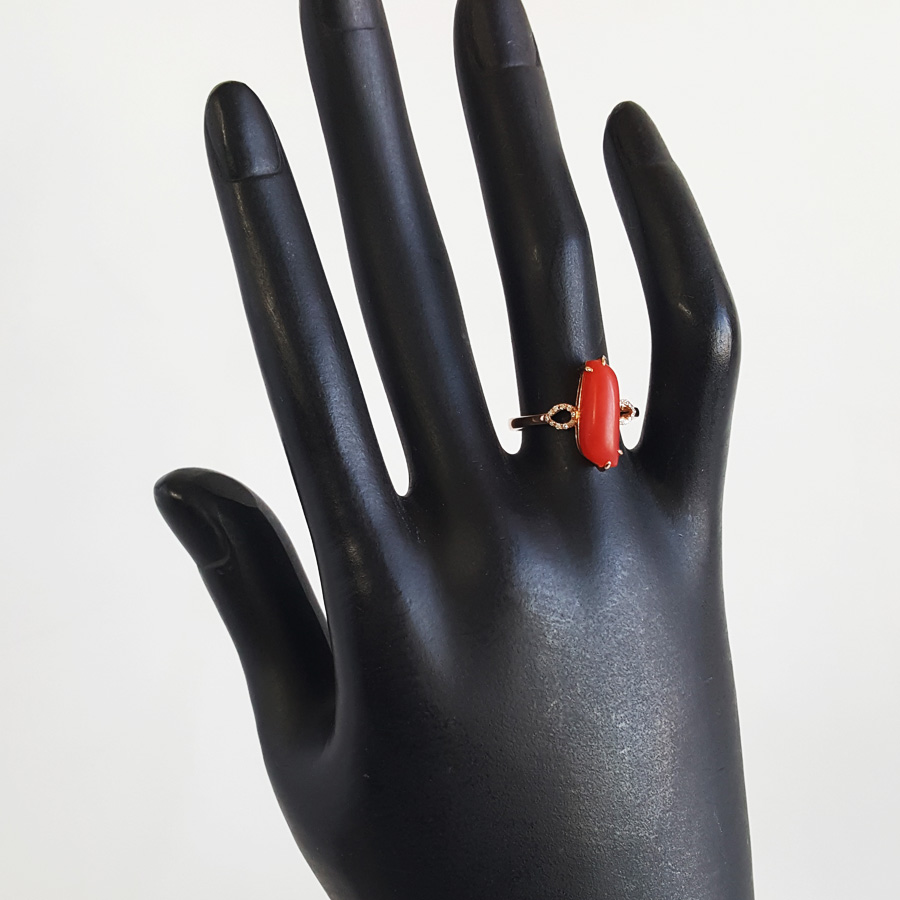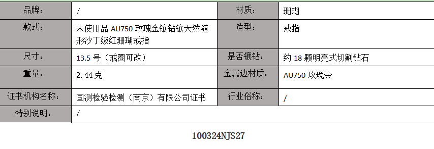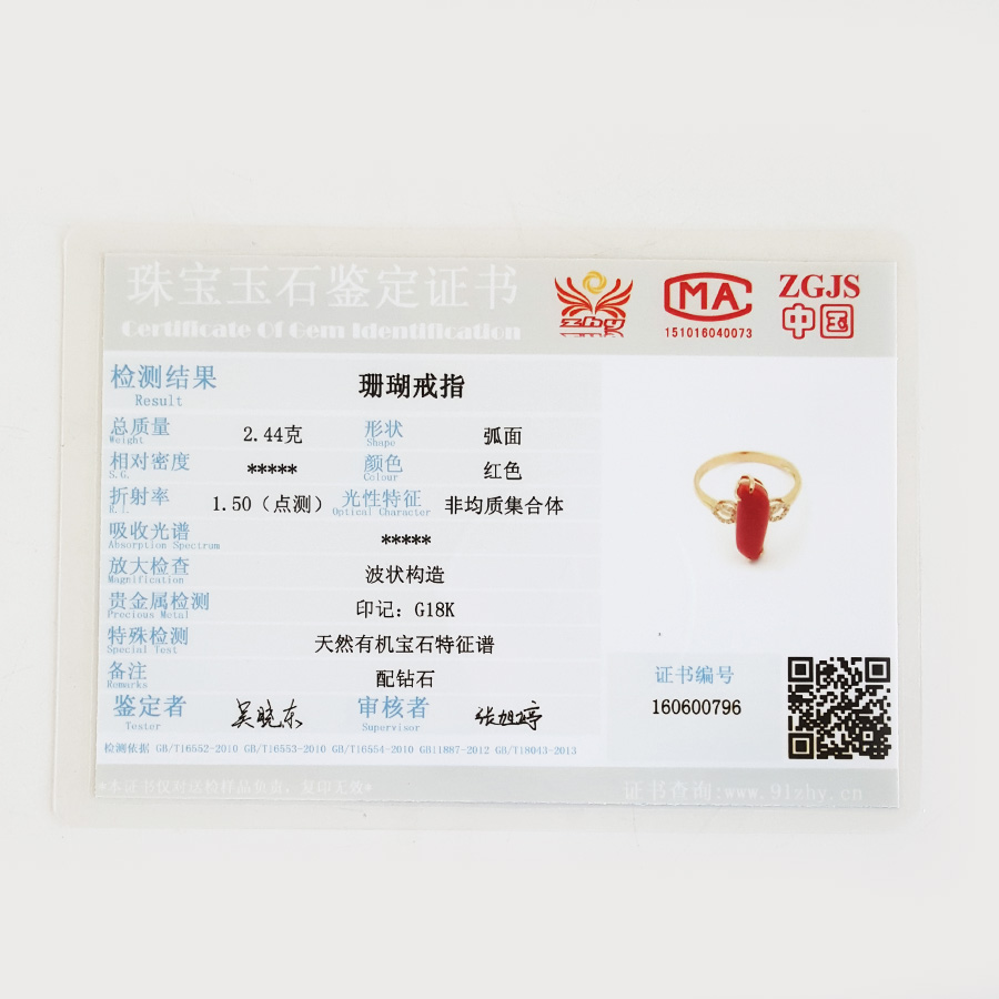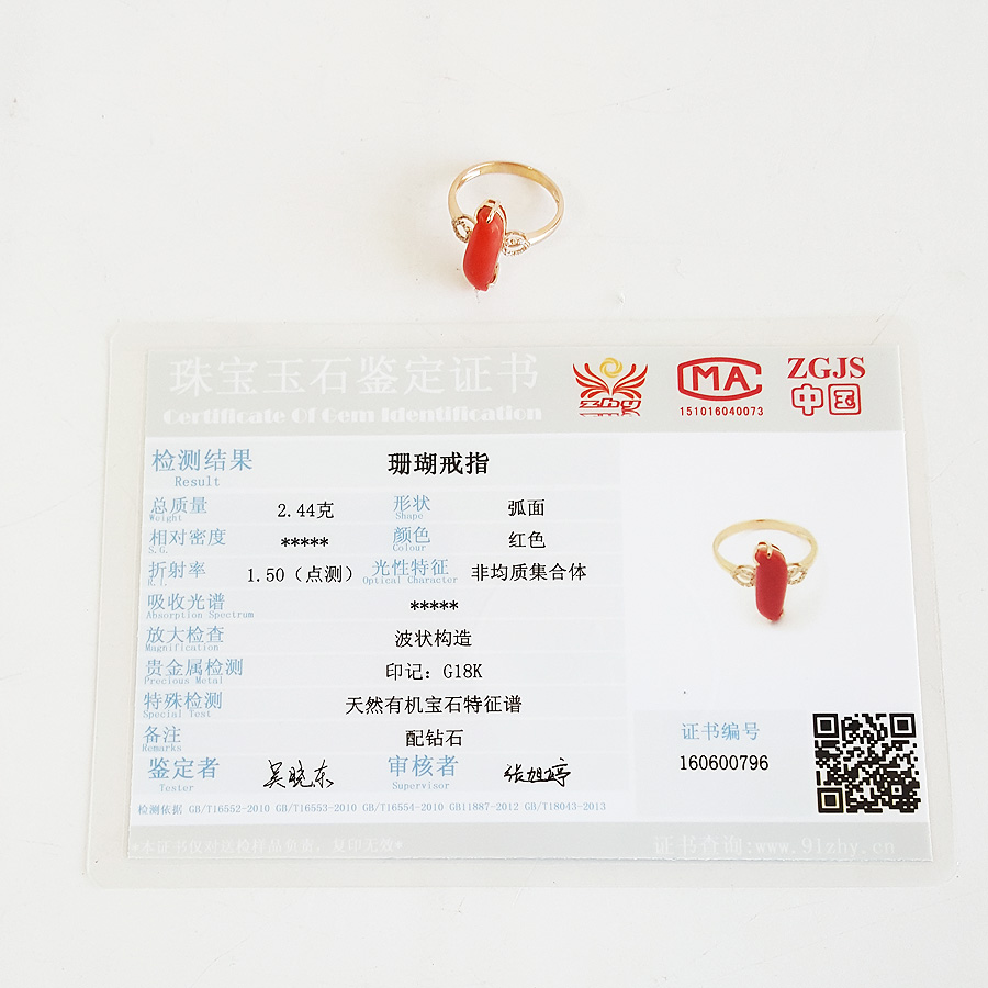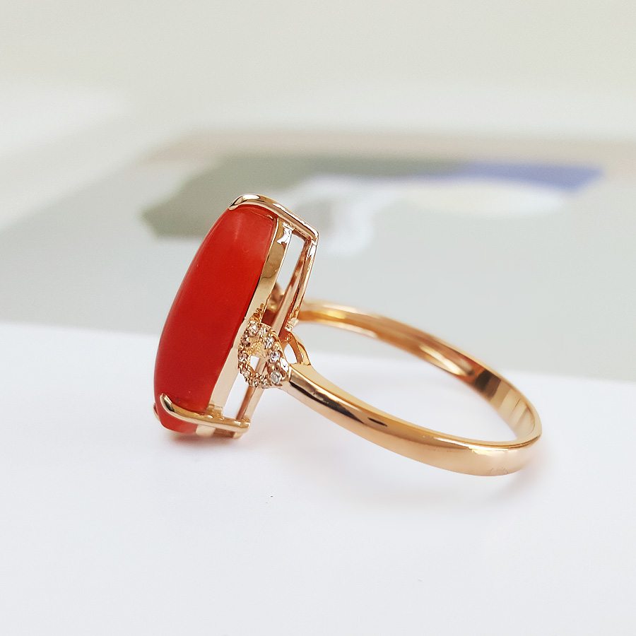 【天然正品】天然随形沙丁级红珊珊AU750玫瑰金镶钻戒指13.5号(戒圈可改)现售价:2480!100324NJS27