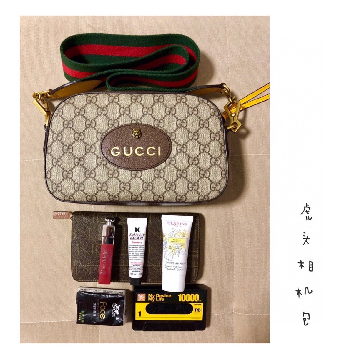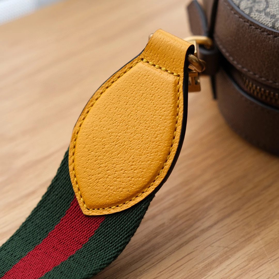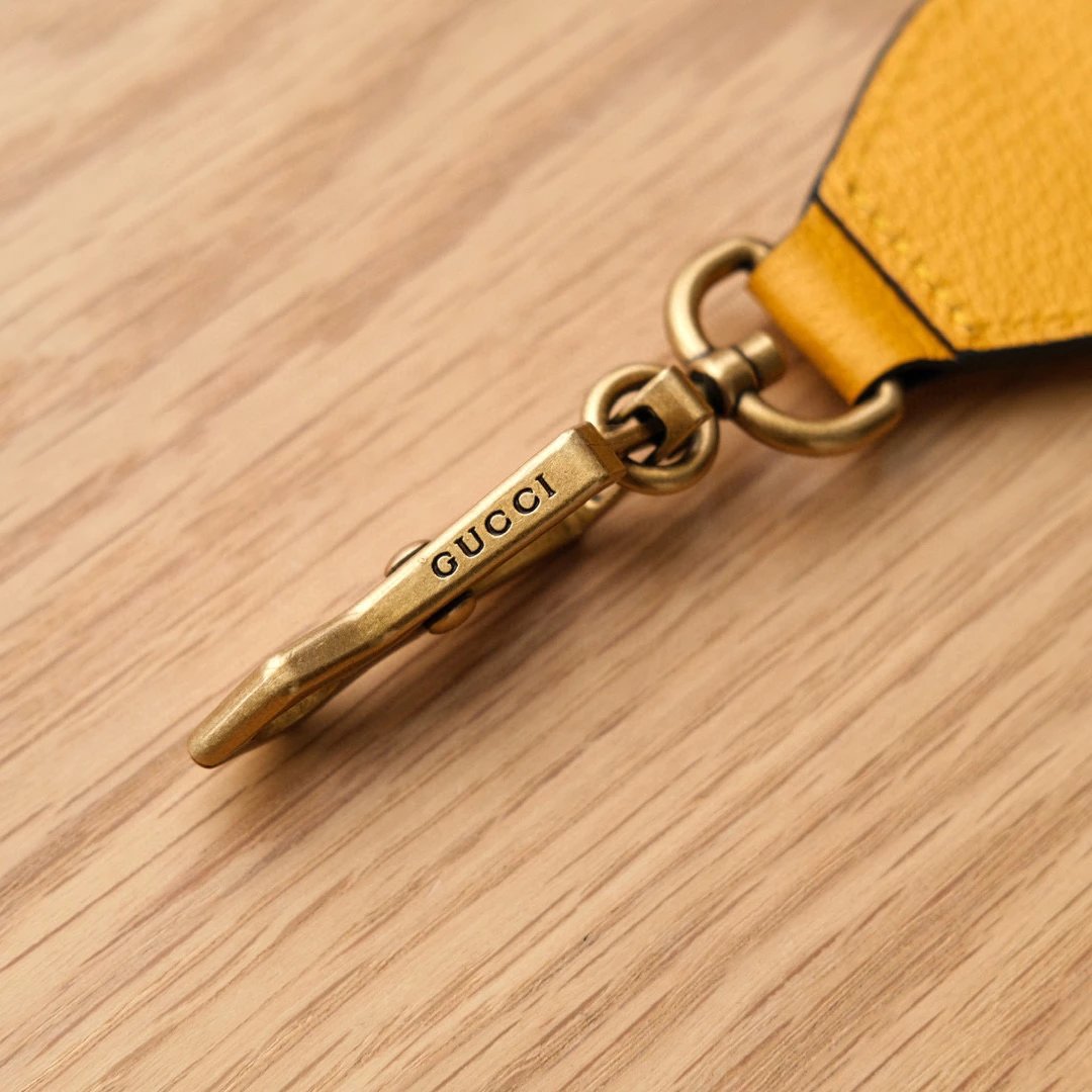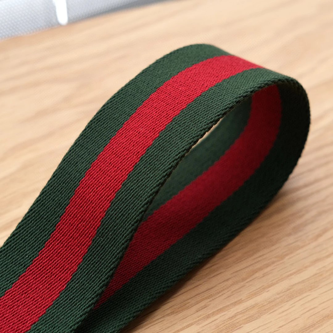标志性的三色彩色肩带以及古铜鱼嘴扣