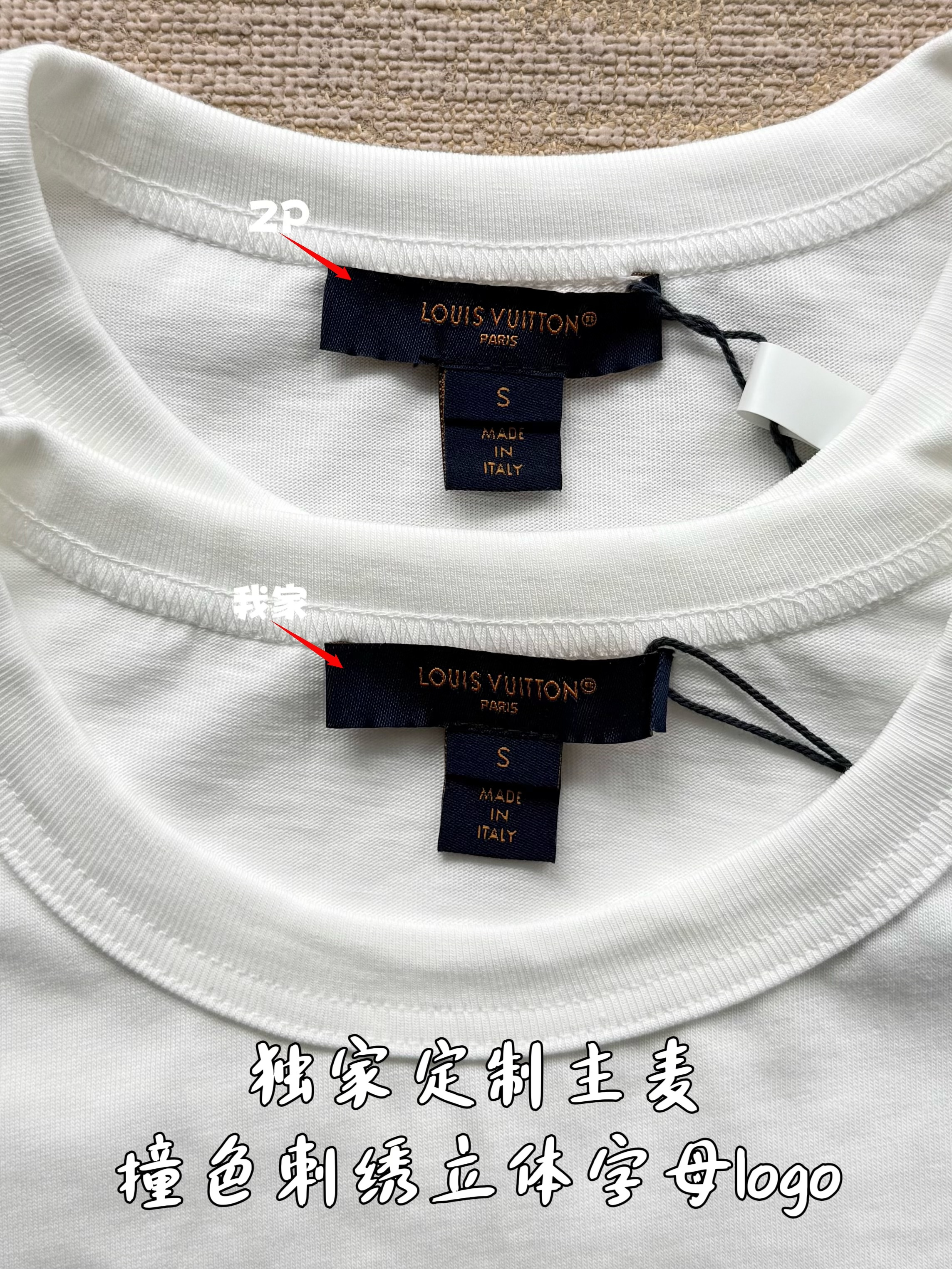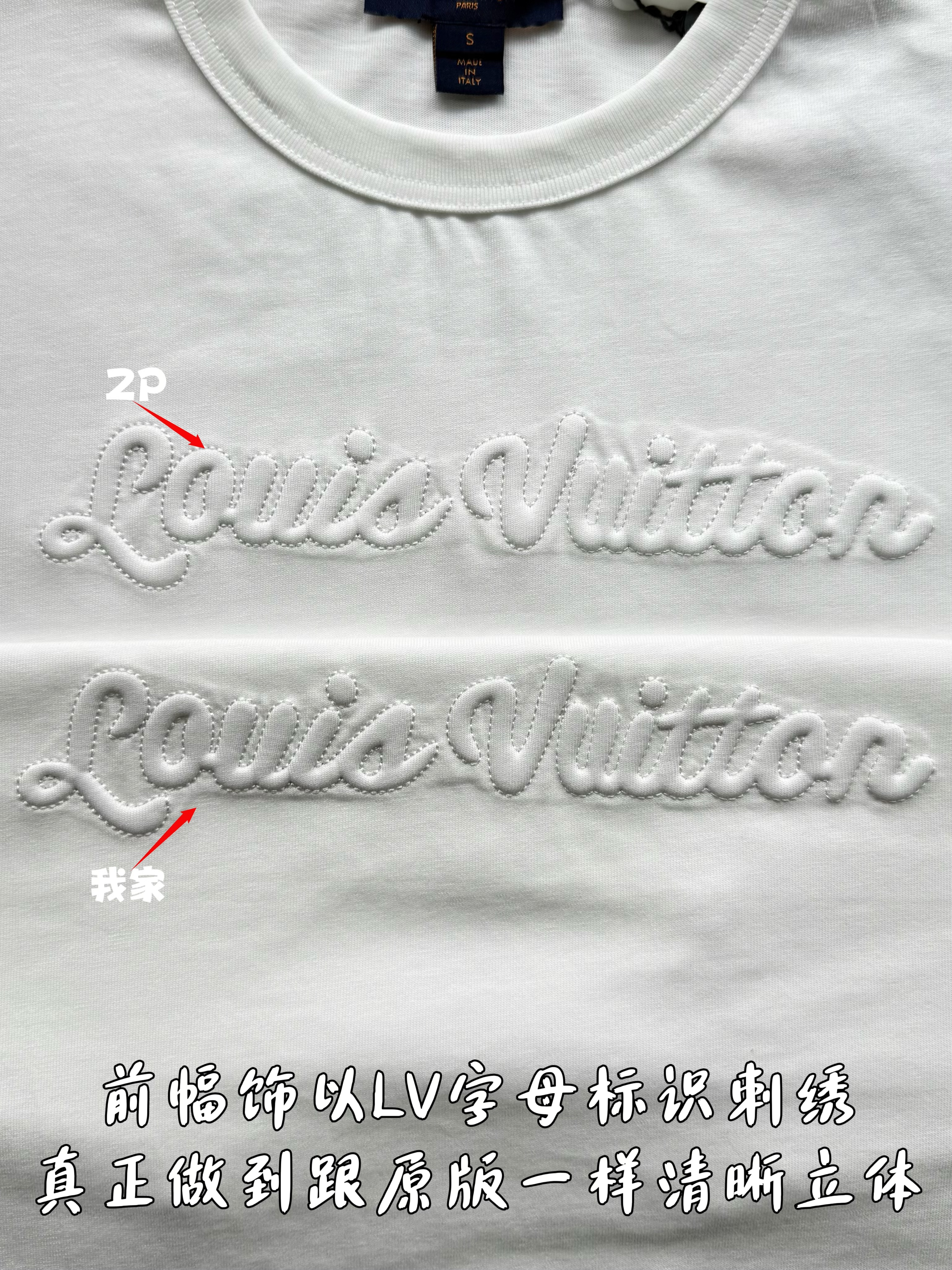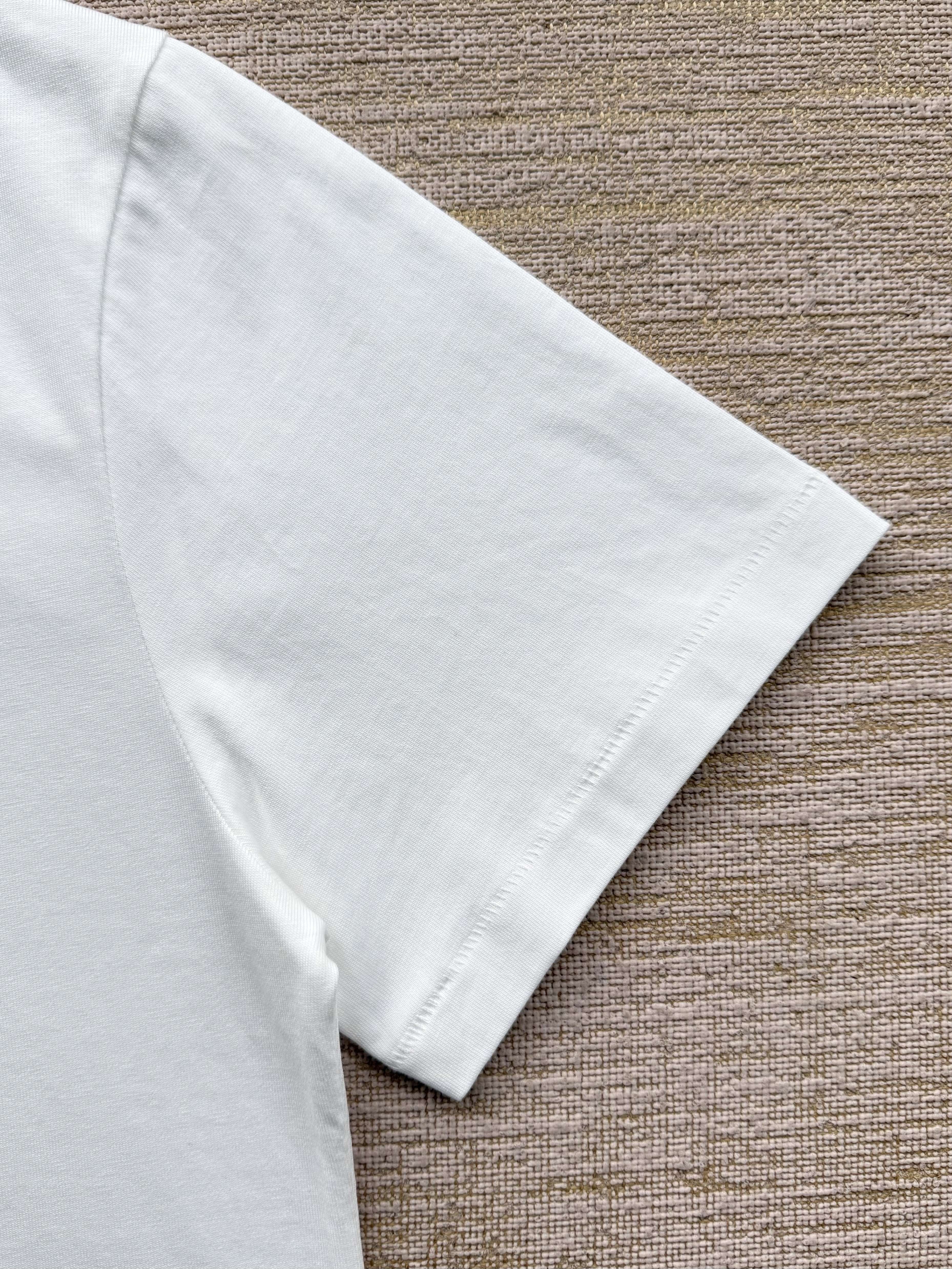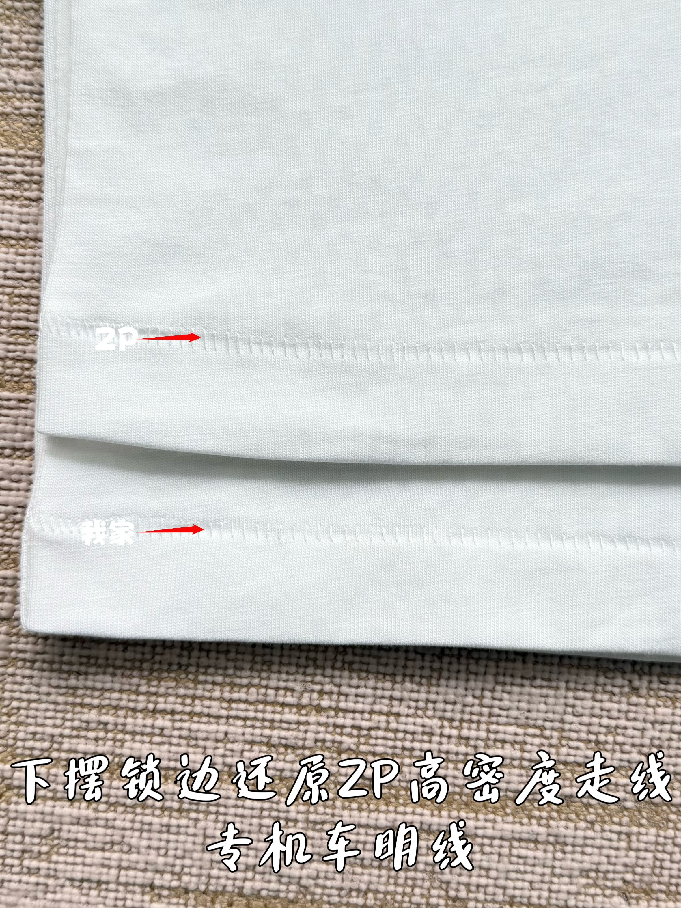 整件衣服7050购买ZP拆解打造,采用定制白色棉质平纹针织面料,做到100%全棉进口纱线,意大利制造,前幅饰以刺绣字母标识,定织标志性罗纹领口,超紧密度局部编织,袖口 下摆双层锁边高密度走线,真正做到1:1copy