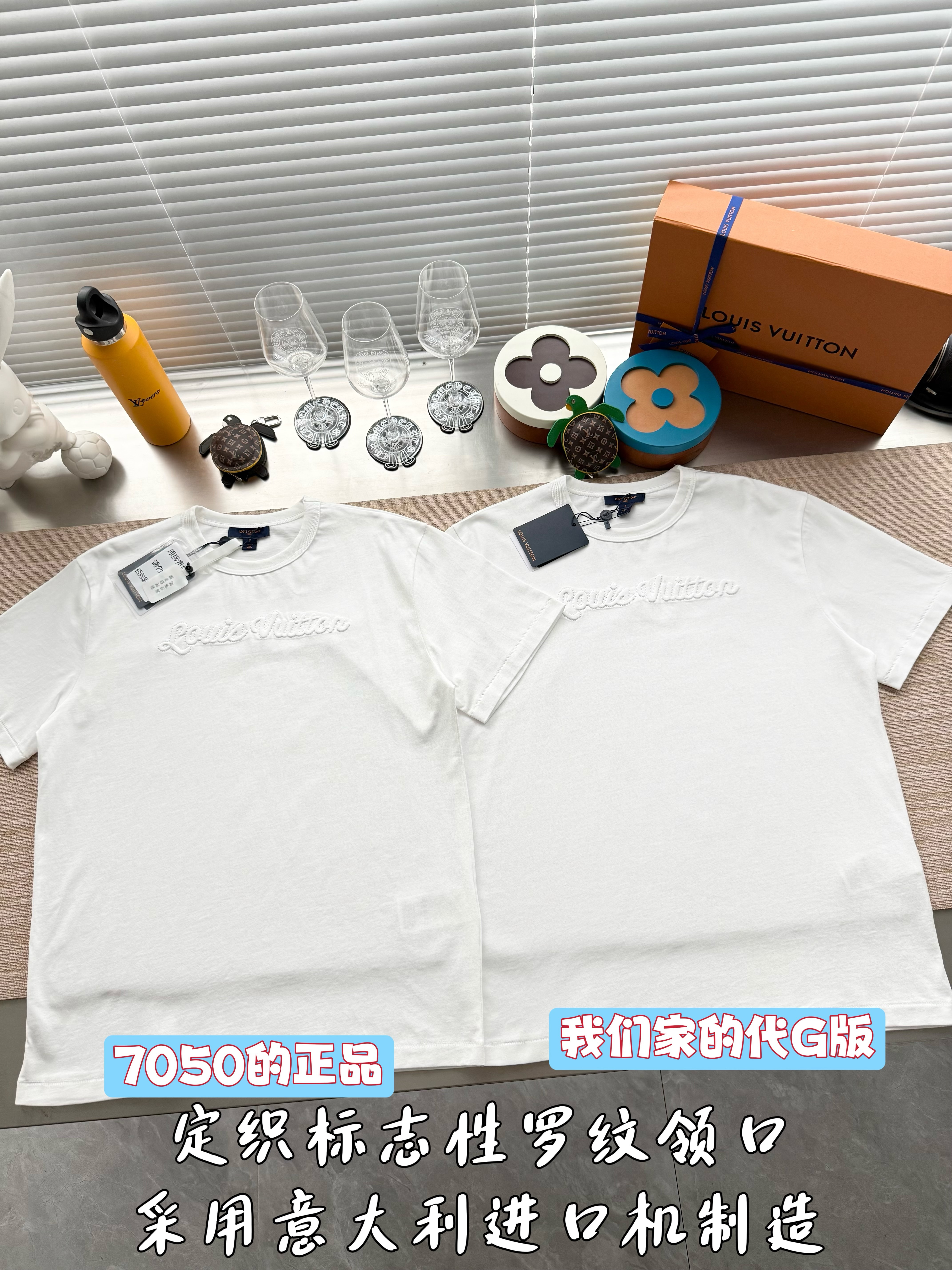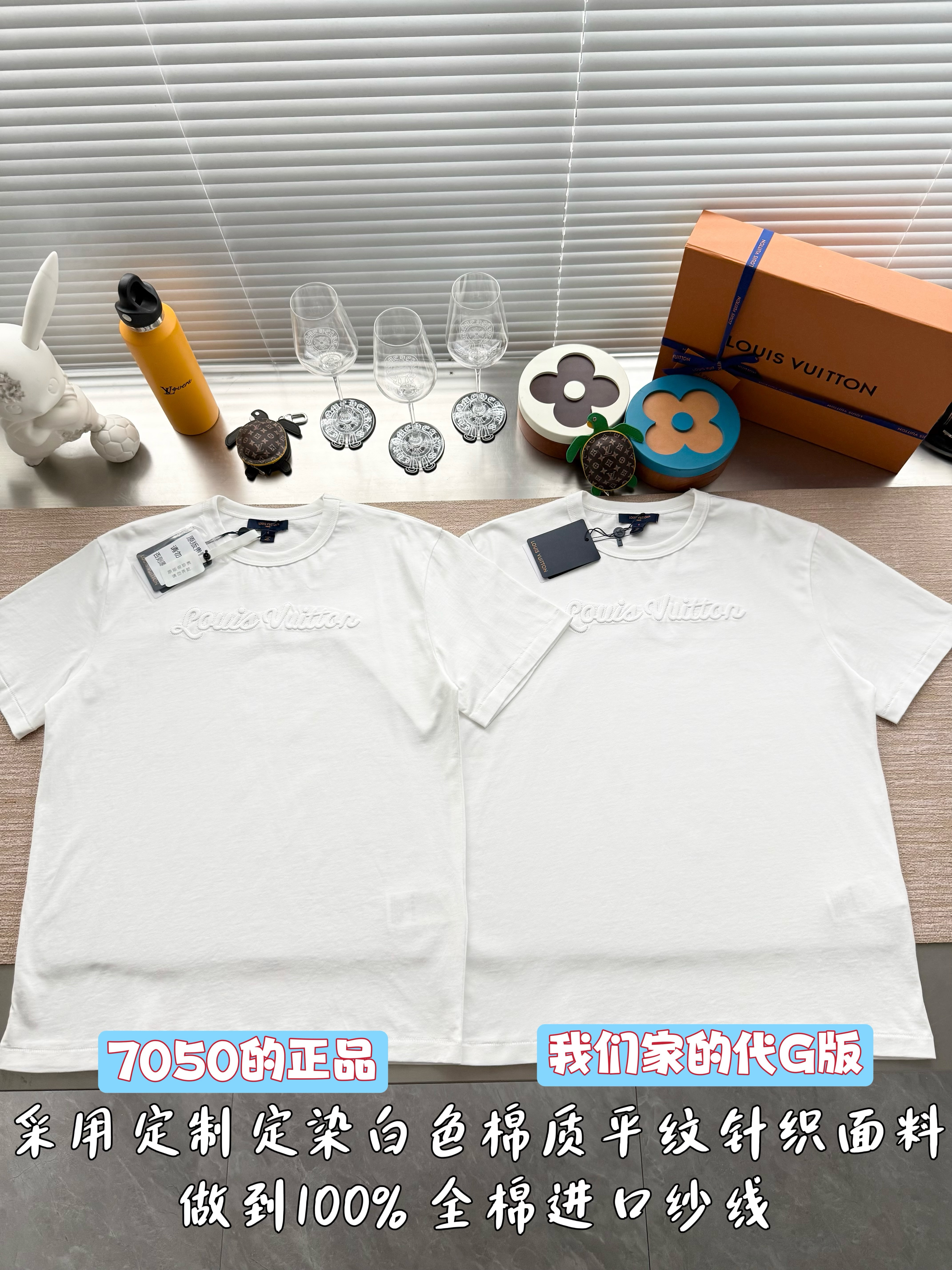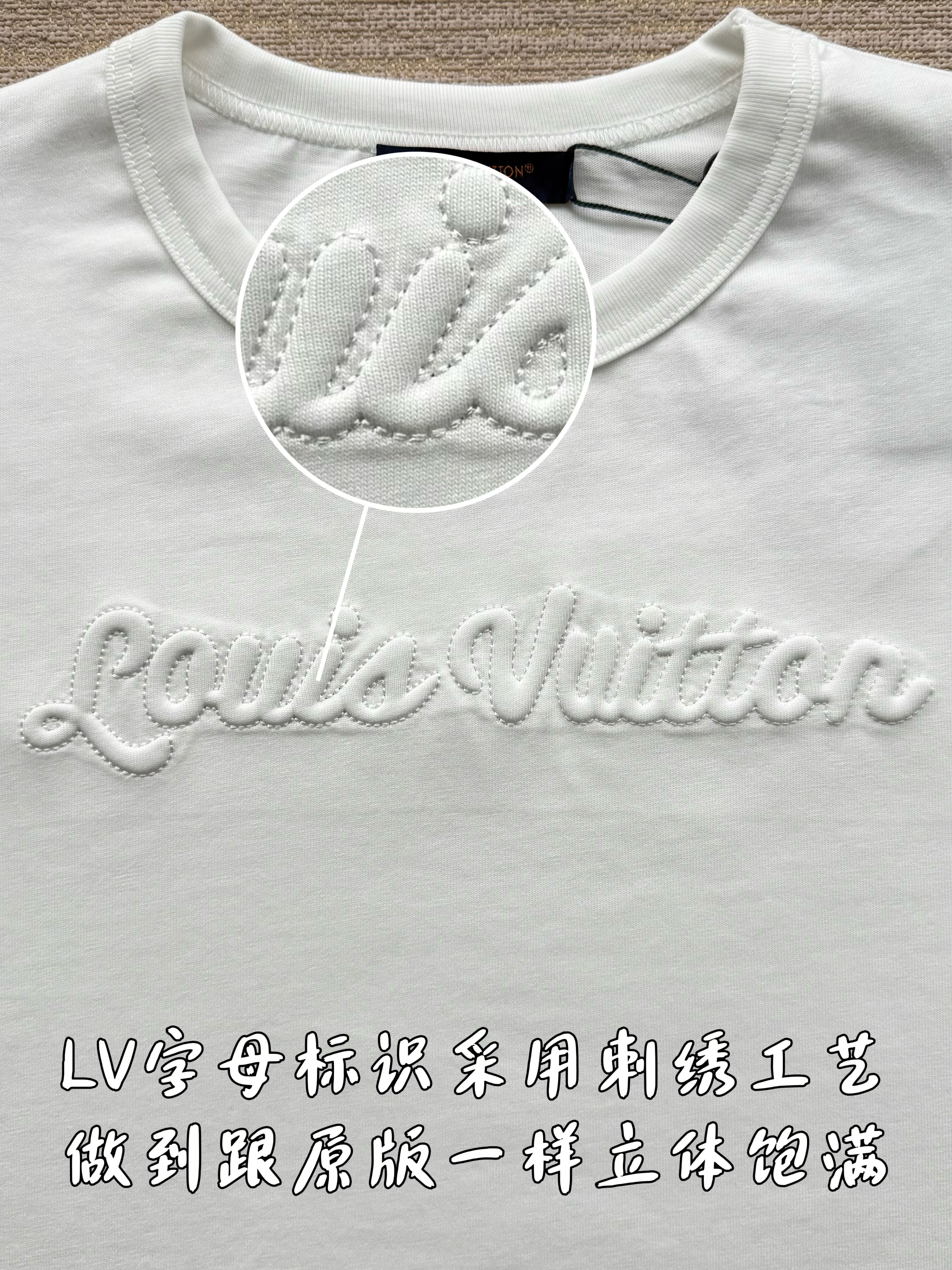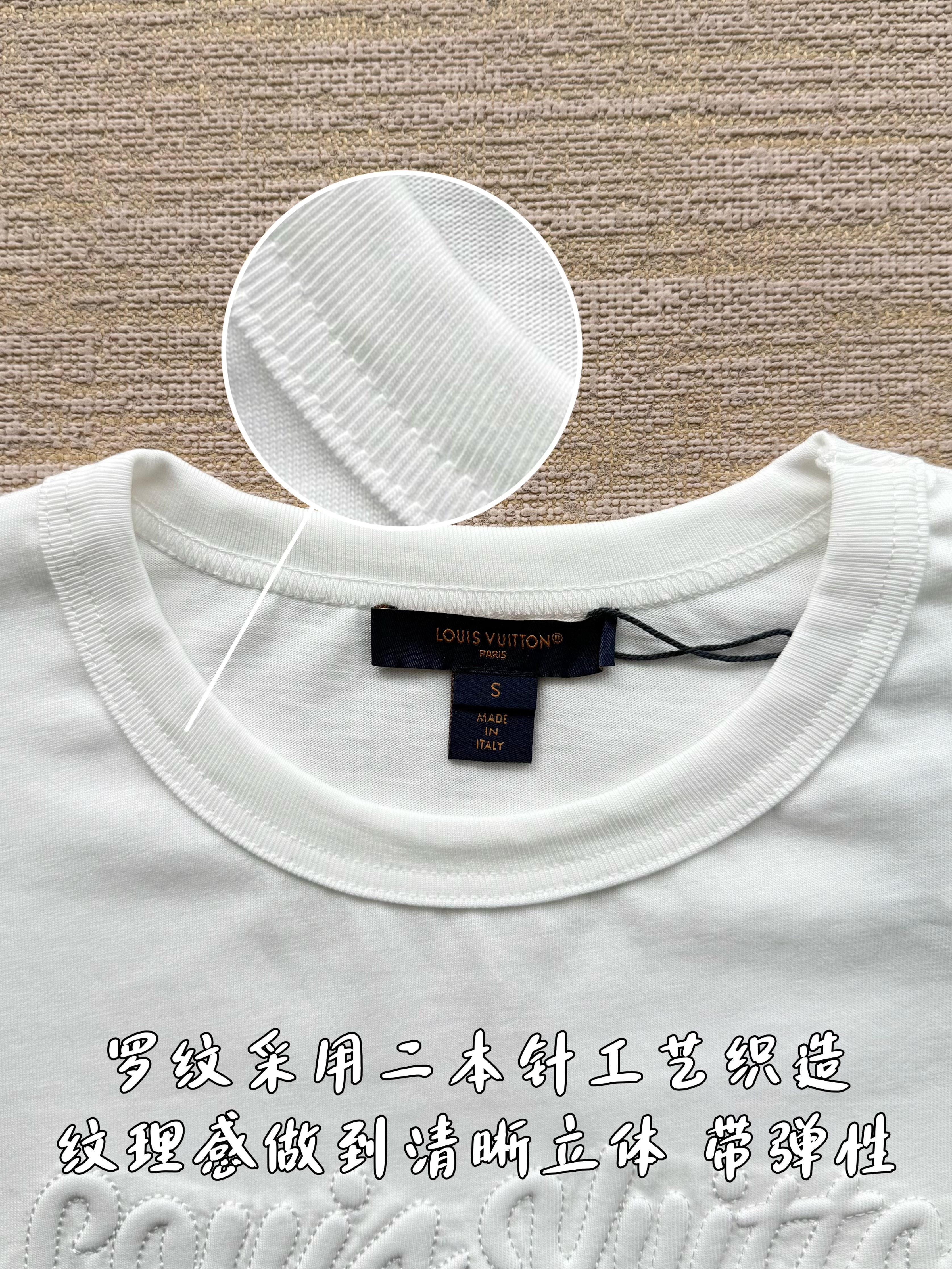 整件衣服7050购买ZP拆解打造,采用定制白色棉质平纹针织面料,做到100%全棉进口纱线,意大利制造,前幅饰以刺绣字母标识,定织标志性罗纹领口,超紧密度局部编织,袖口 下摆双层锁边高密度走线,真正做到1:1copy