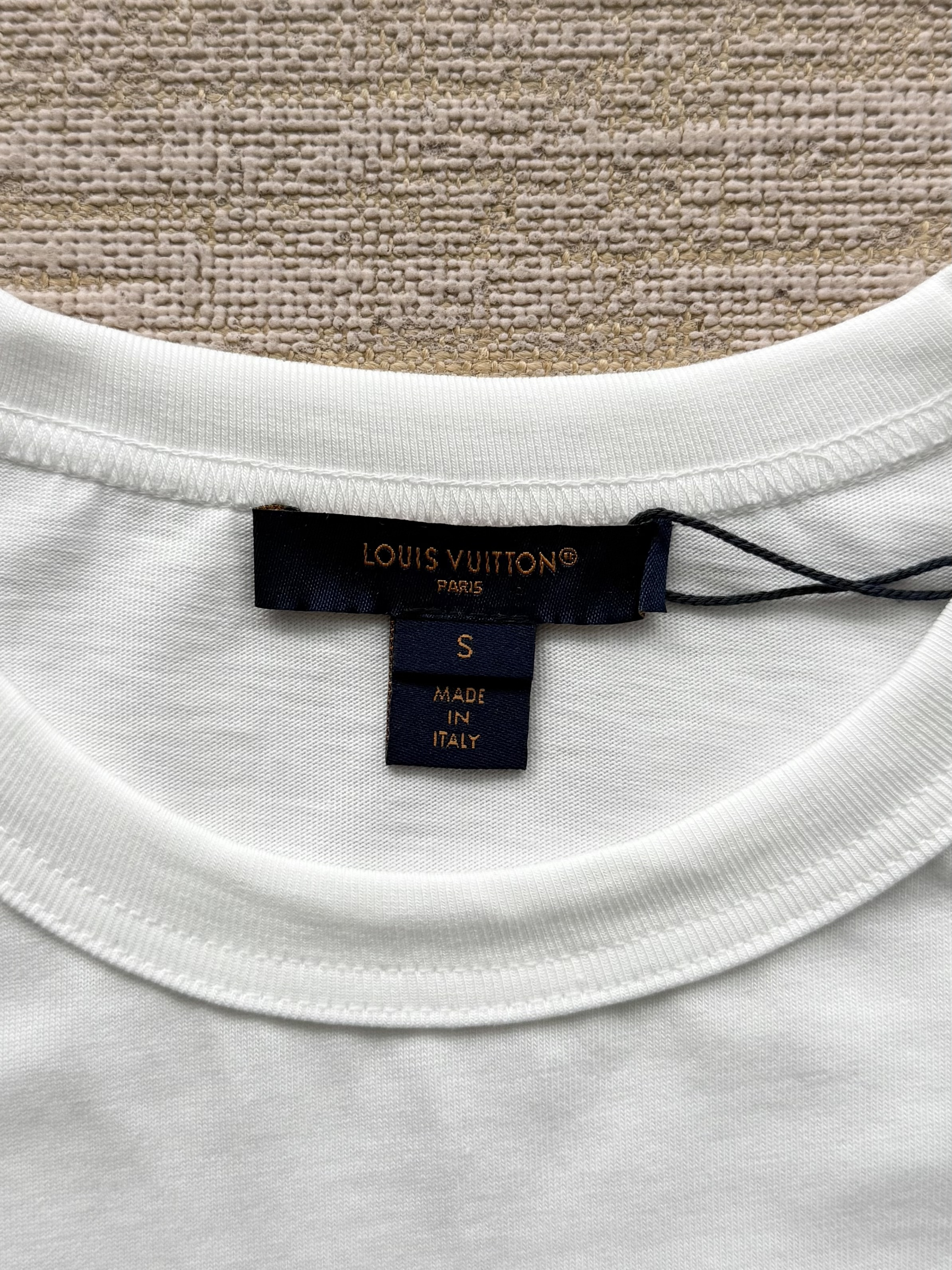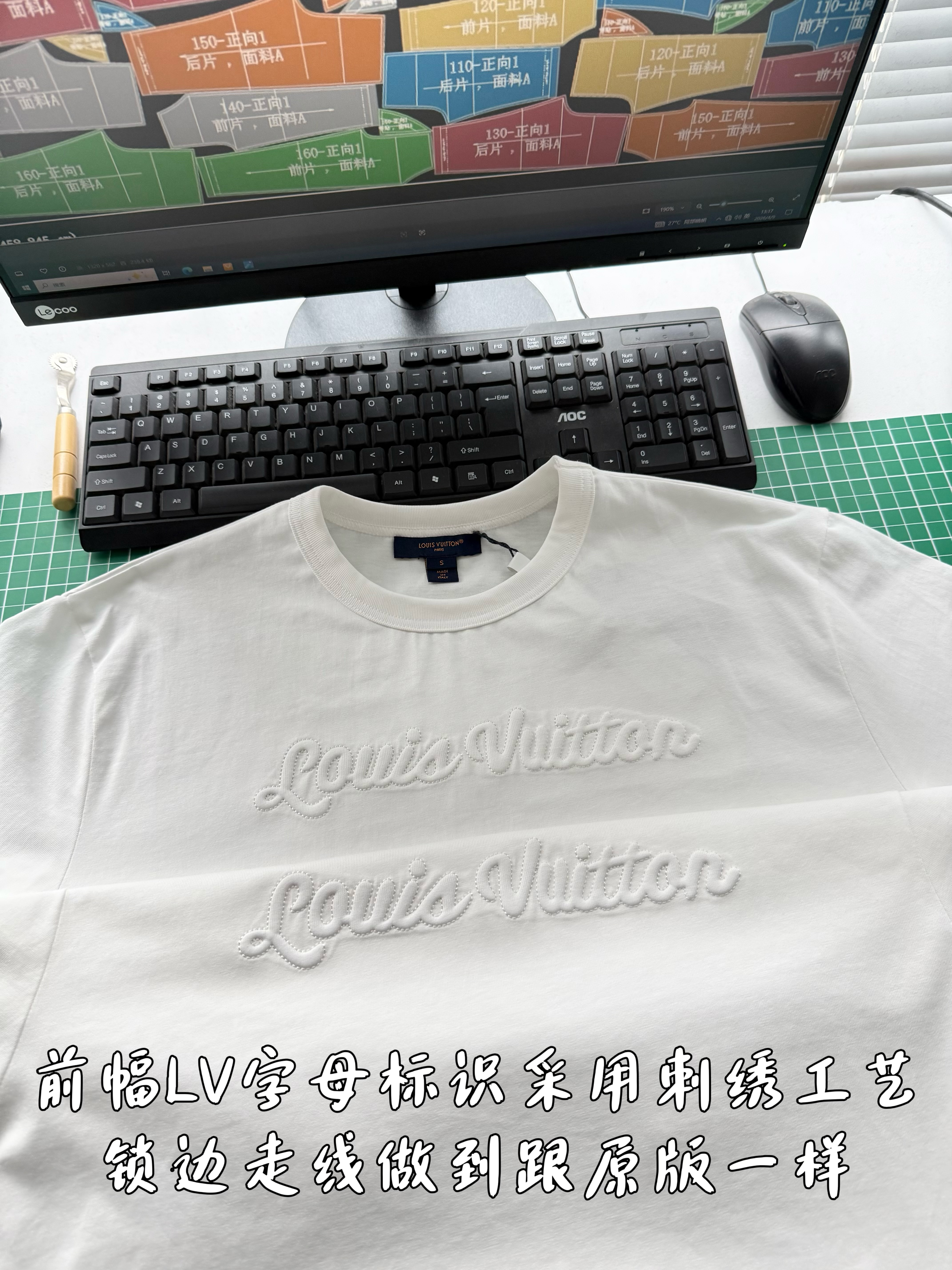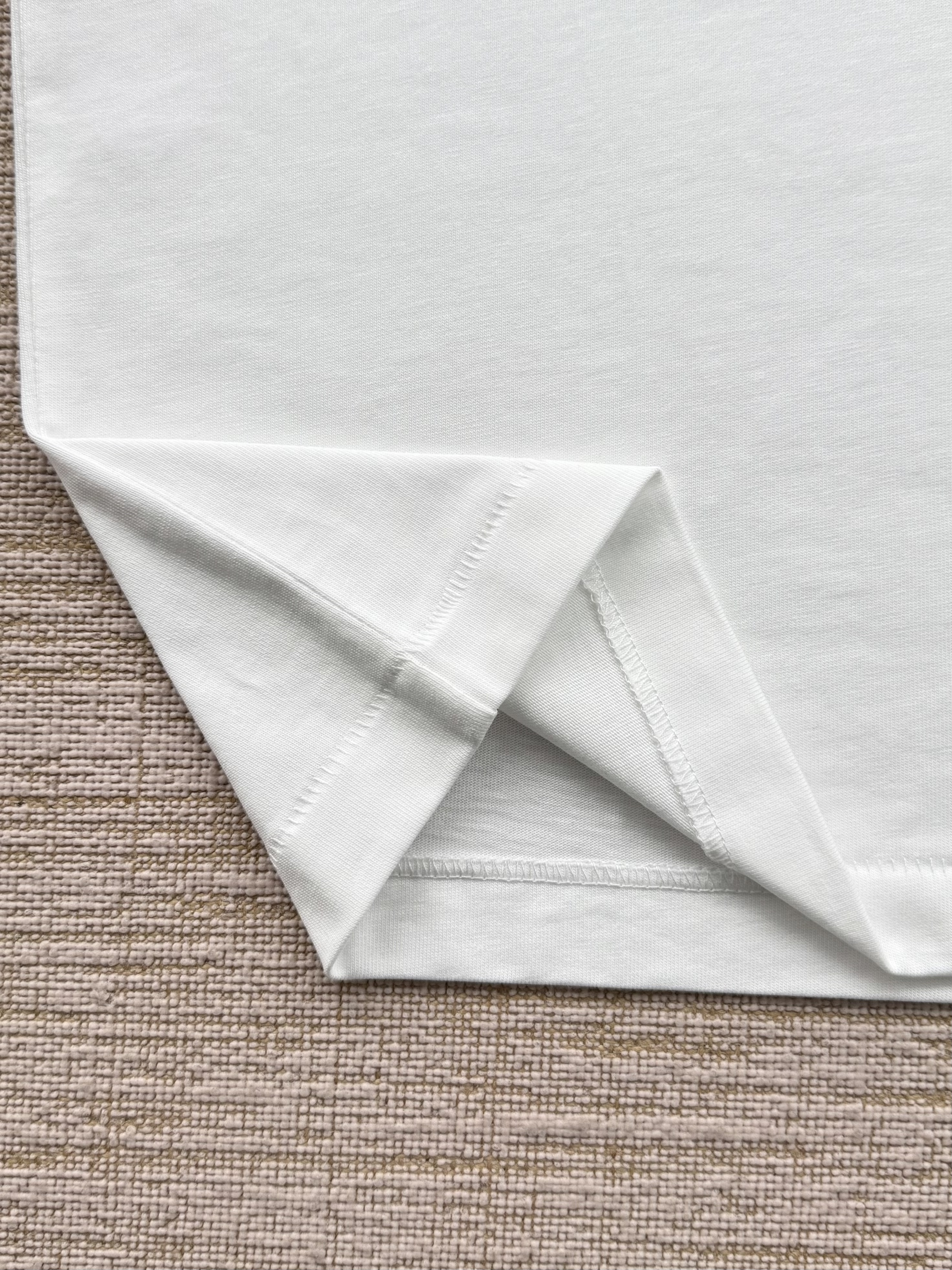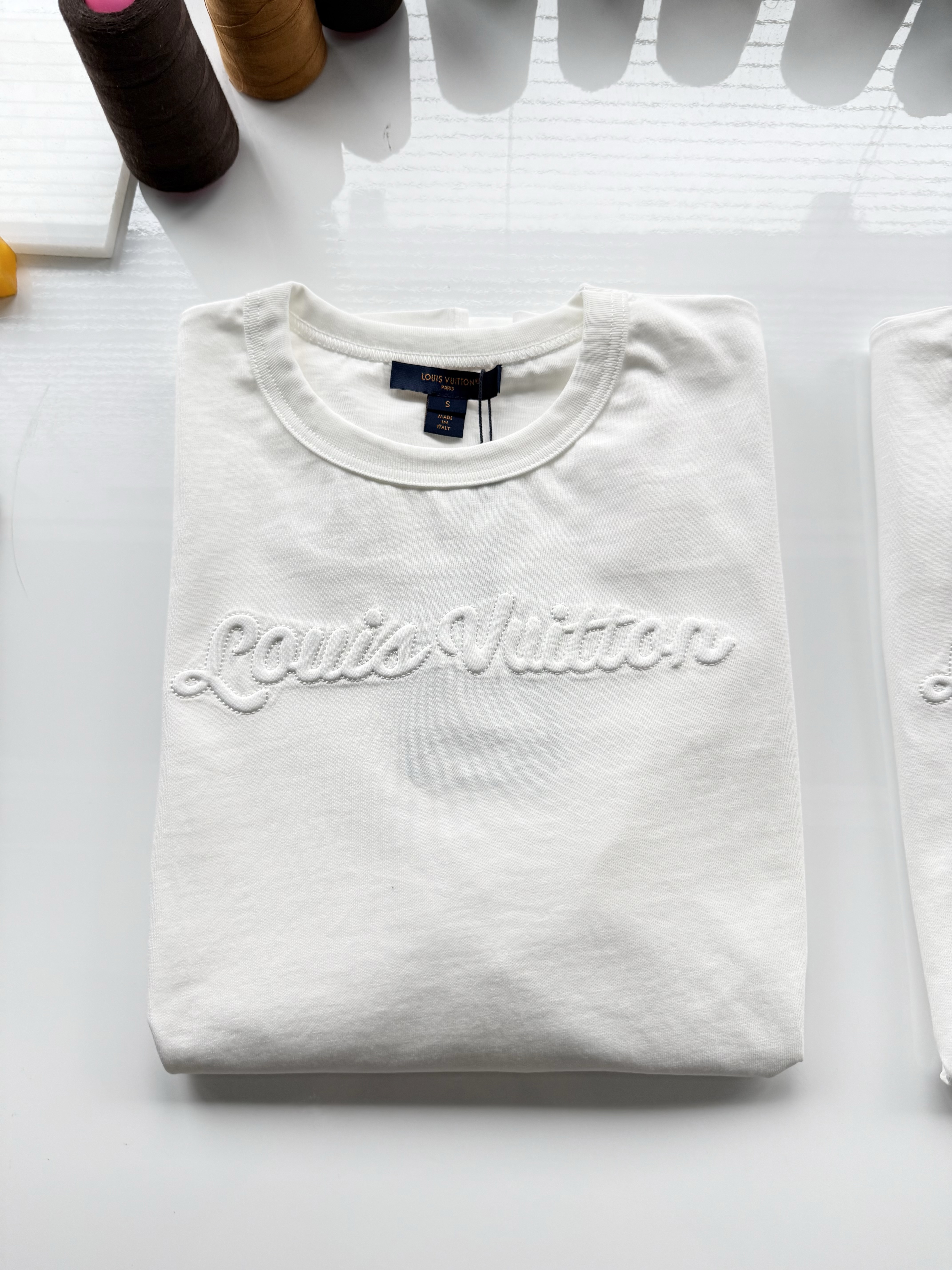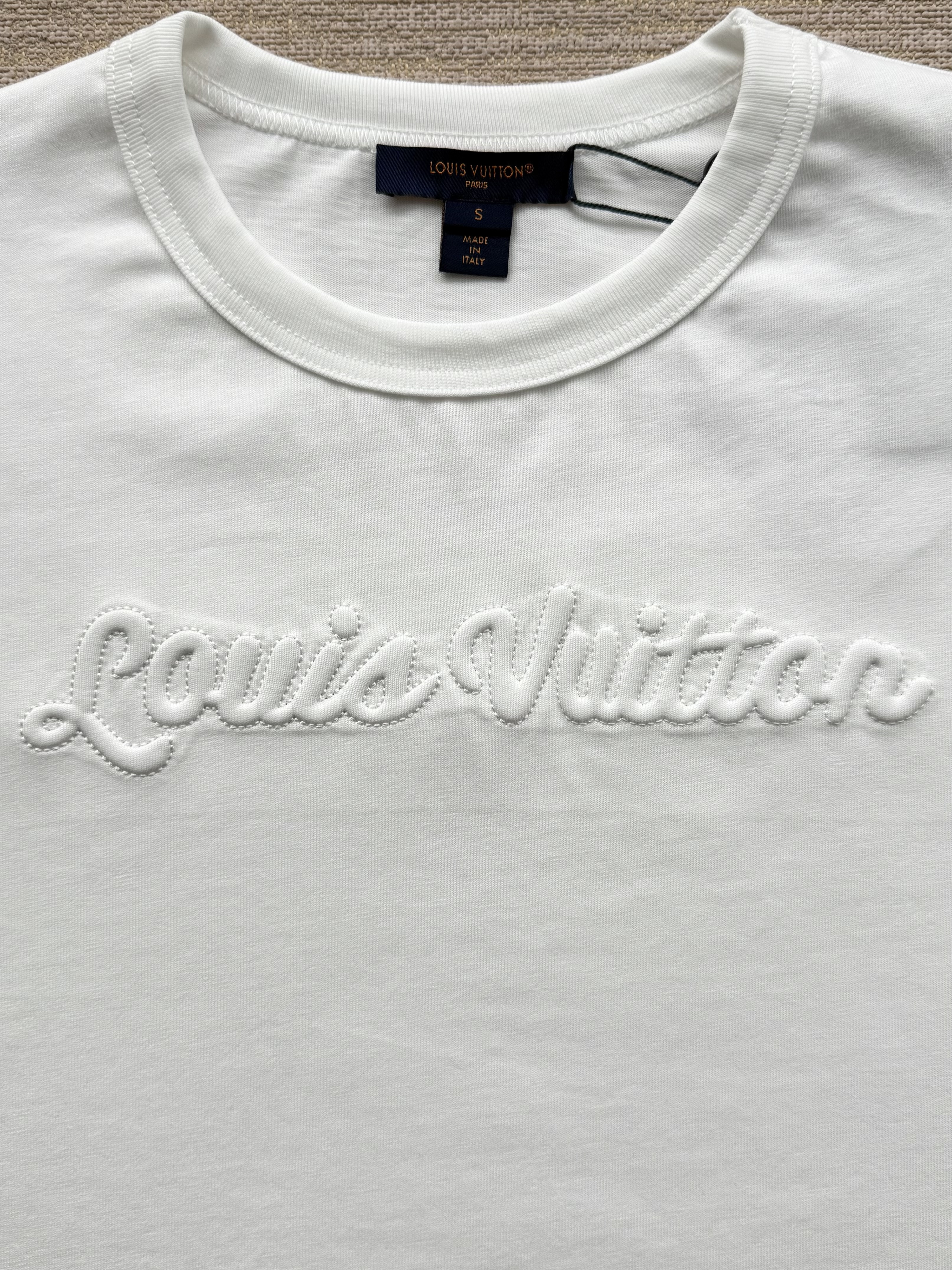 整件衣服7050购买ZP拆解打造,采用定制白色棉质平纹针织面料,做到100%全棉进口纱线,意大利制造,前幅饰以刺绣字母标识,定织标志性罗纹领口,超紧密度局部编织,袖口 下摆双层锁边高密度走线,真正做到1:1copy