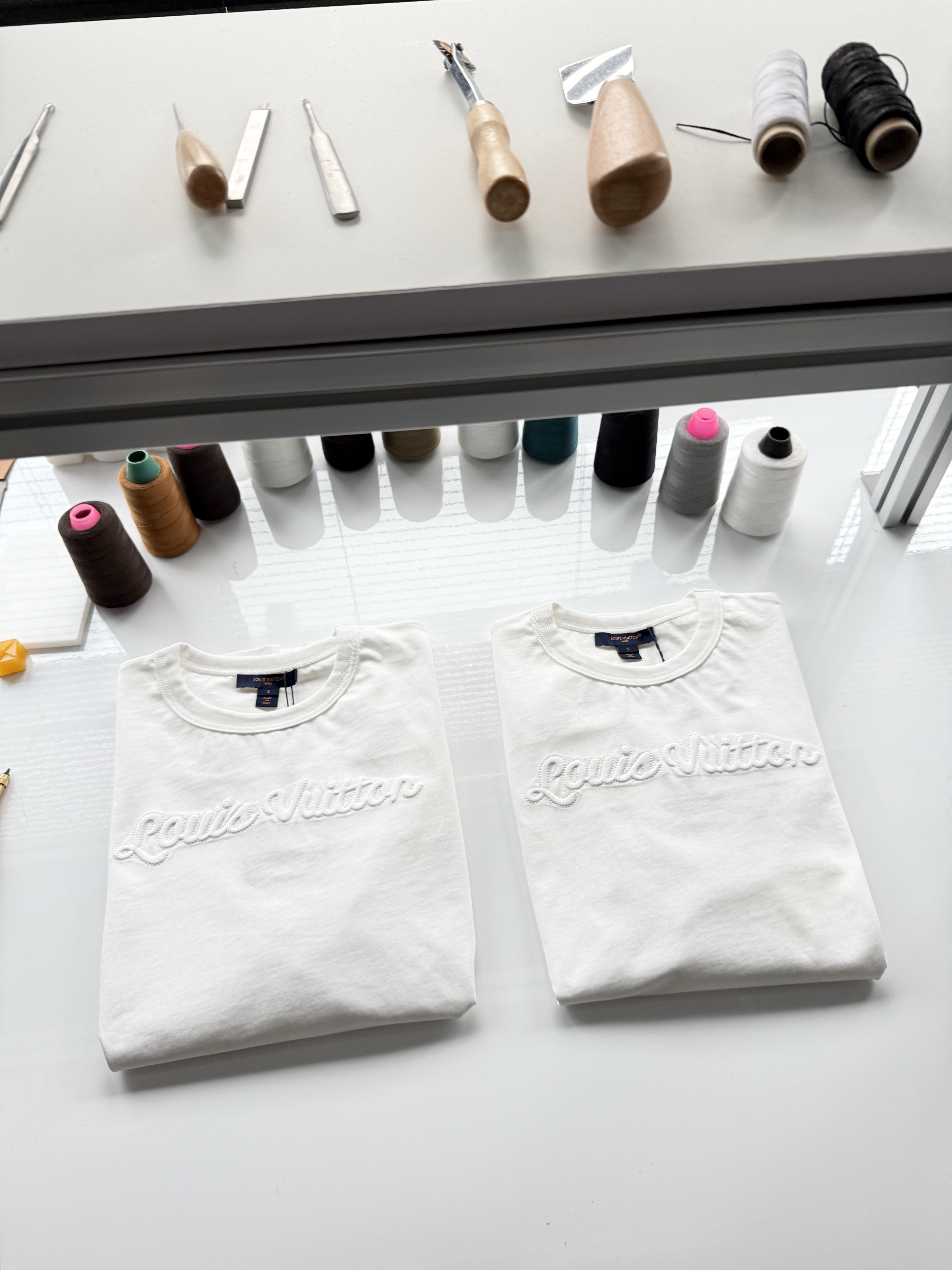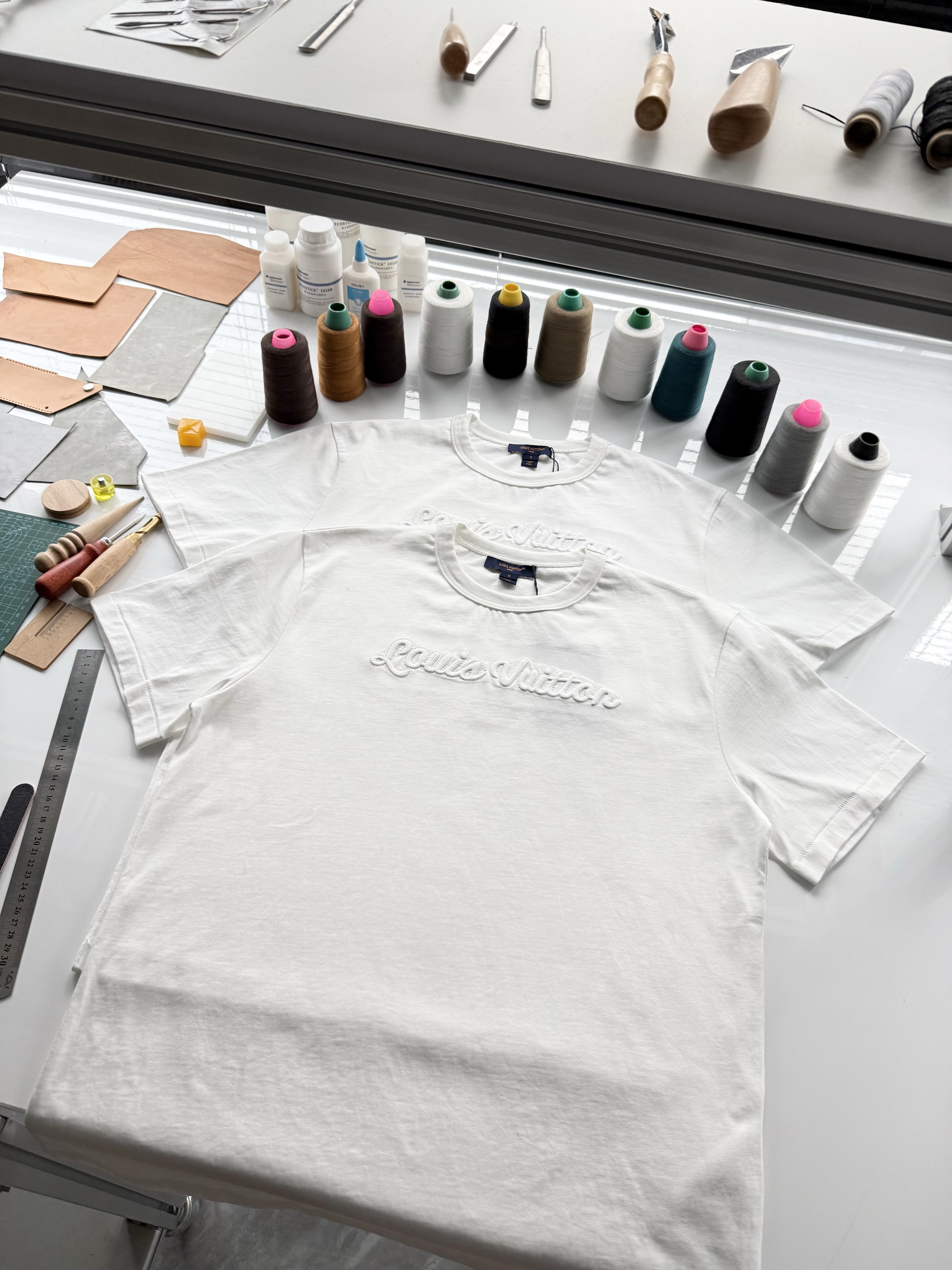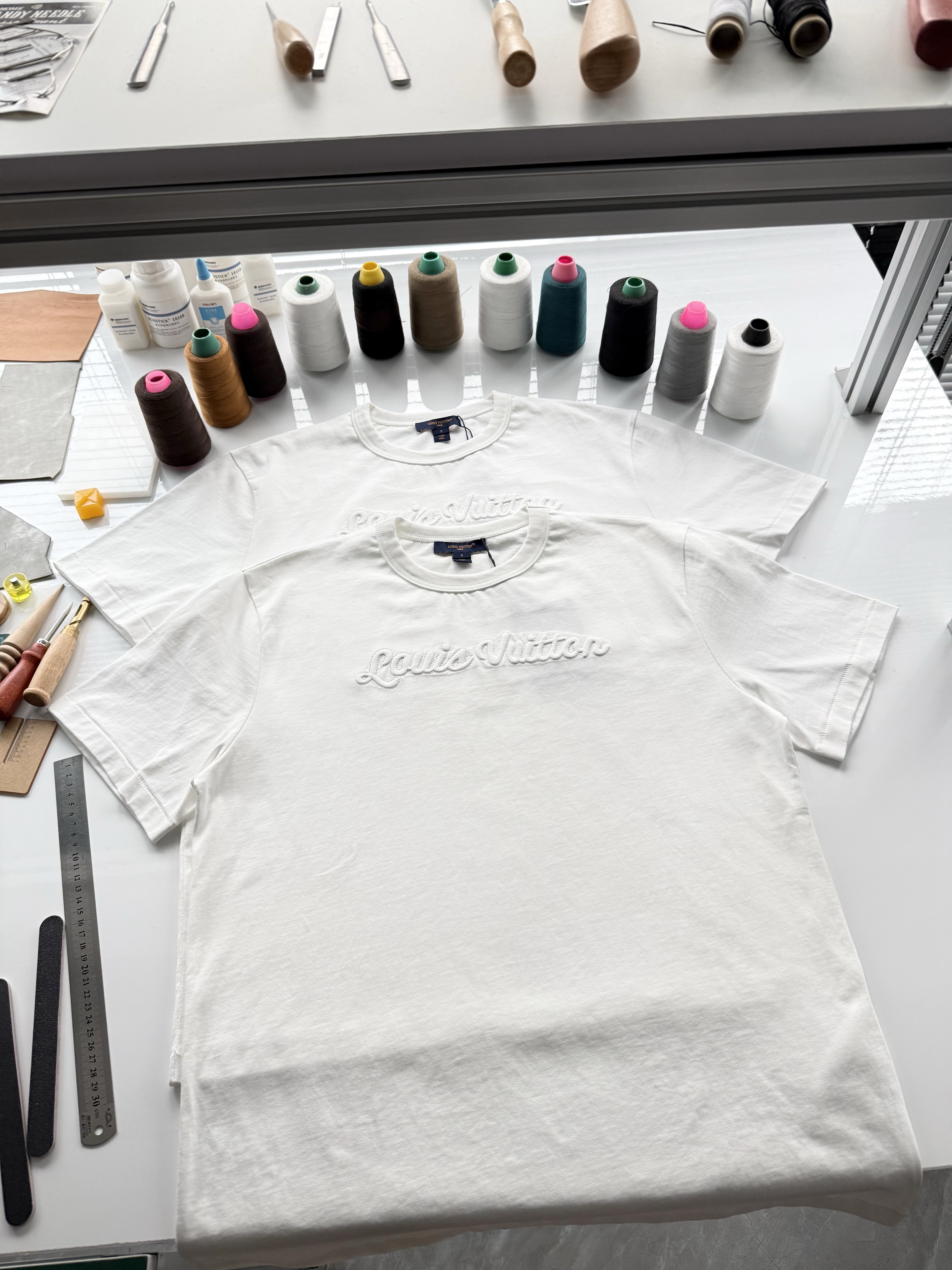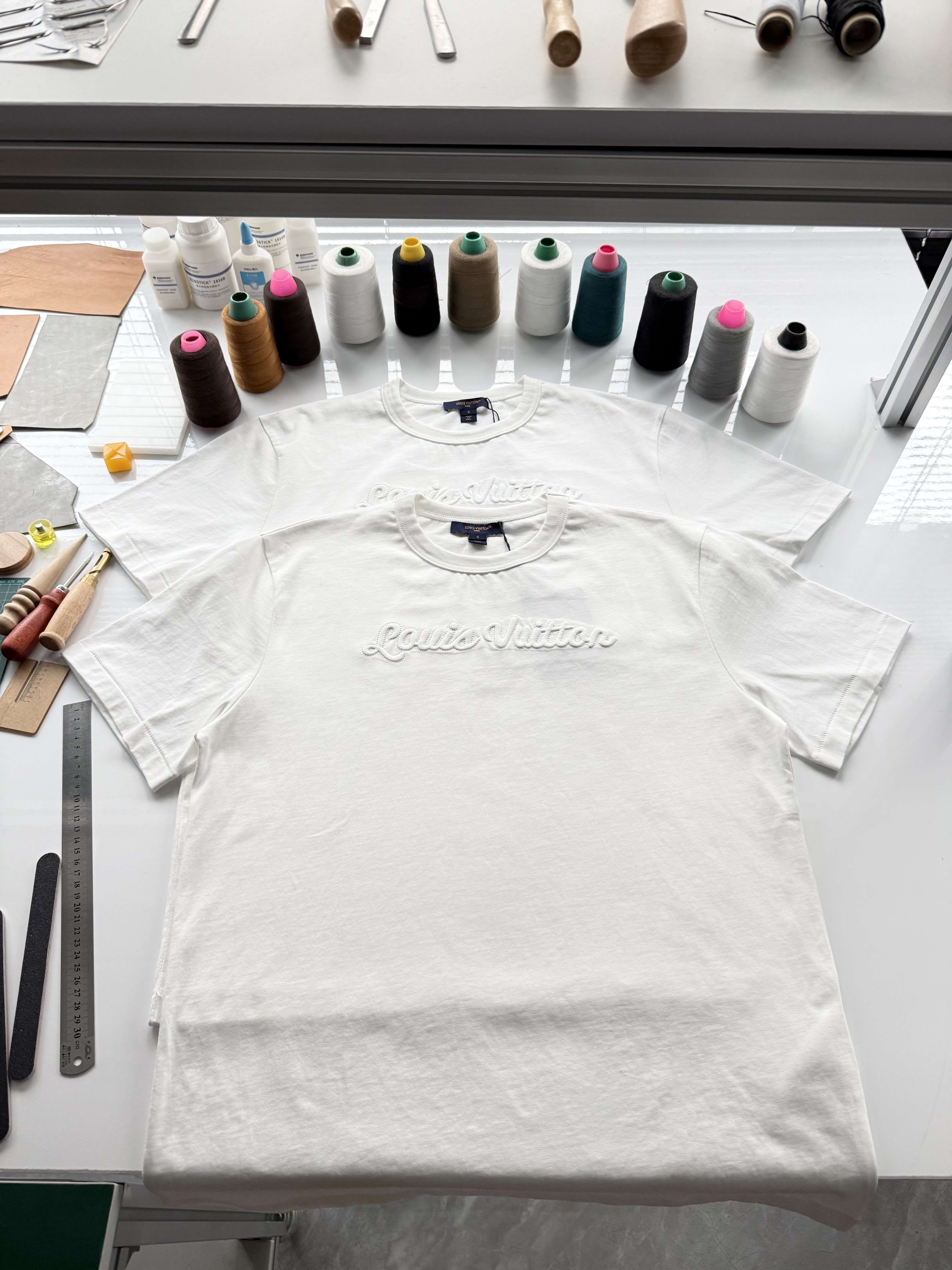 整件衣服7050购买ZP拆解打造,采用定制白色棉质平纹针织面料,做到100%全棉进口纱线,意大利制造,前幅饰以刺绣字母标识,定织标志性罗纹领口,超紧密度局部编织,袖口 下摆双层锁边高密度走线,真正做到1:1copy