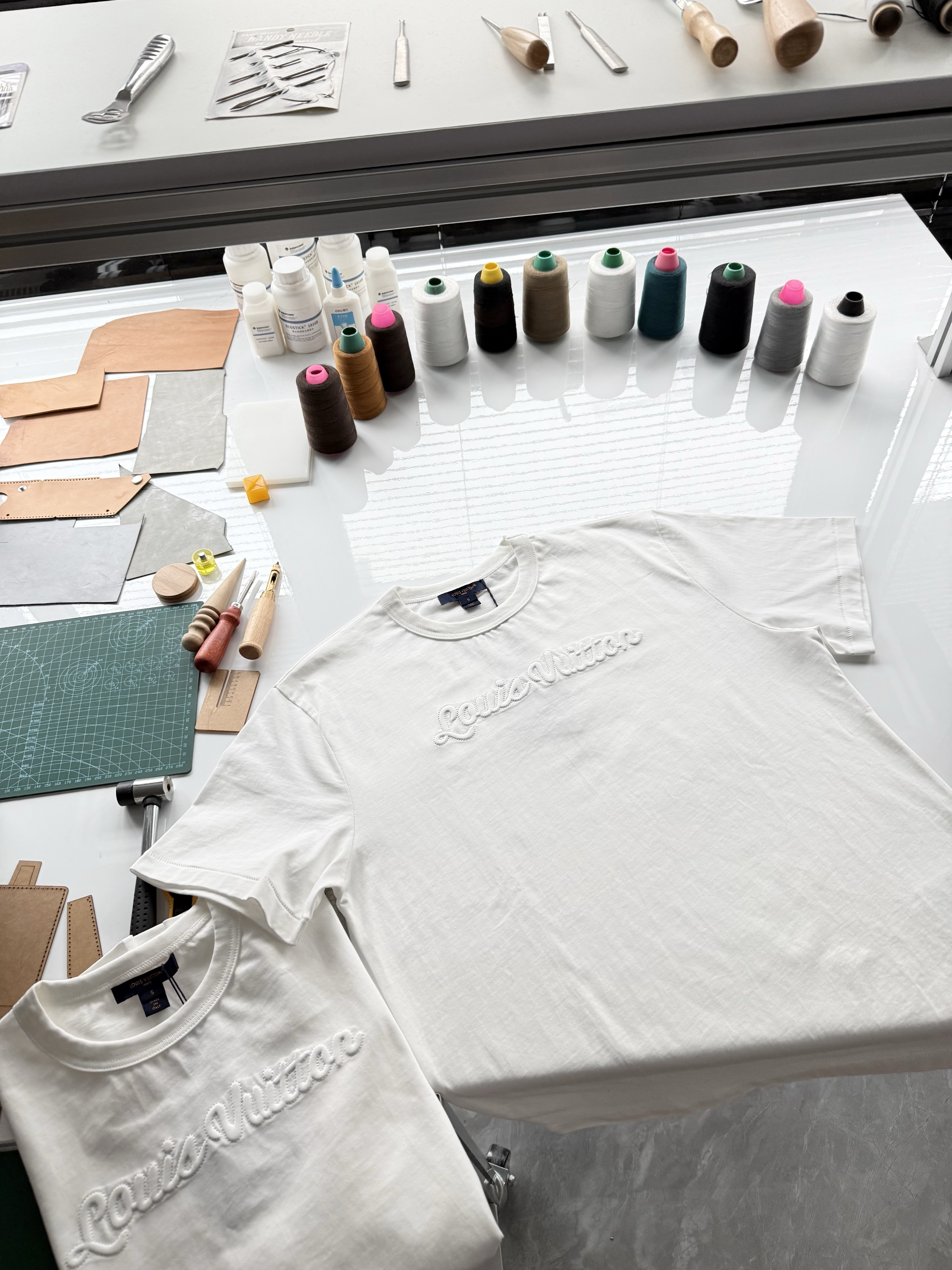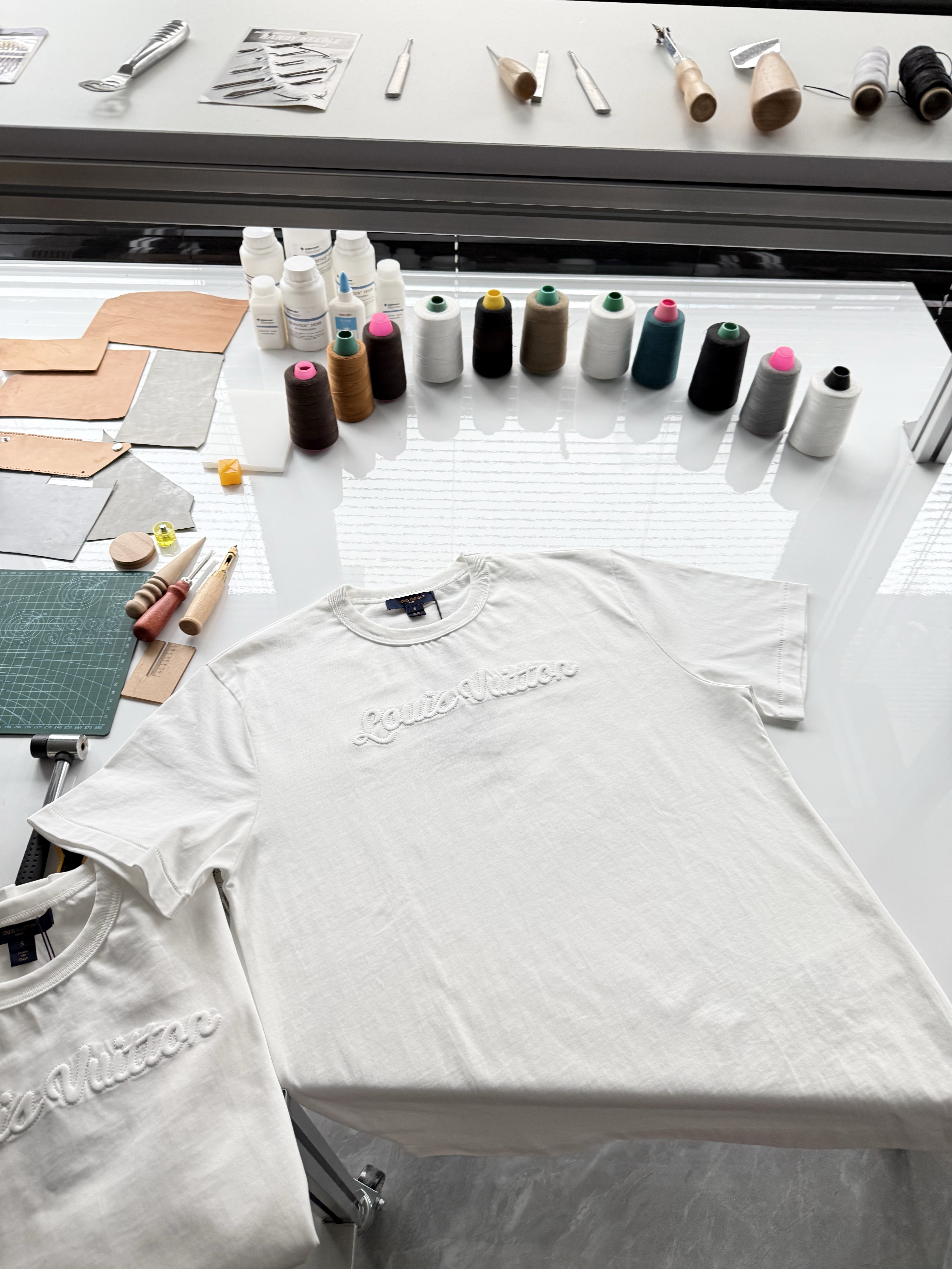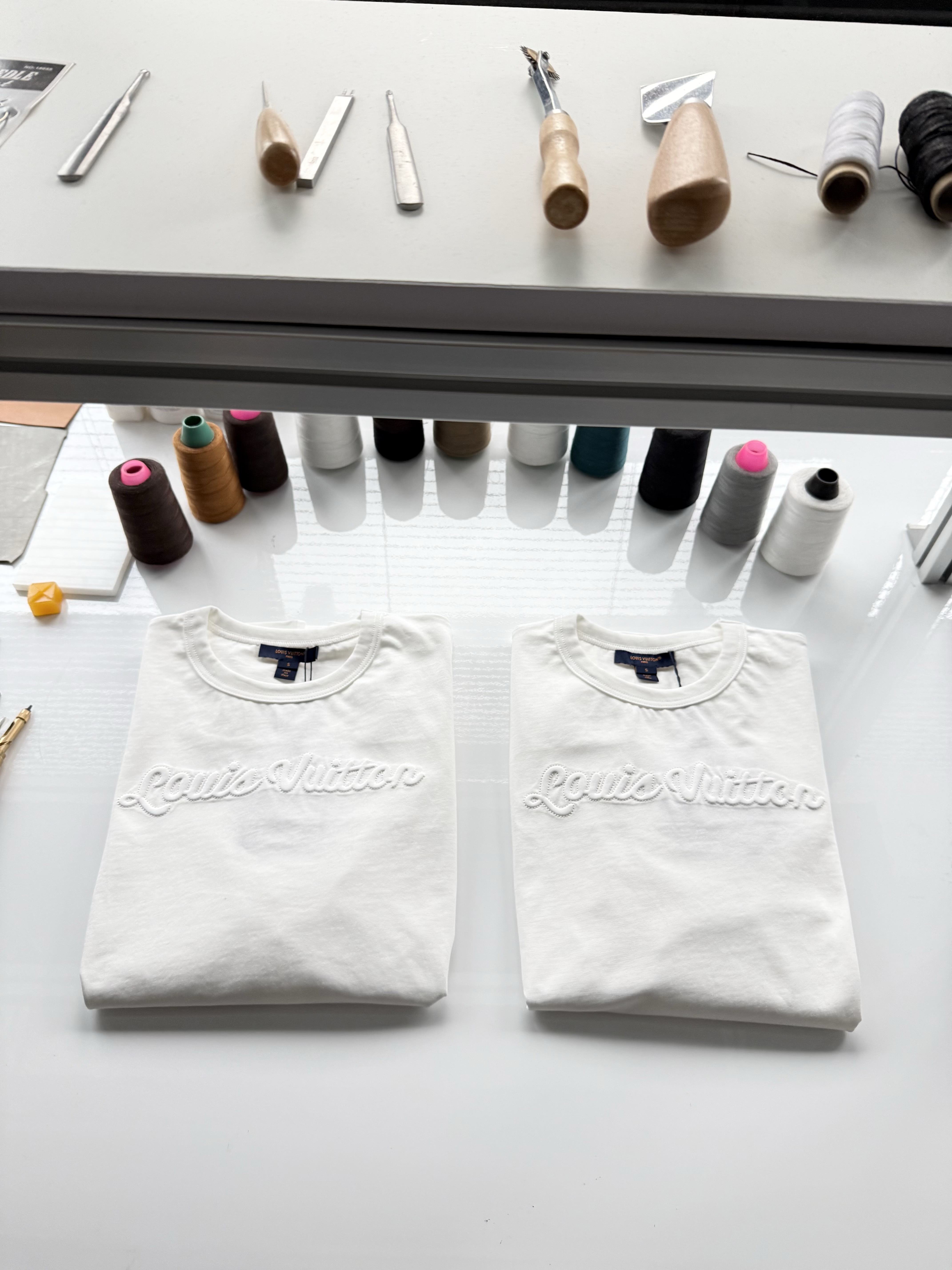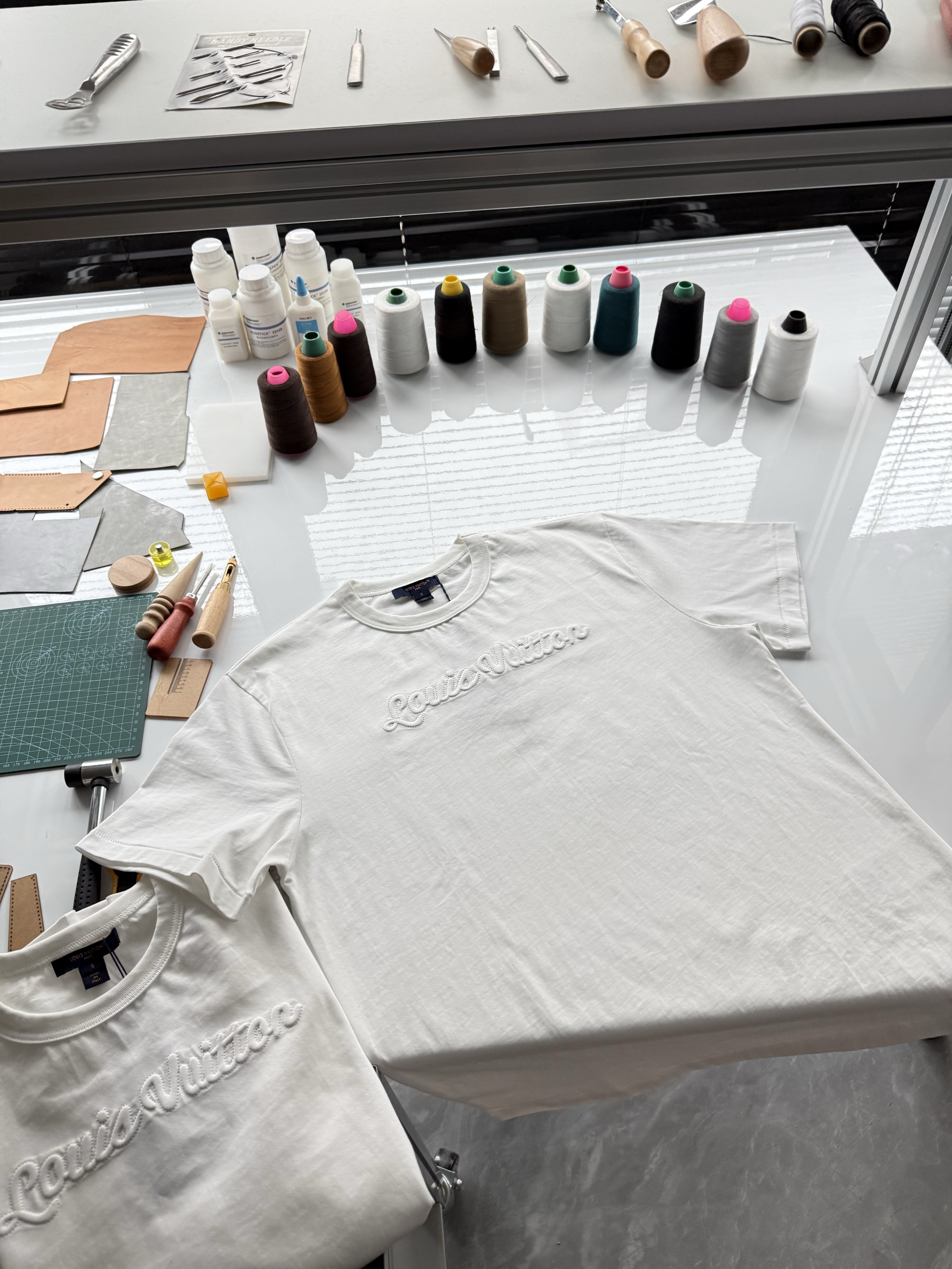 整件衣服7050购买ZP拆解打造,采用定制白色棉质平纹针织面料,做到100%全棉进口纱线,意大利制造,前幅饰以刺绣字母标识,定织标志性罗纹领口,超紧密度局部编织,袖口 下摆双层锁边高密度走线,真正做到1:1copy
