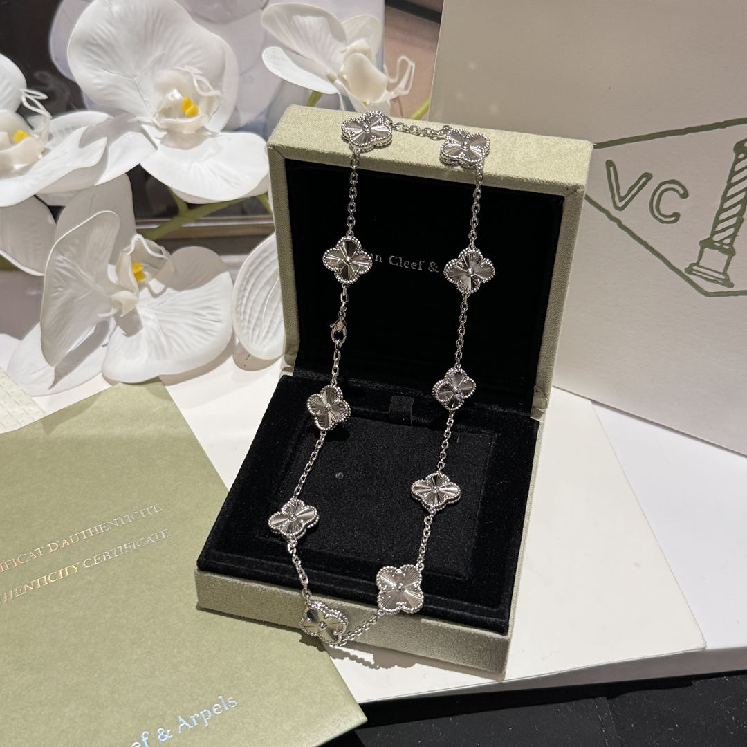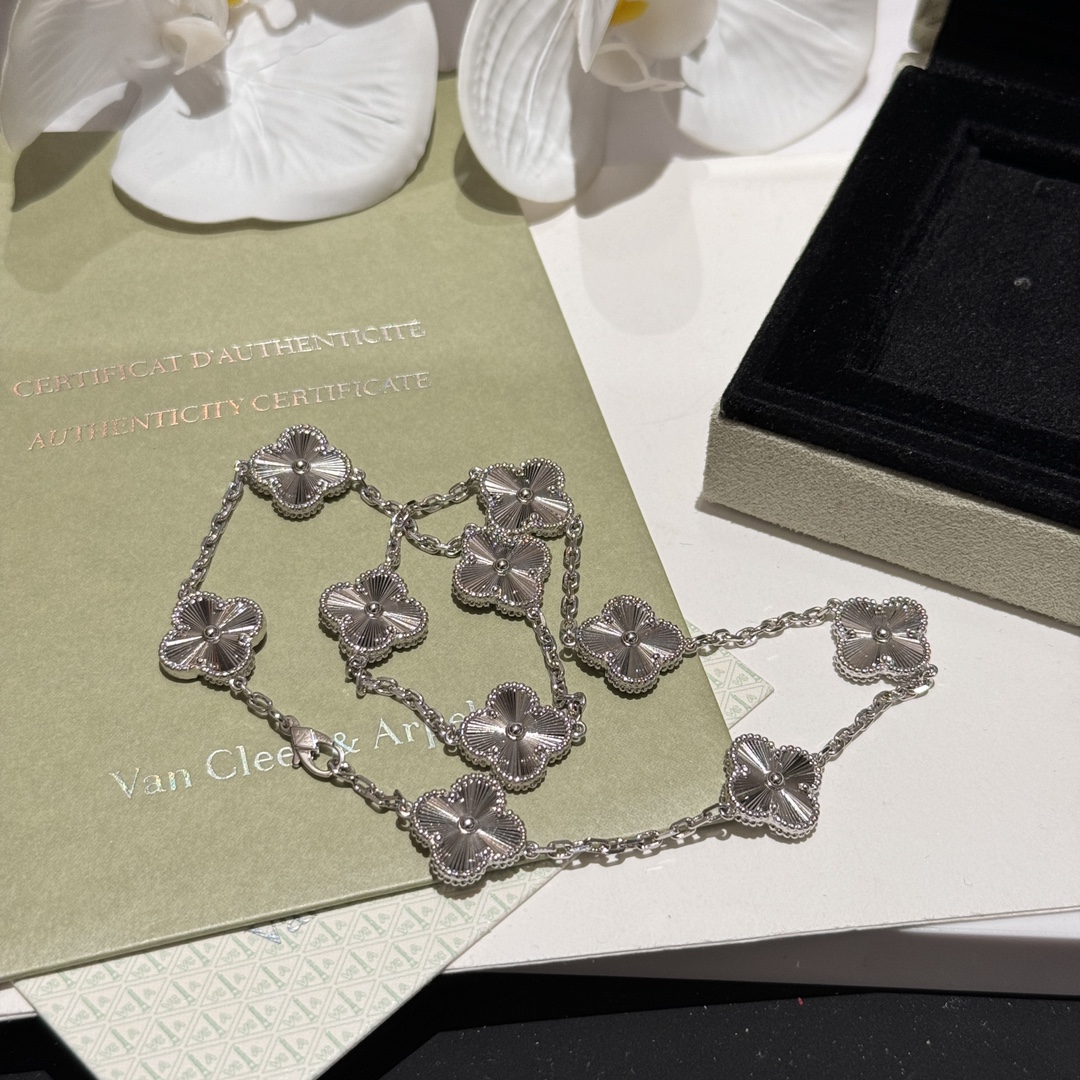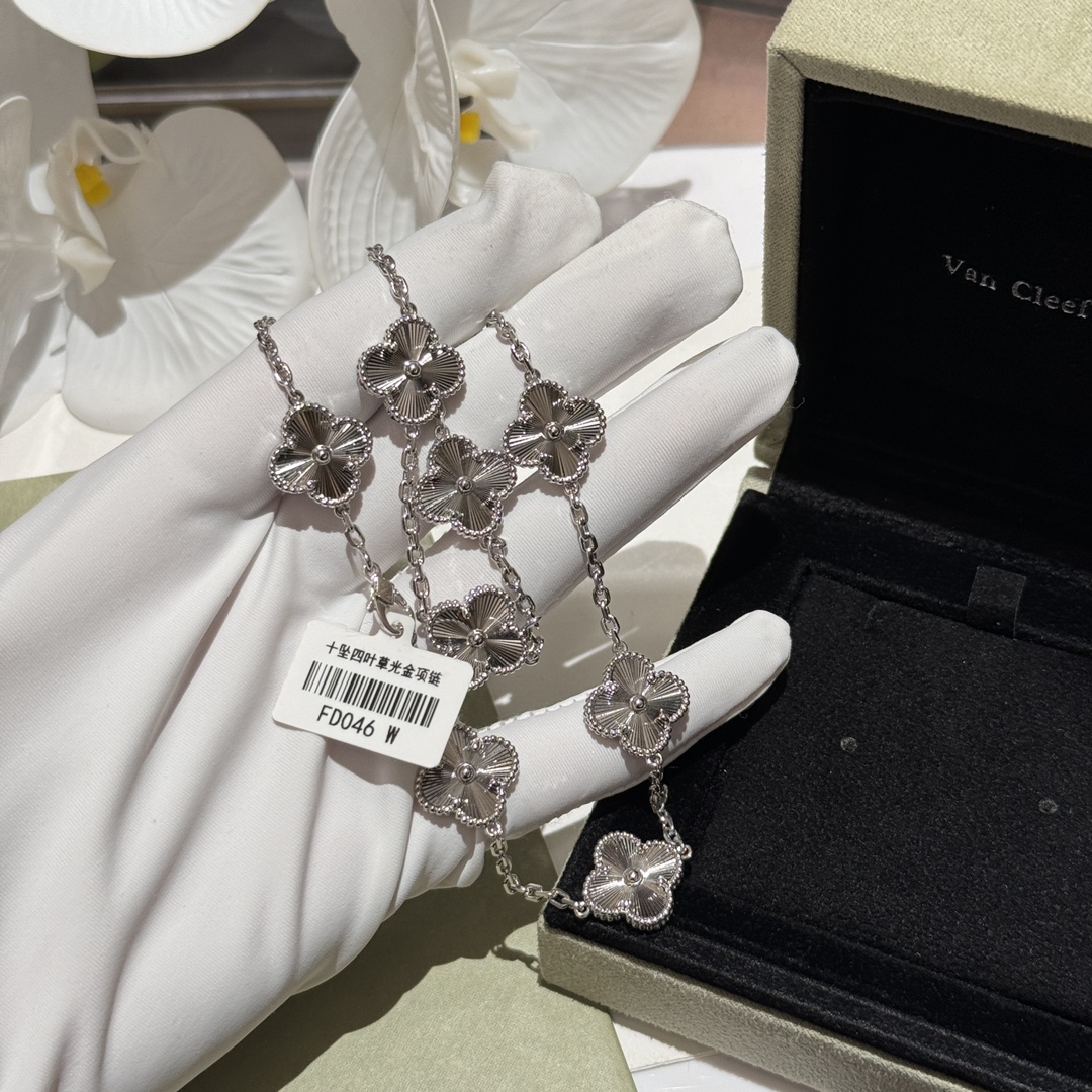 FD046#十坠四叶草光金项链 1:1高定版采用源自于1910年代的玑镂雕花工艺,如阳光酒落般的浮雕效果,令白色的光芒更为夺目??