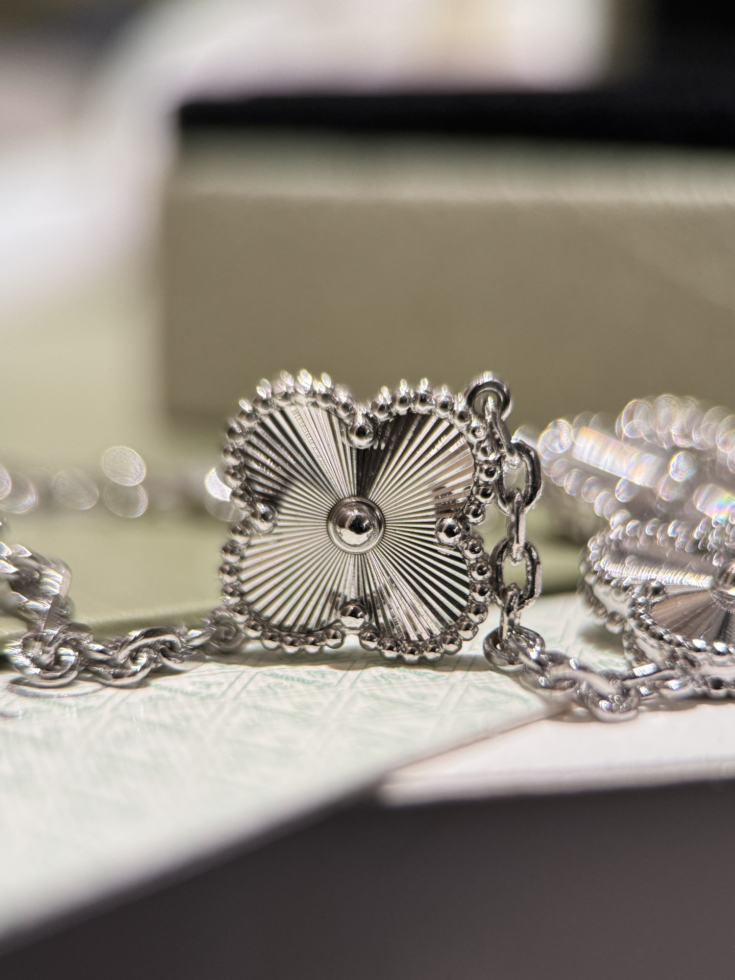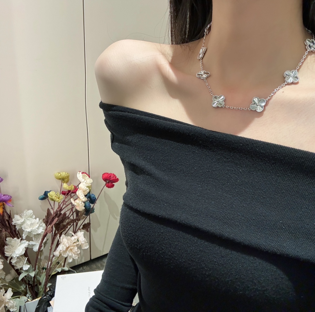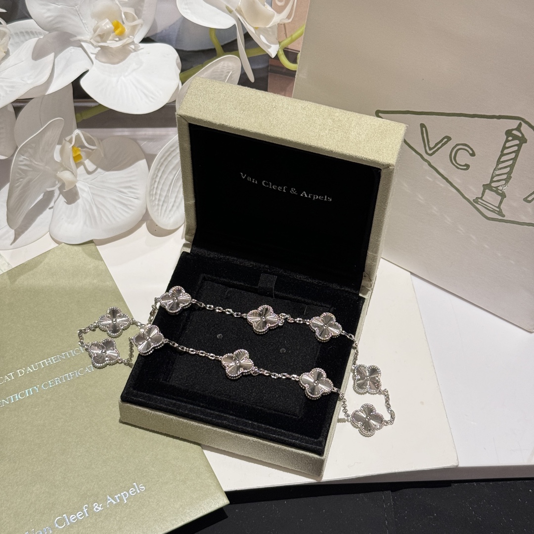 FD046#十坠四叶草光金项链 1:1高定版采用源自于1910年代的玑镂雕花工艺,如阳光酒落般的浮雕效果,令白色的光芒更为夺目??