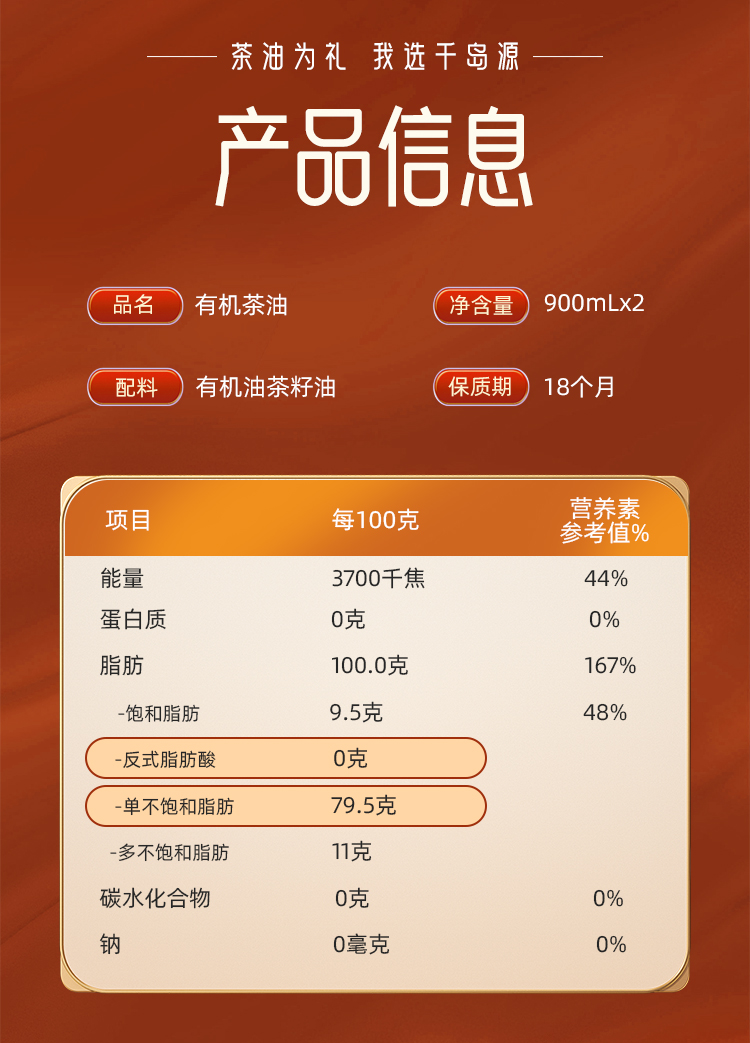 千岛源零反式脂肪酸有机山茶油礼盒500mL*2/750mL*2/900mL*2