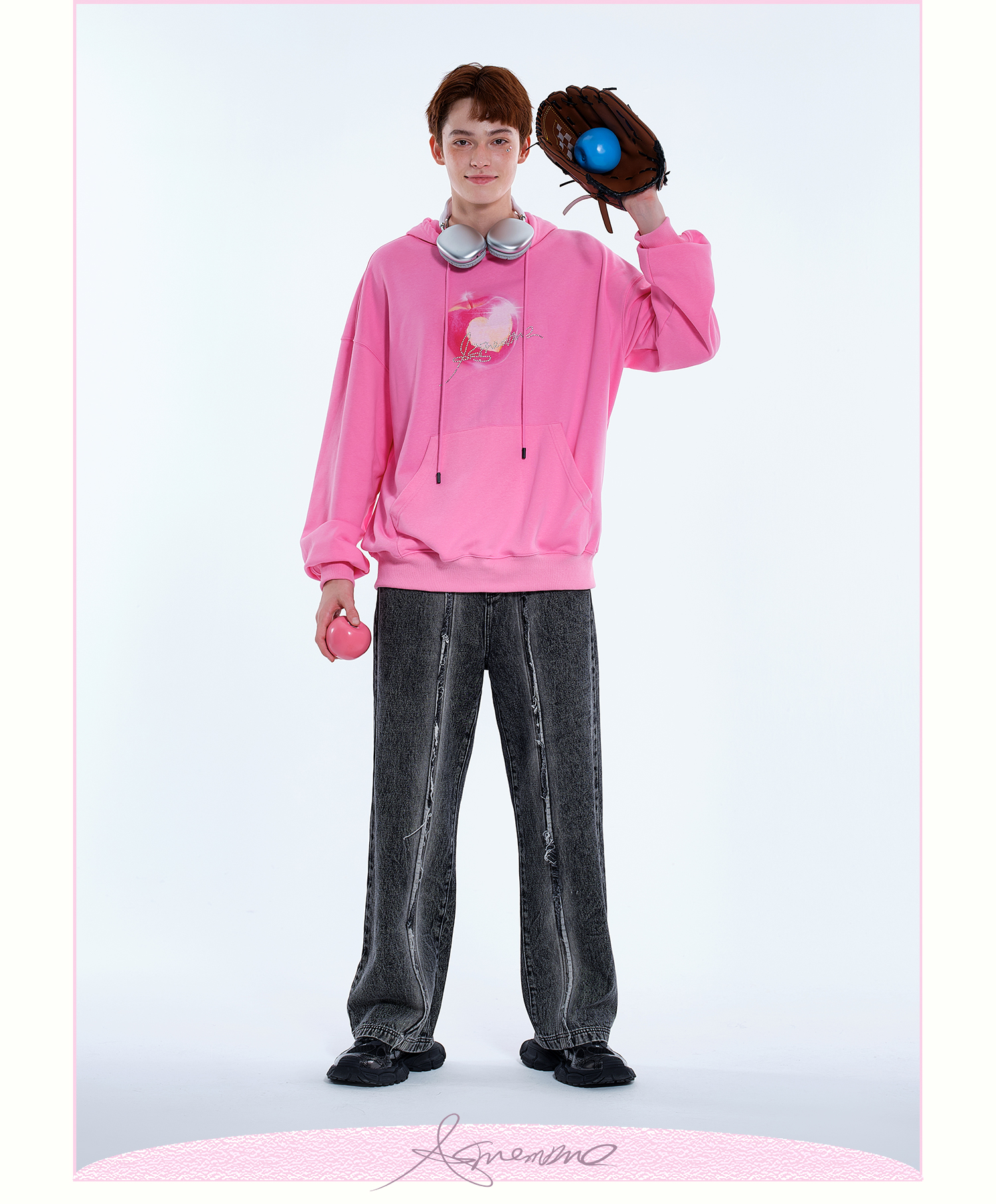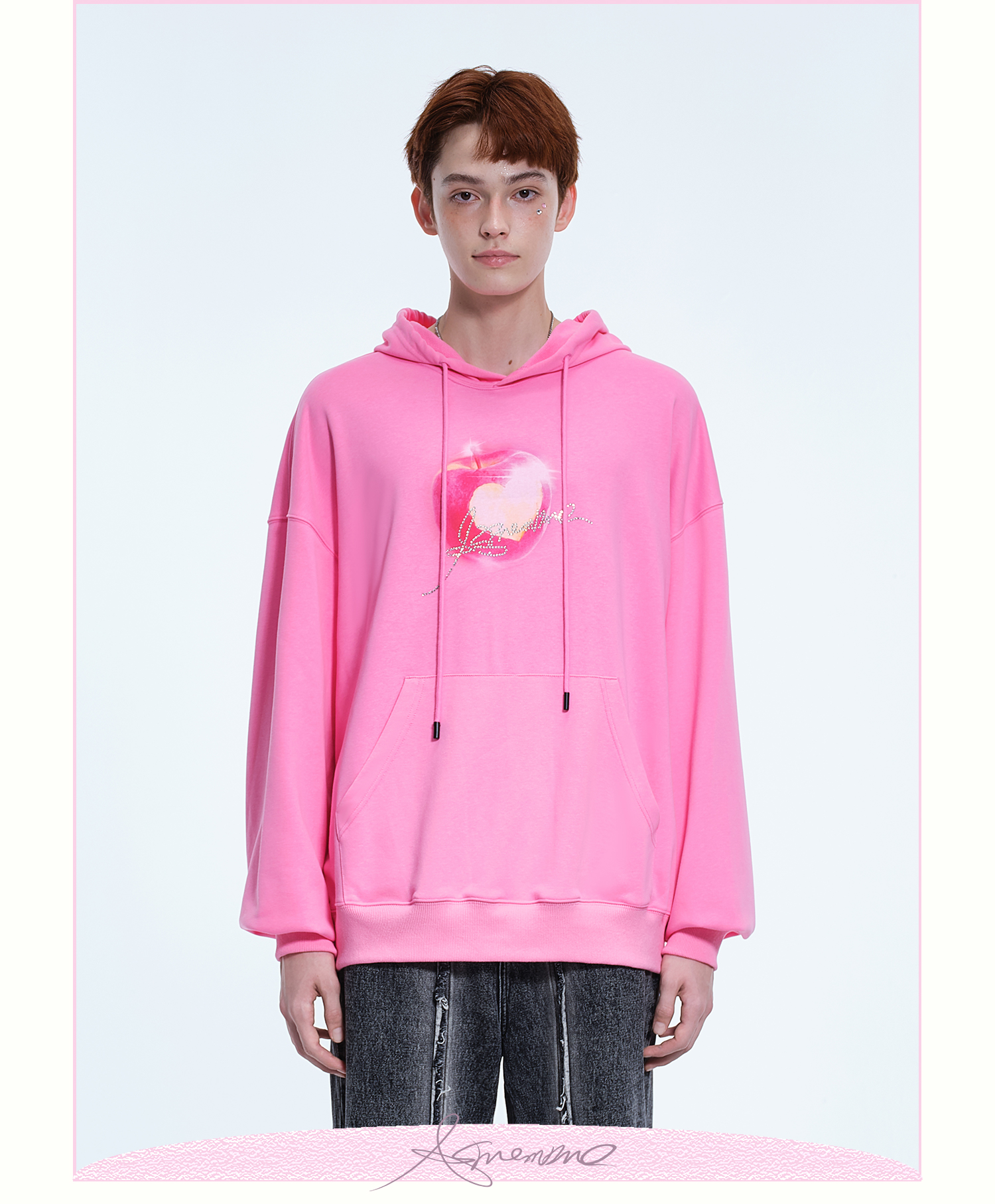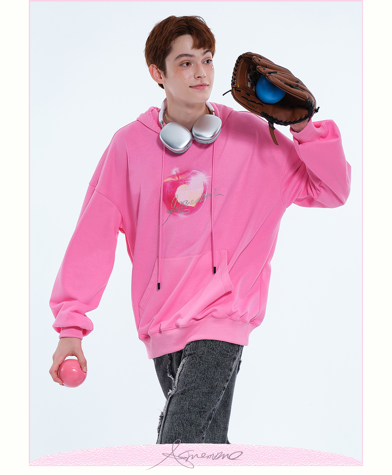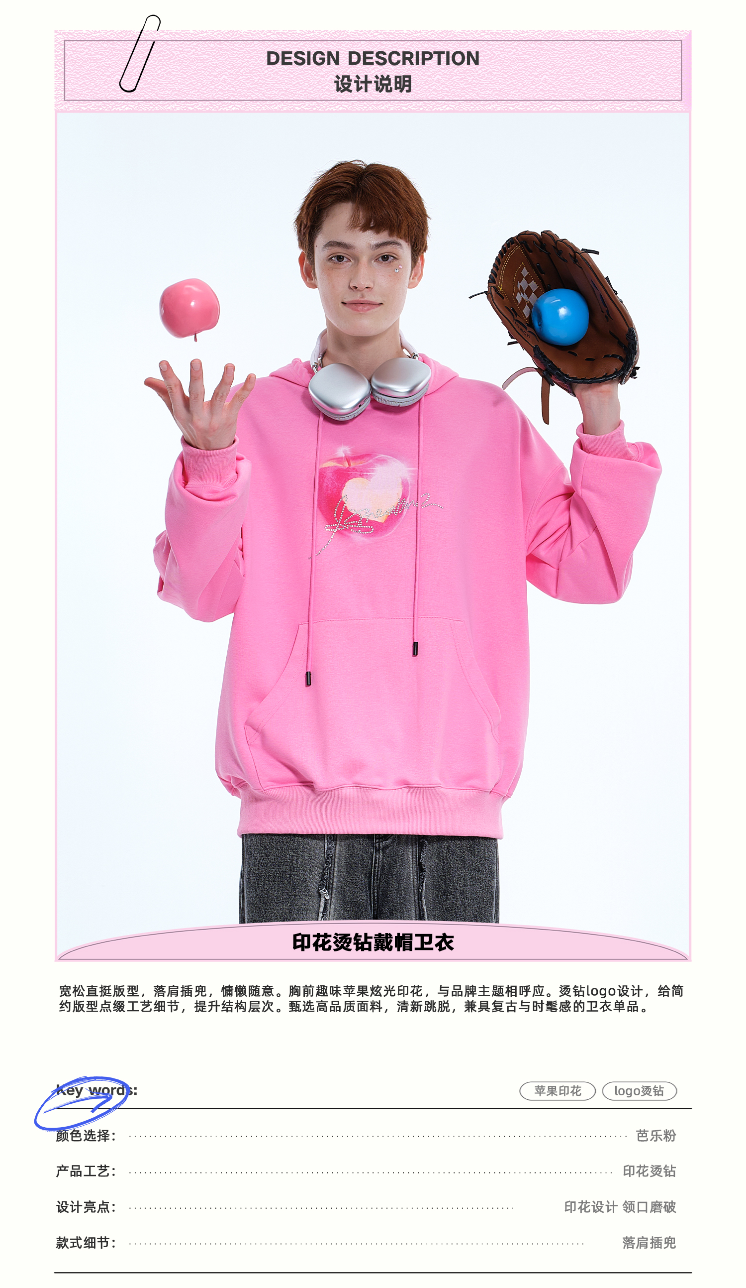 ASMEMMO咦哇•“苹果味小岛”印花烫钻戴帽卫衣