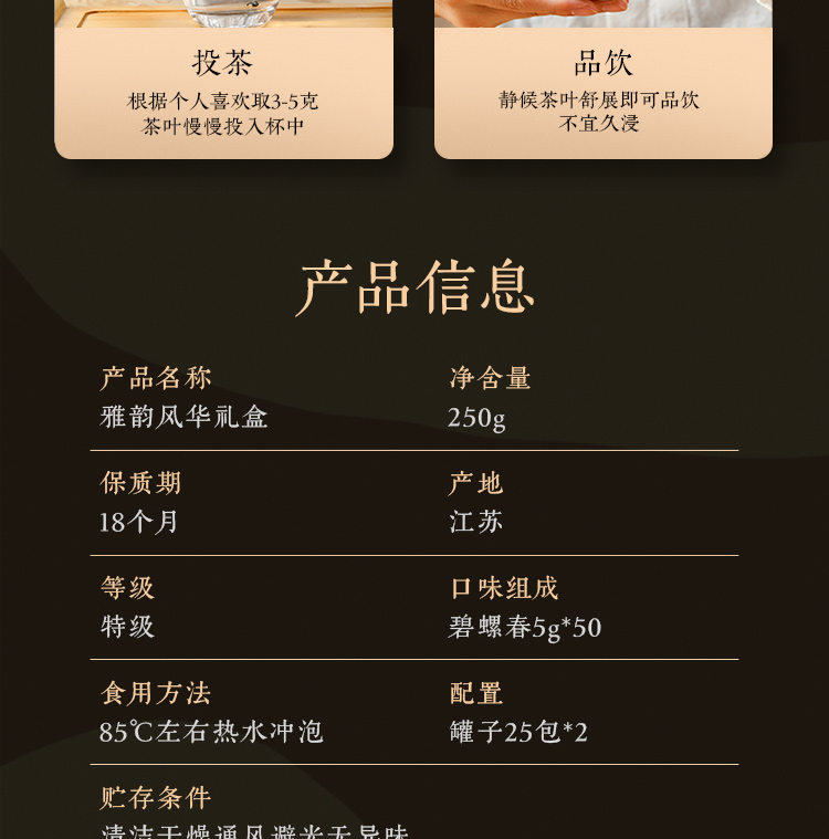 【雅韵风华】微信会员专享 绿茶 源自碧螺春核心产地 明前嫩采 国风茶叶礼盒 净含量250g