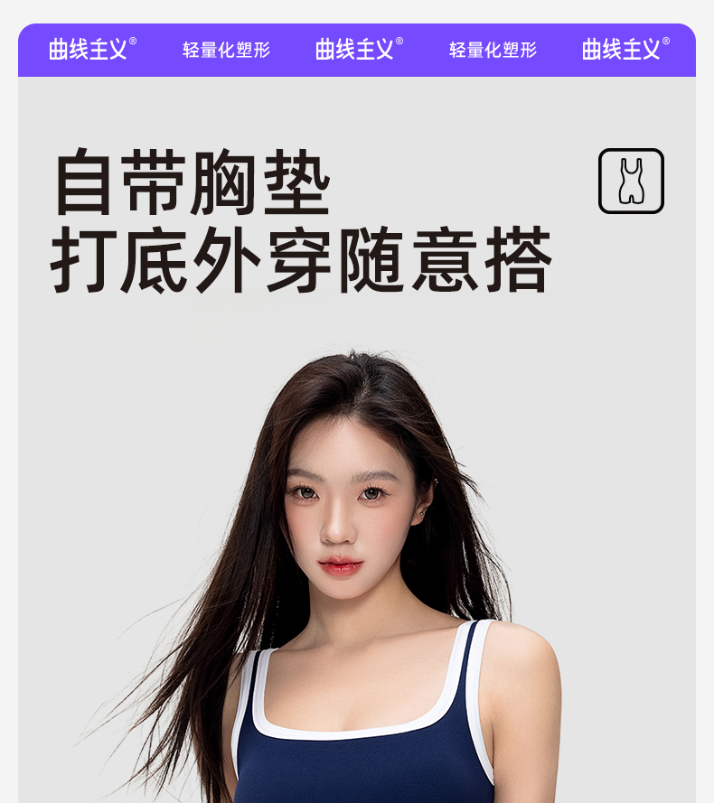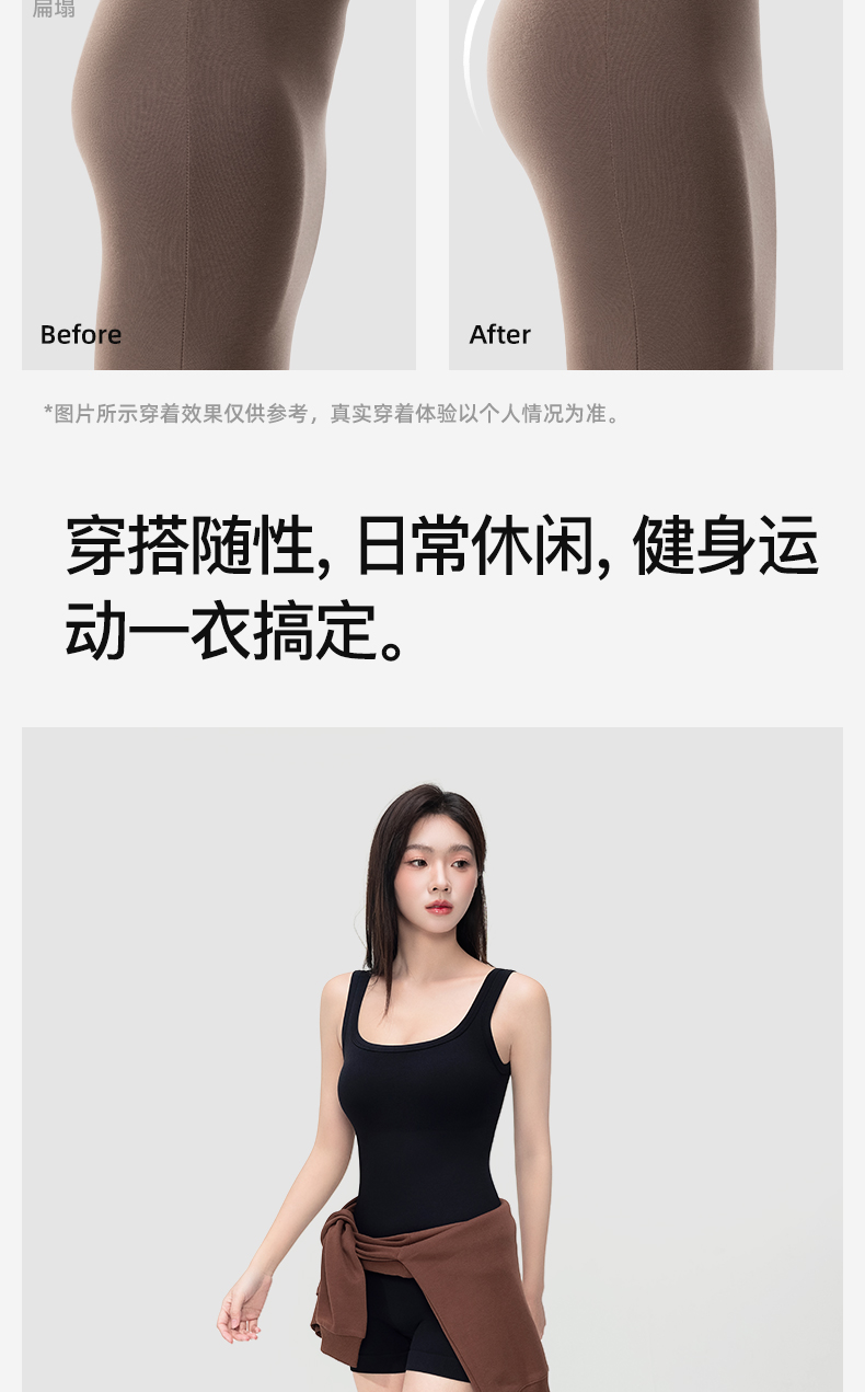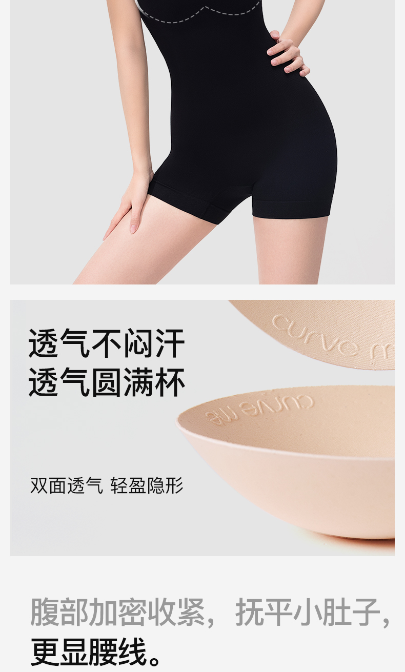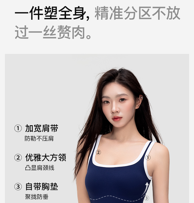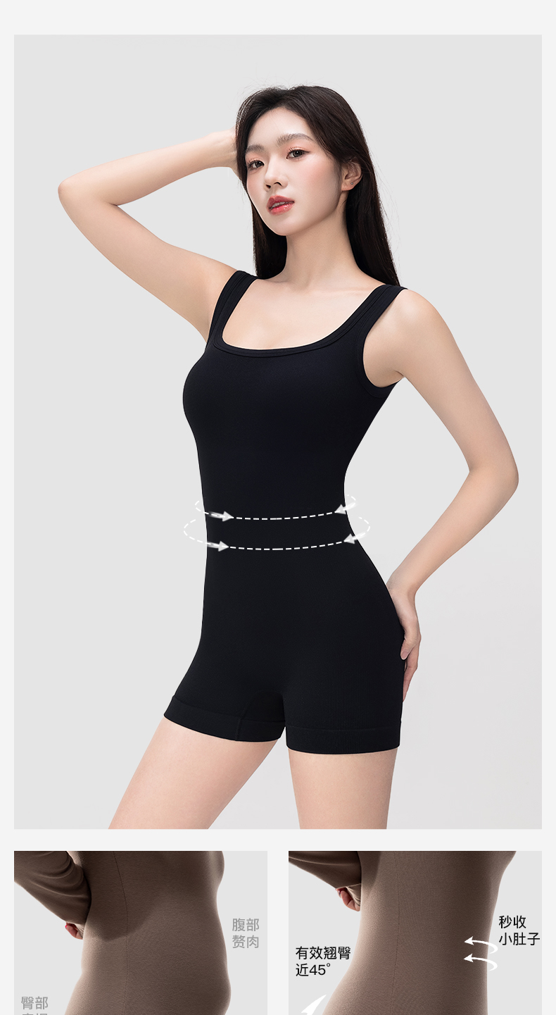 曲线主义 夏款塑身方领自带杯垫连体衣 舒适百搭宽肩带背心 QXFF05