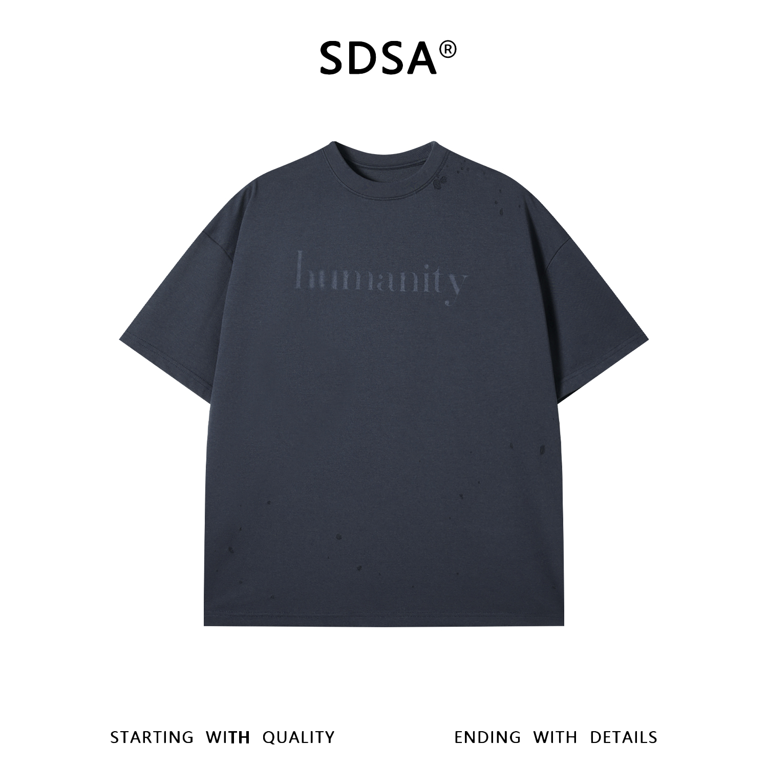SDSA男装2026新款轻奢美式高级感磨破印花字母圆领短袖T恤百搭
