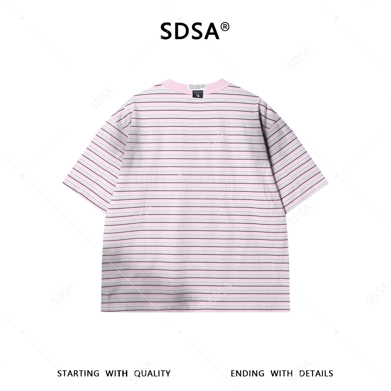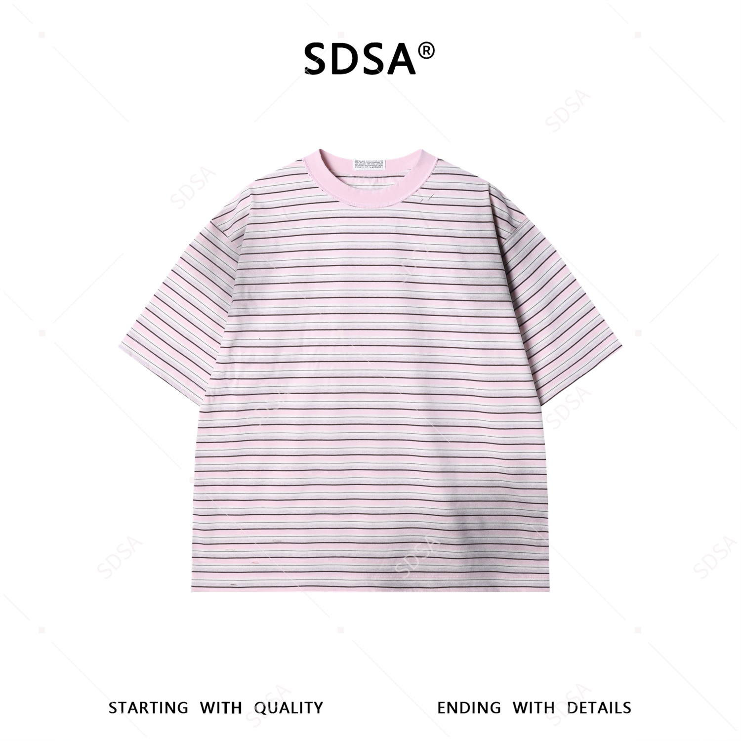 9777SDSA男装2026新款休闲圆领T恤印花撞色短袖春夏百搭条纹清新风