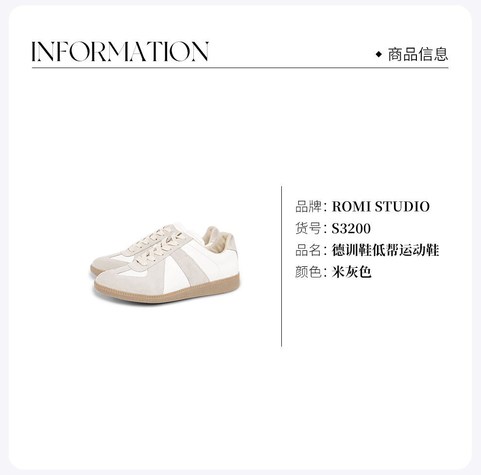 ROMI STUDIO升级版~米灰色德训鞋~百搭真皮德训鞋低帮运动鞋S3200