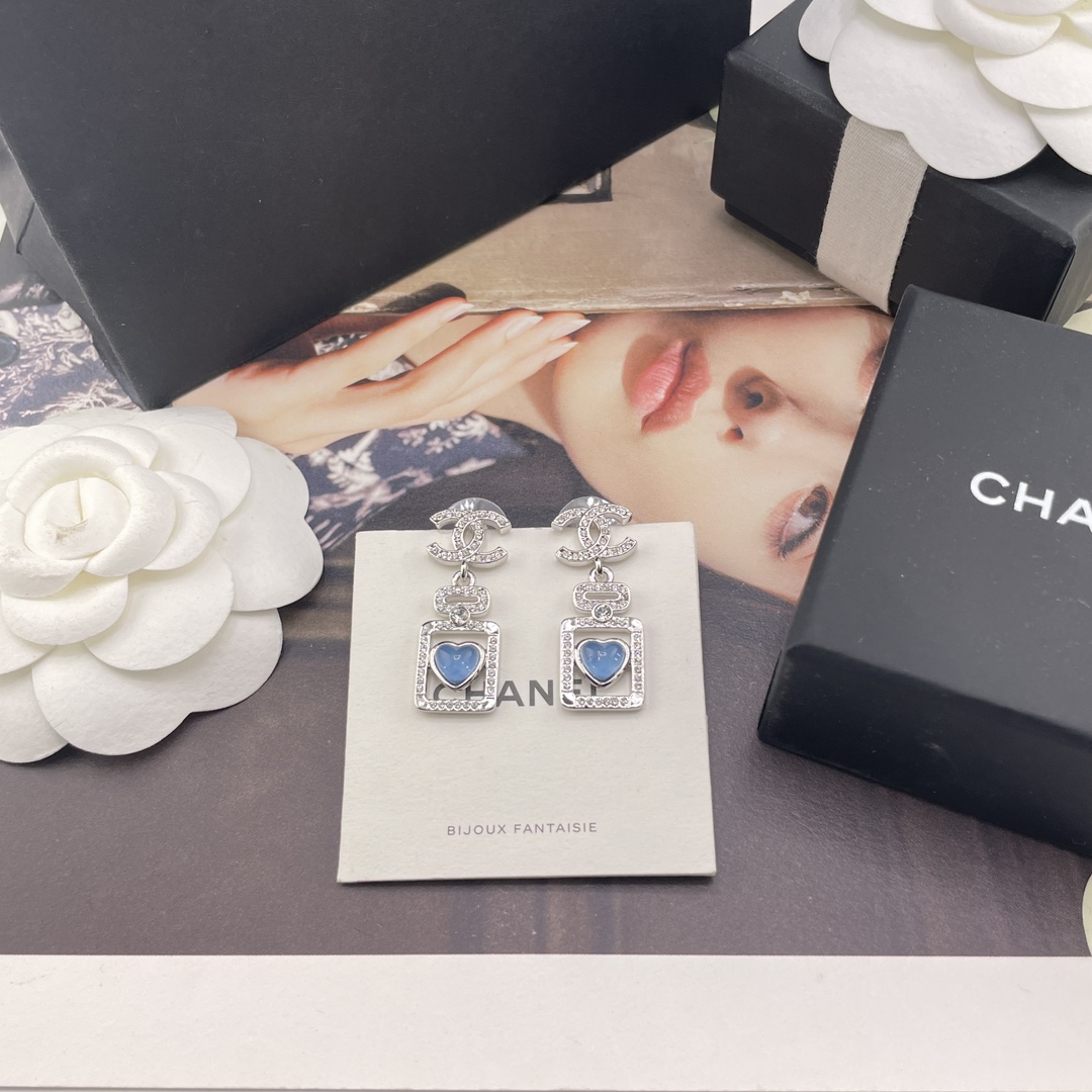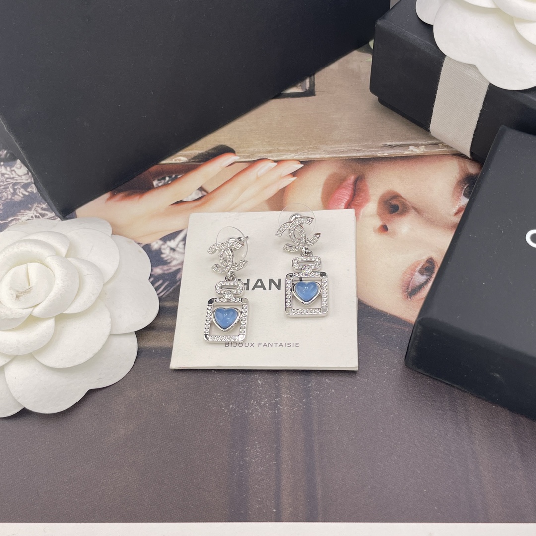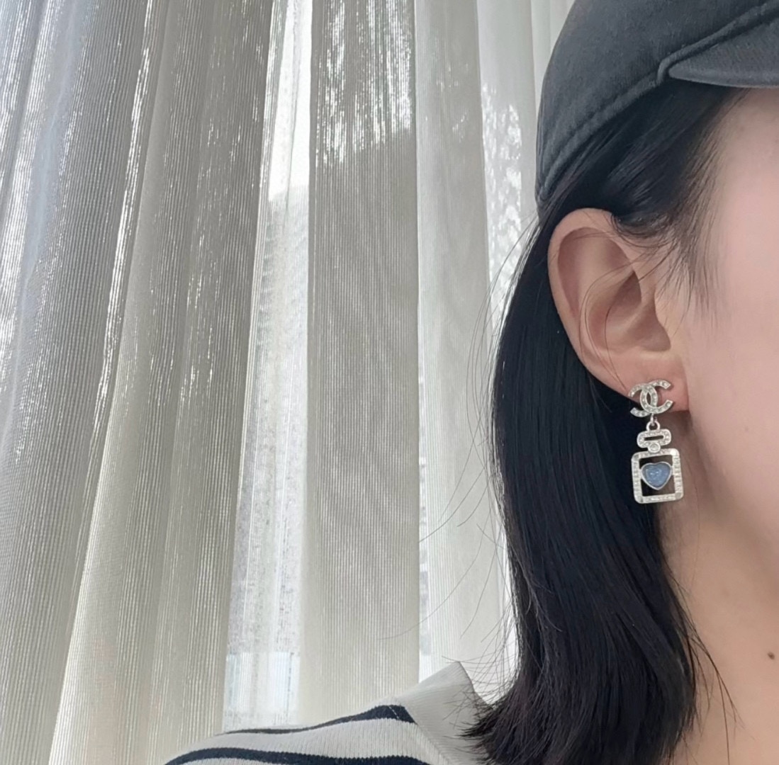 216006【香双c吊蓝心香水瓶耳钉】Z 7200!量大咨询客Fu❗️ 真的没法拒绝的蓝色香水瓶耳钉