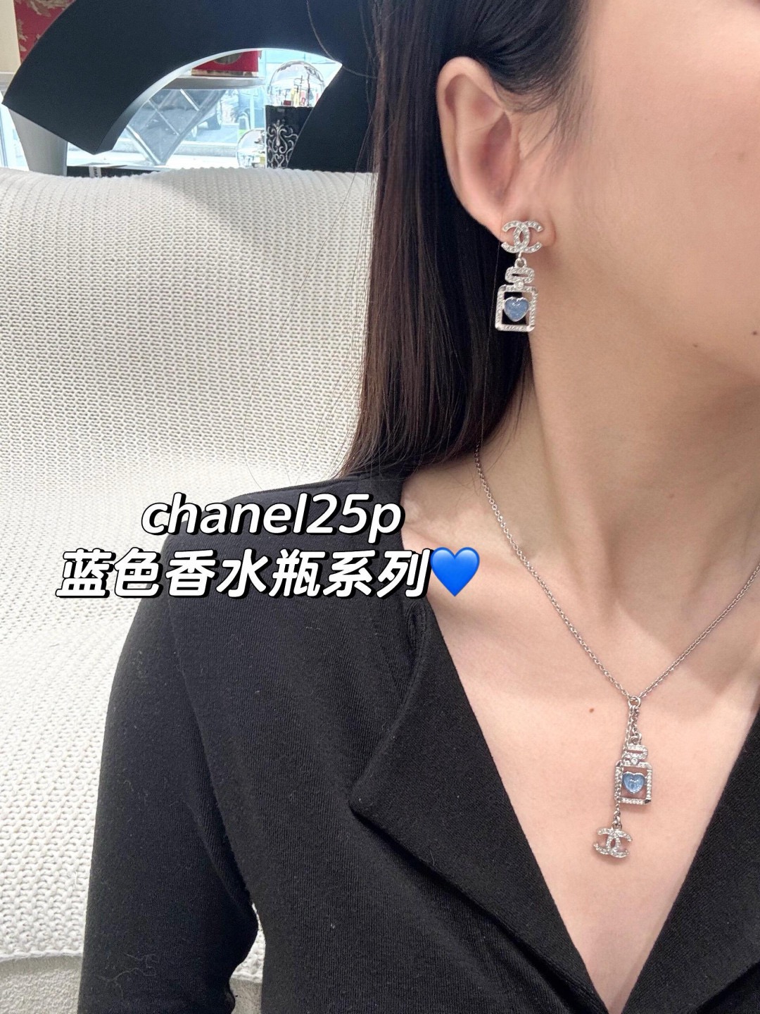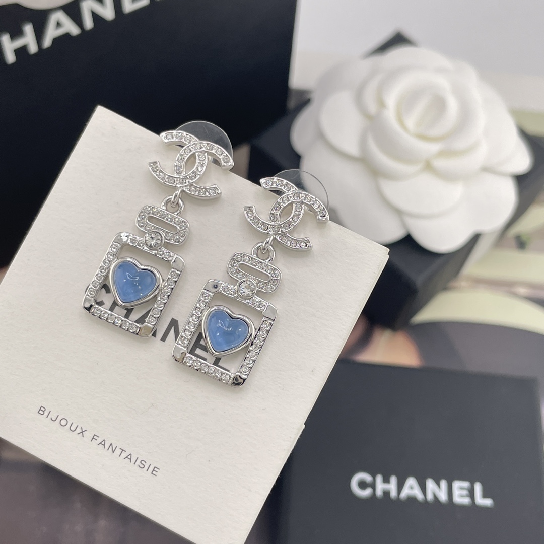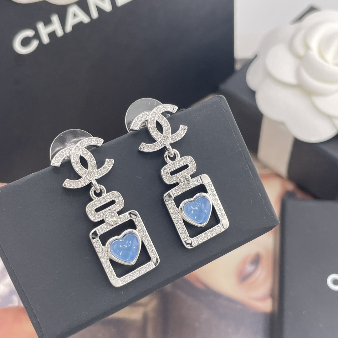 216006【香双c吊蓝心香水瓶耳钉】Z 7200!量大咨询客Fu❗️ 真的没法拒绝的蓝色香水瓶耳钉