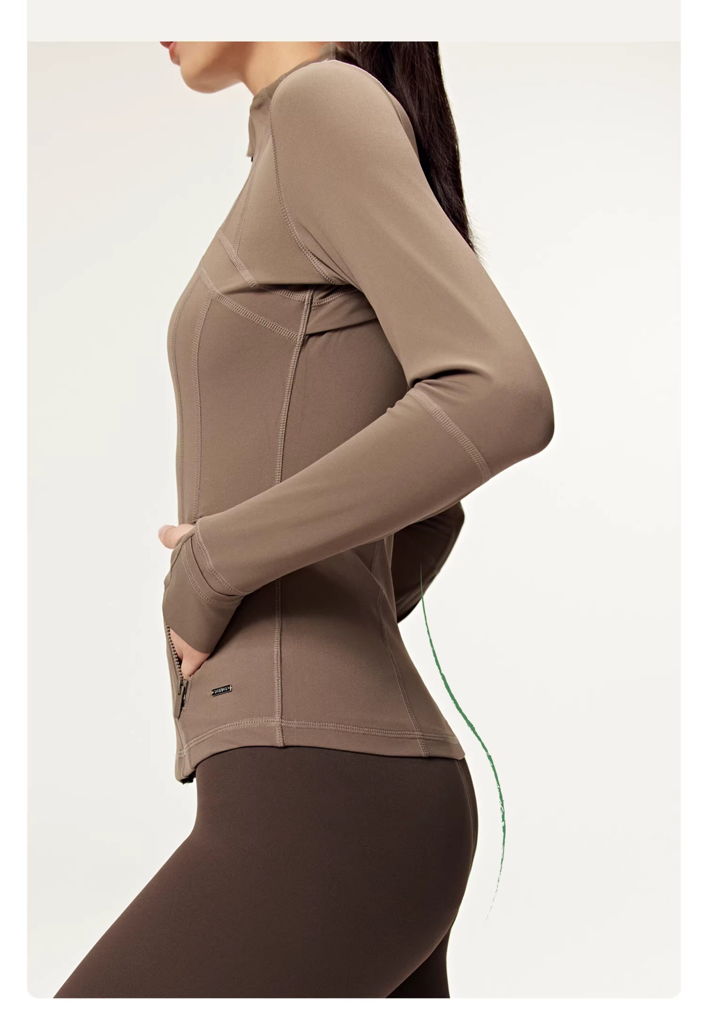 YOTTOY腰精奶皮衣长款瑜伽外套收腰塑形健身服运动训练骑行上衣秋